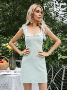 فستان ملائم بحواف مكشكشة على شكل قلب ورباط خلفي