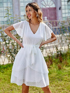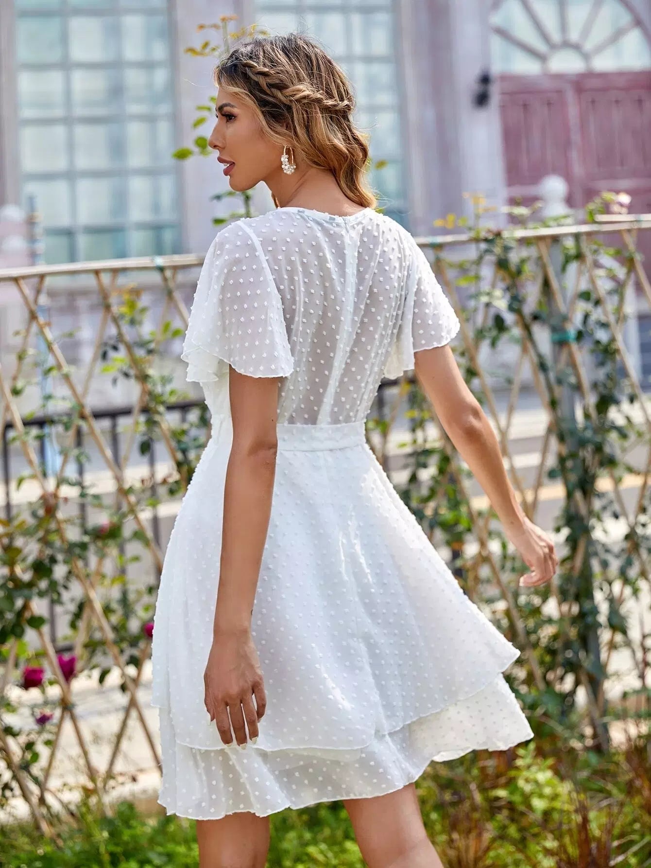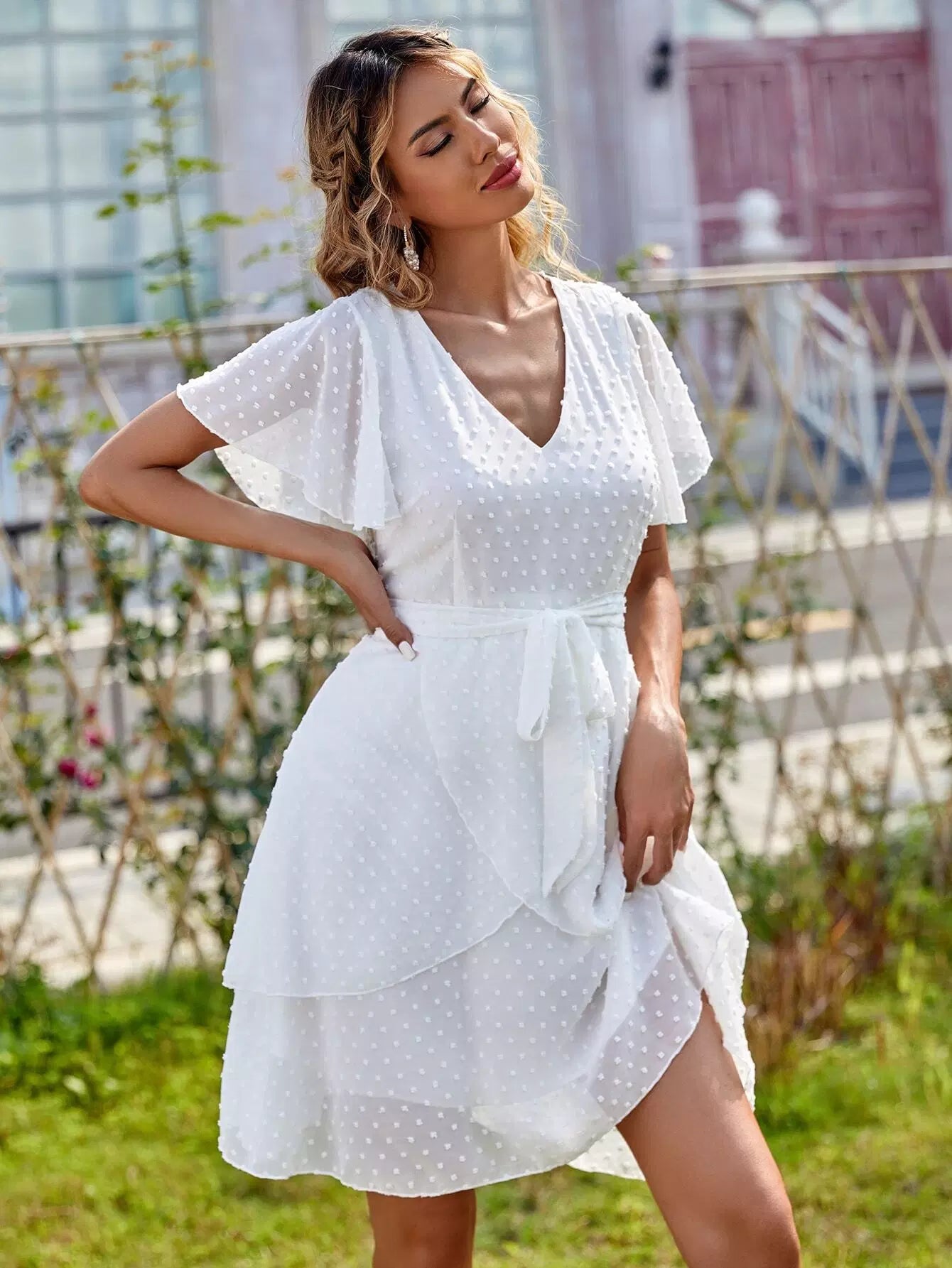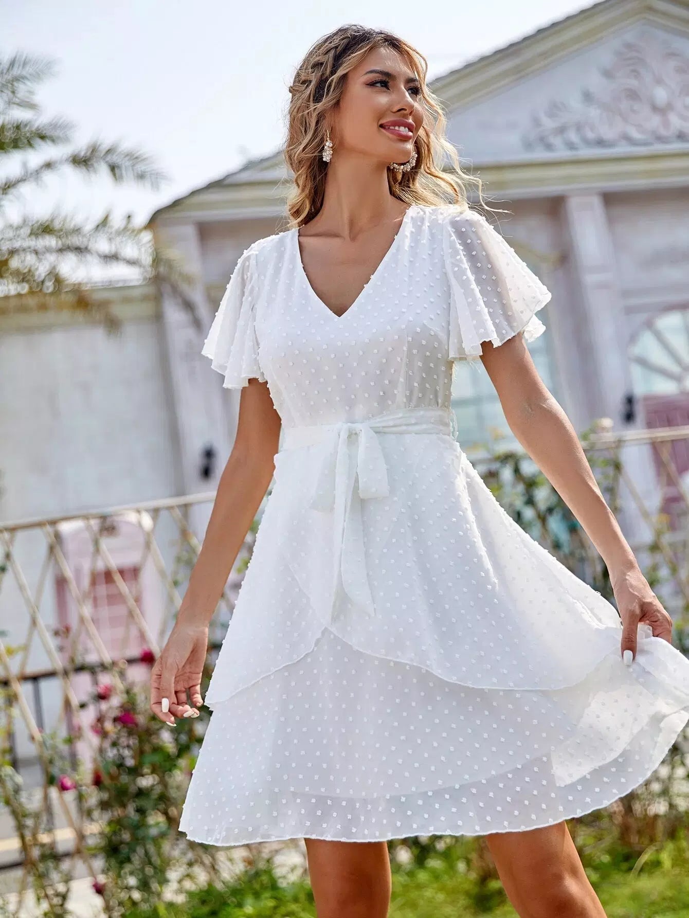 فستان سويسري منقط برباط ذاتي على شكل حرف A