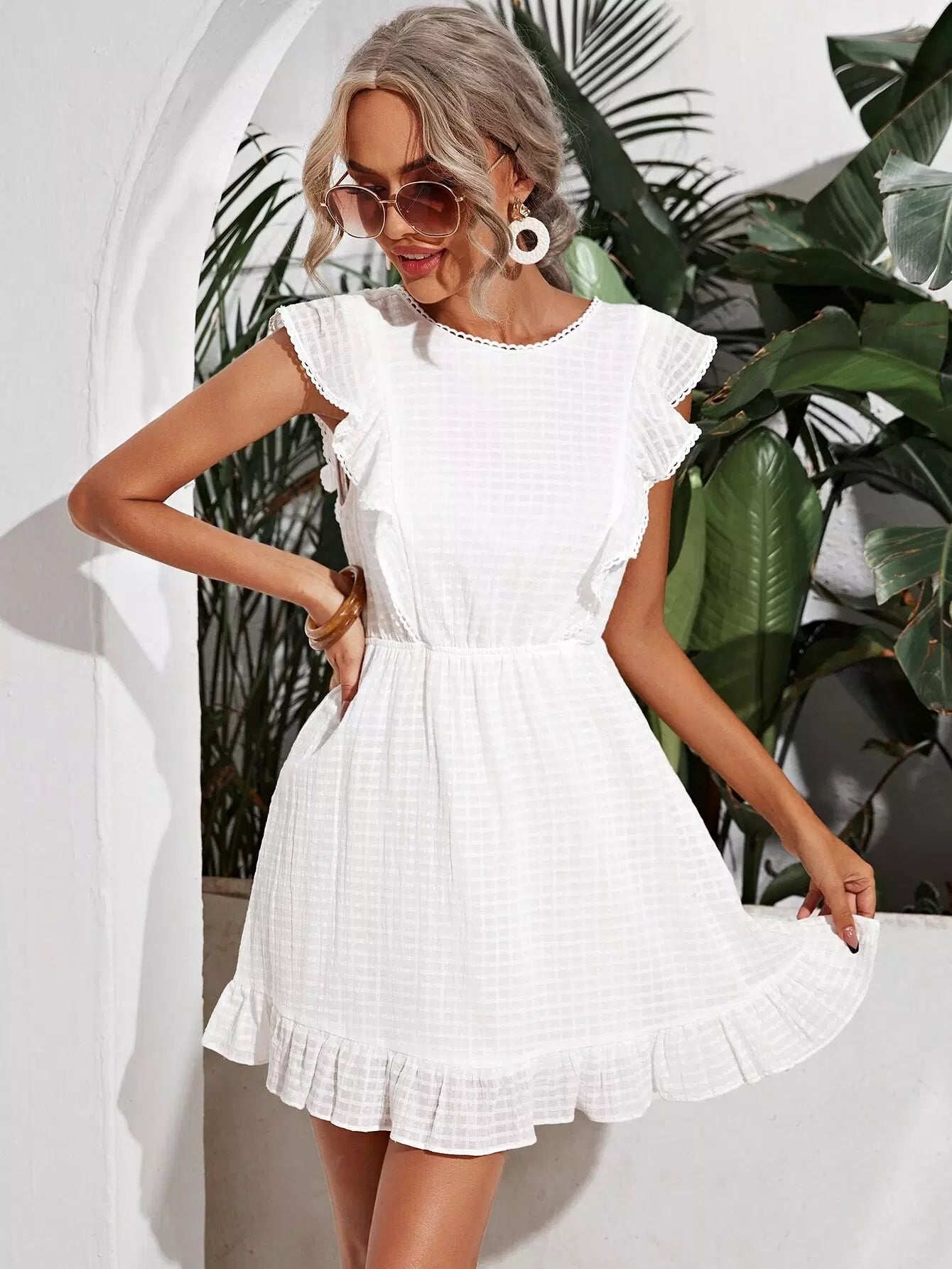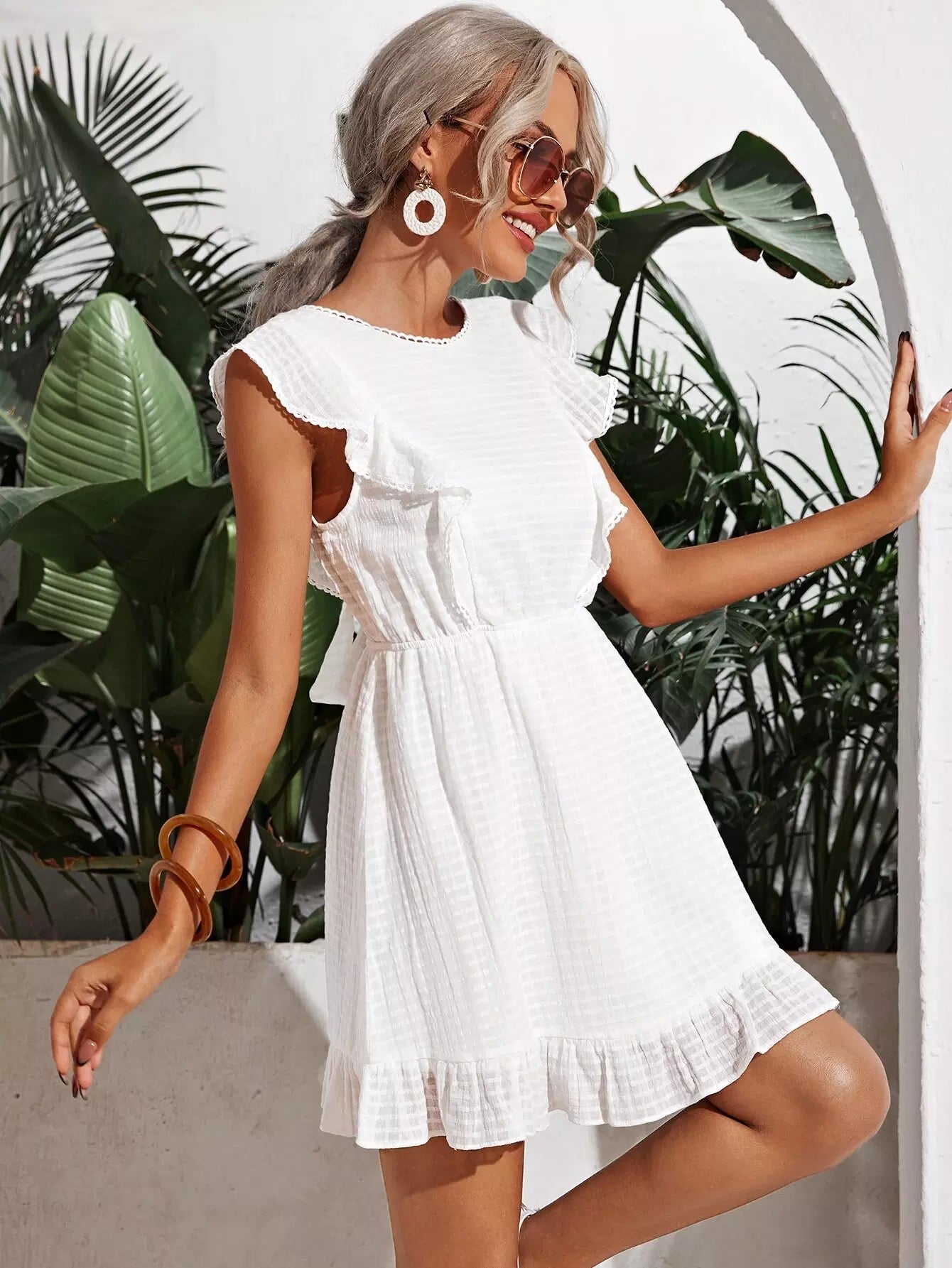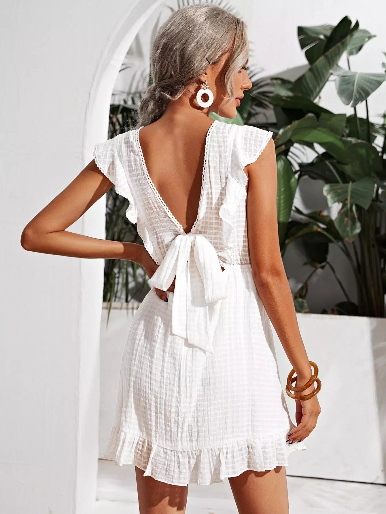 فستان بحافة كشكش بربطة عنق على الظهر