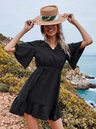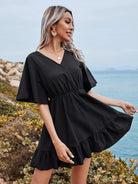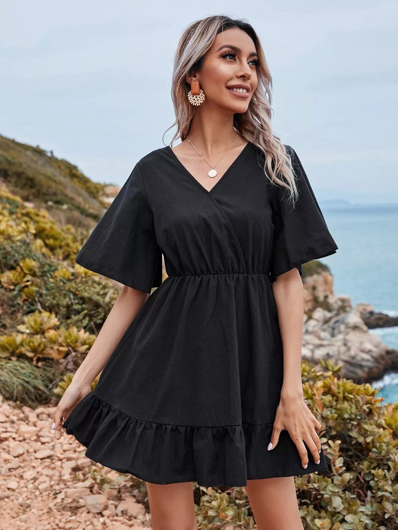 فستان بحافة مكشكشة بربطة عنق بدون كشكش على شكل حرف A