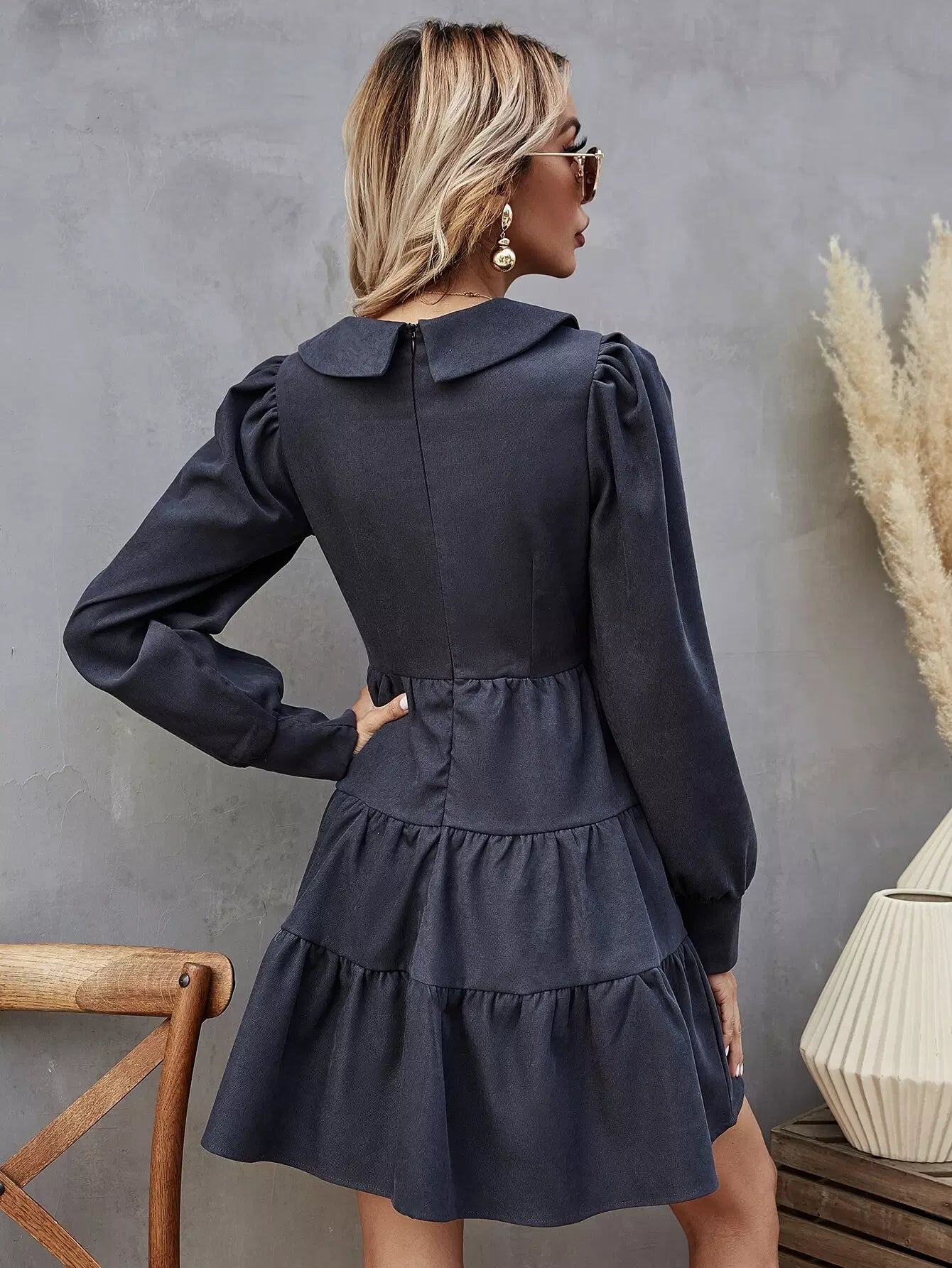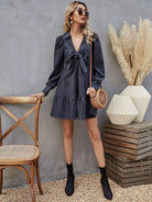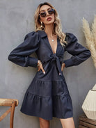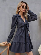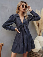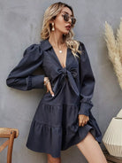 فستان بحافة كشكش أمامي بربطة عنق أمامية