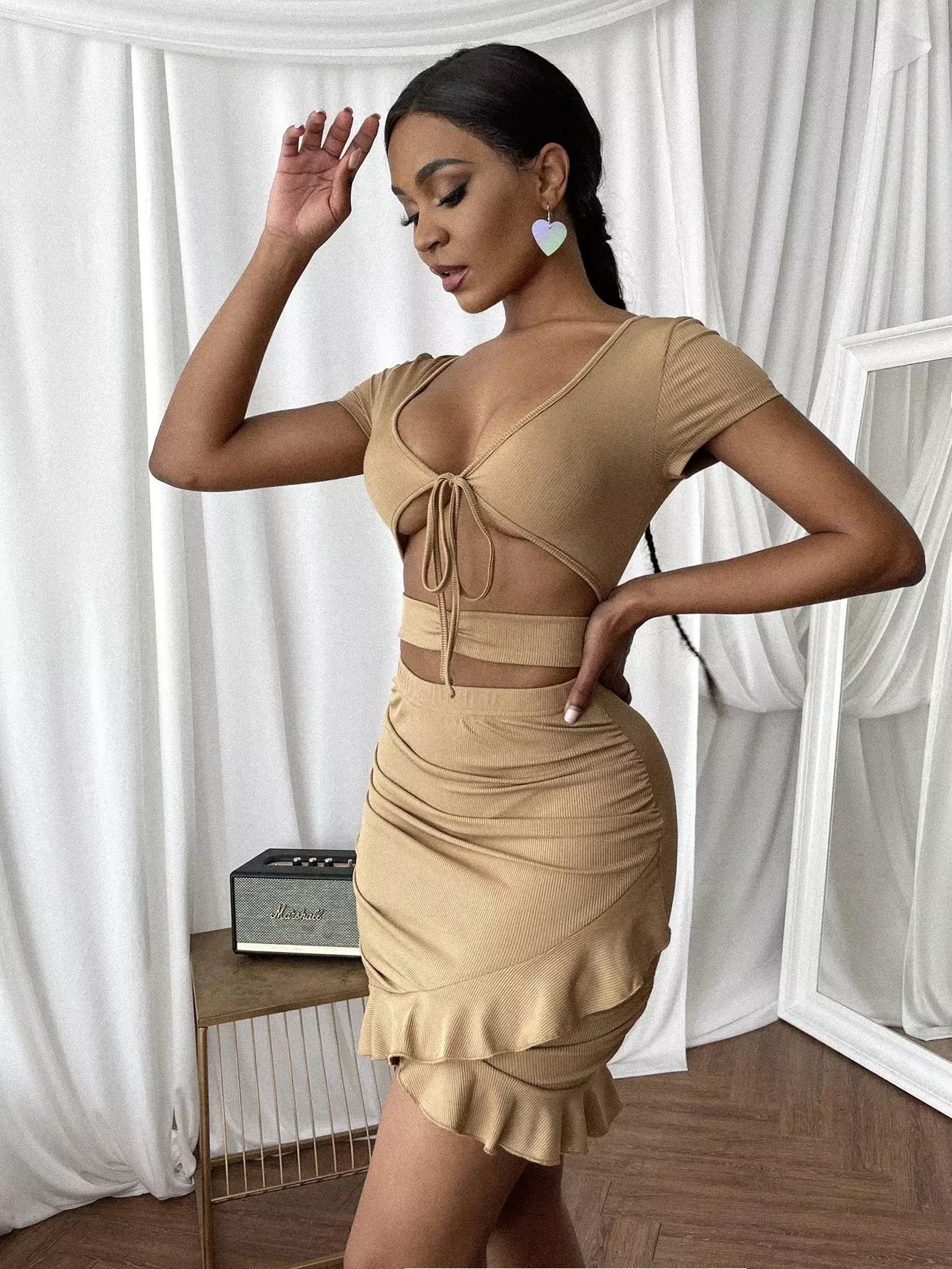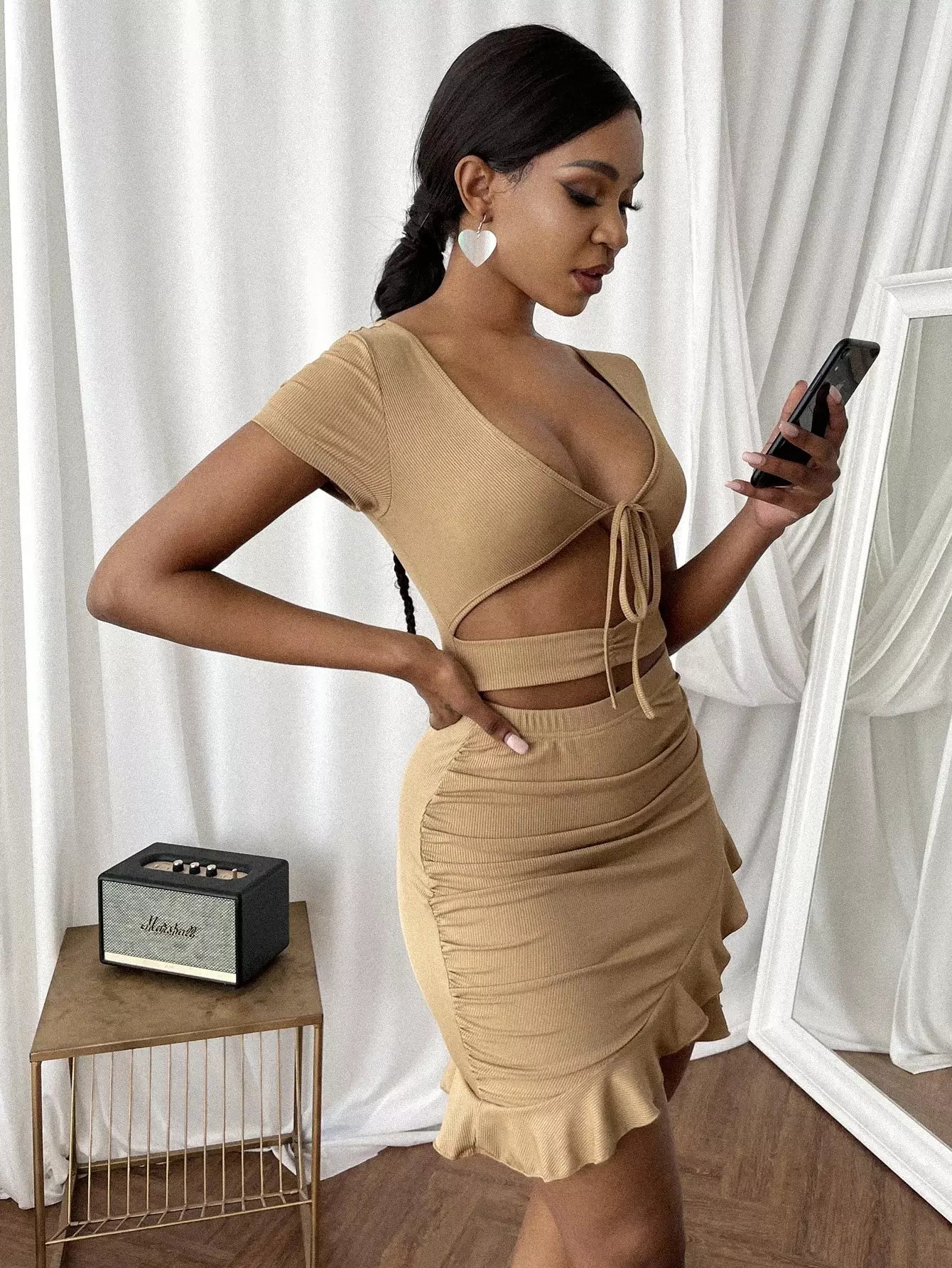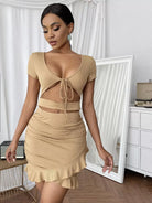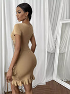 للنساء - فستان بحاشية ملفوفة أمامية وياقة على شكل بيكابو برباط