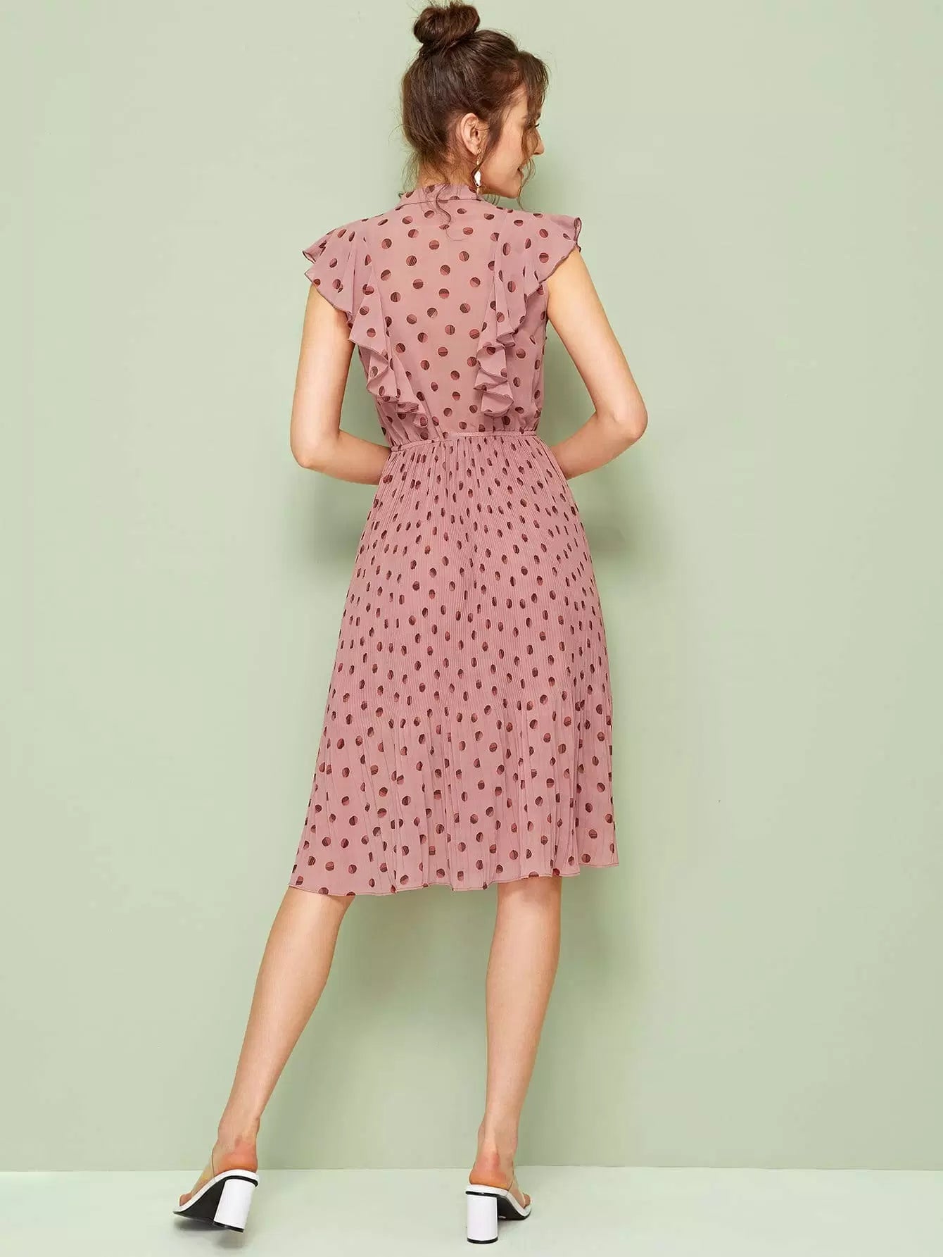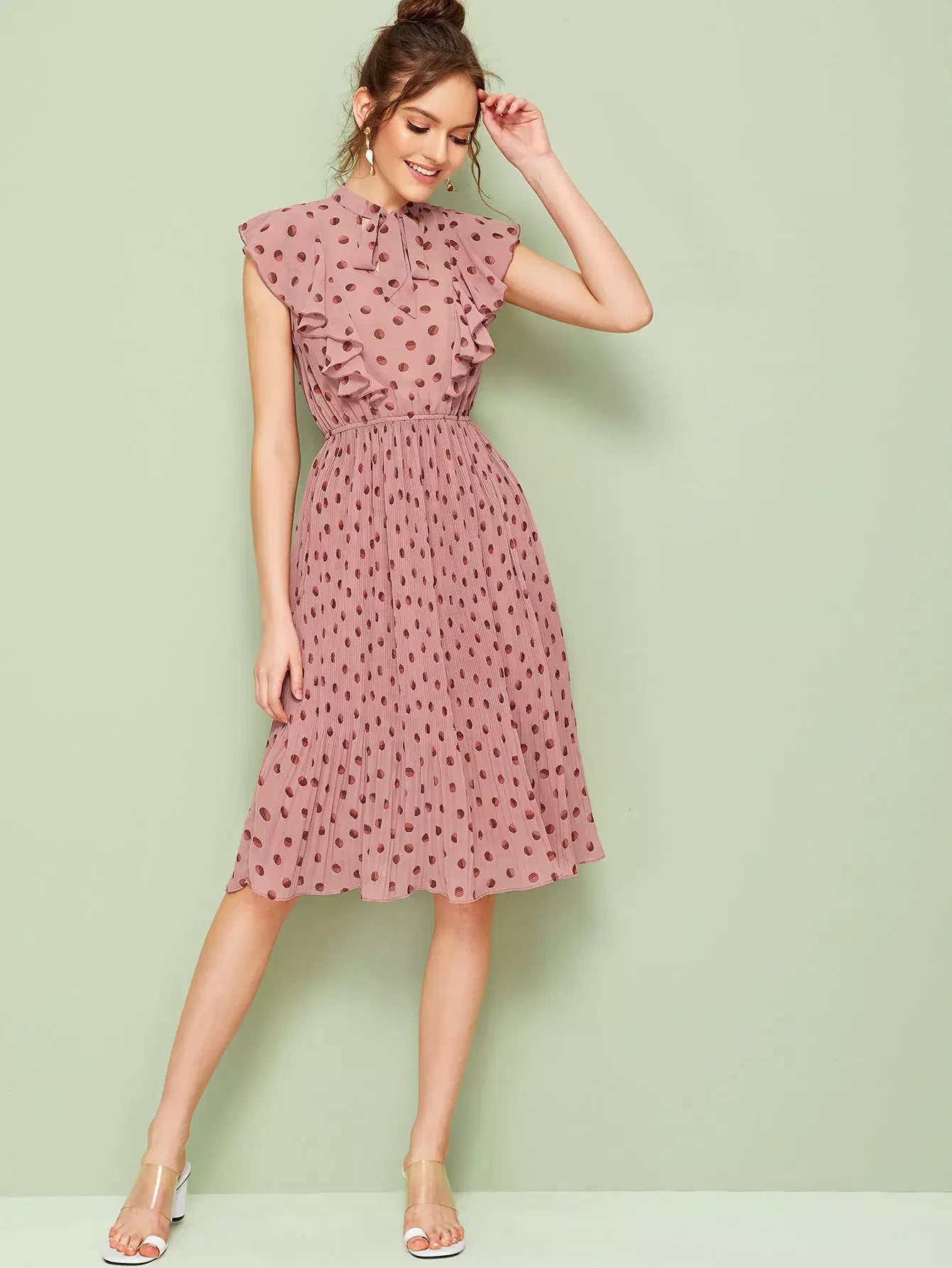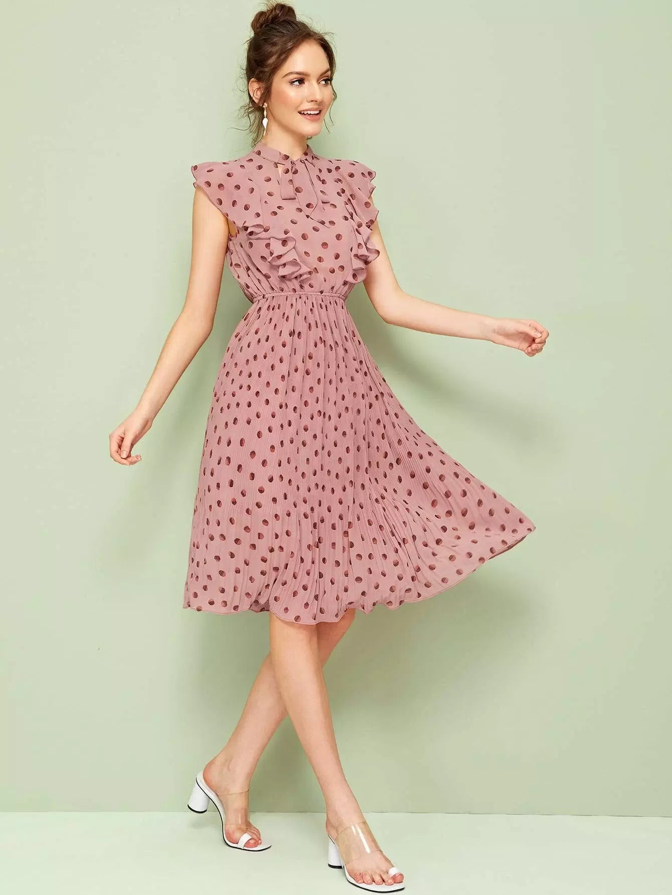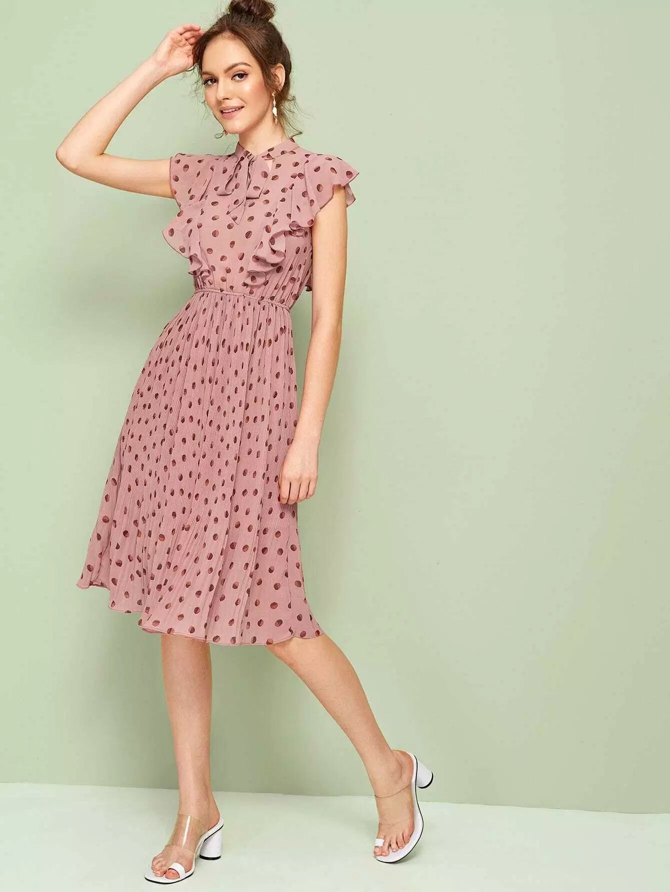 فستان مزين بربطة عنق بربطة عنق مكشكشة ذات ثنيات