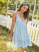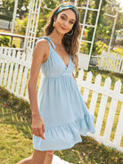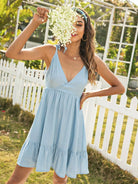 فستان كشكش برباط على الأكتاف بحاشية كشكش بسحاب من الخلف