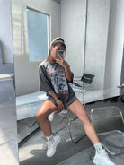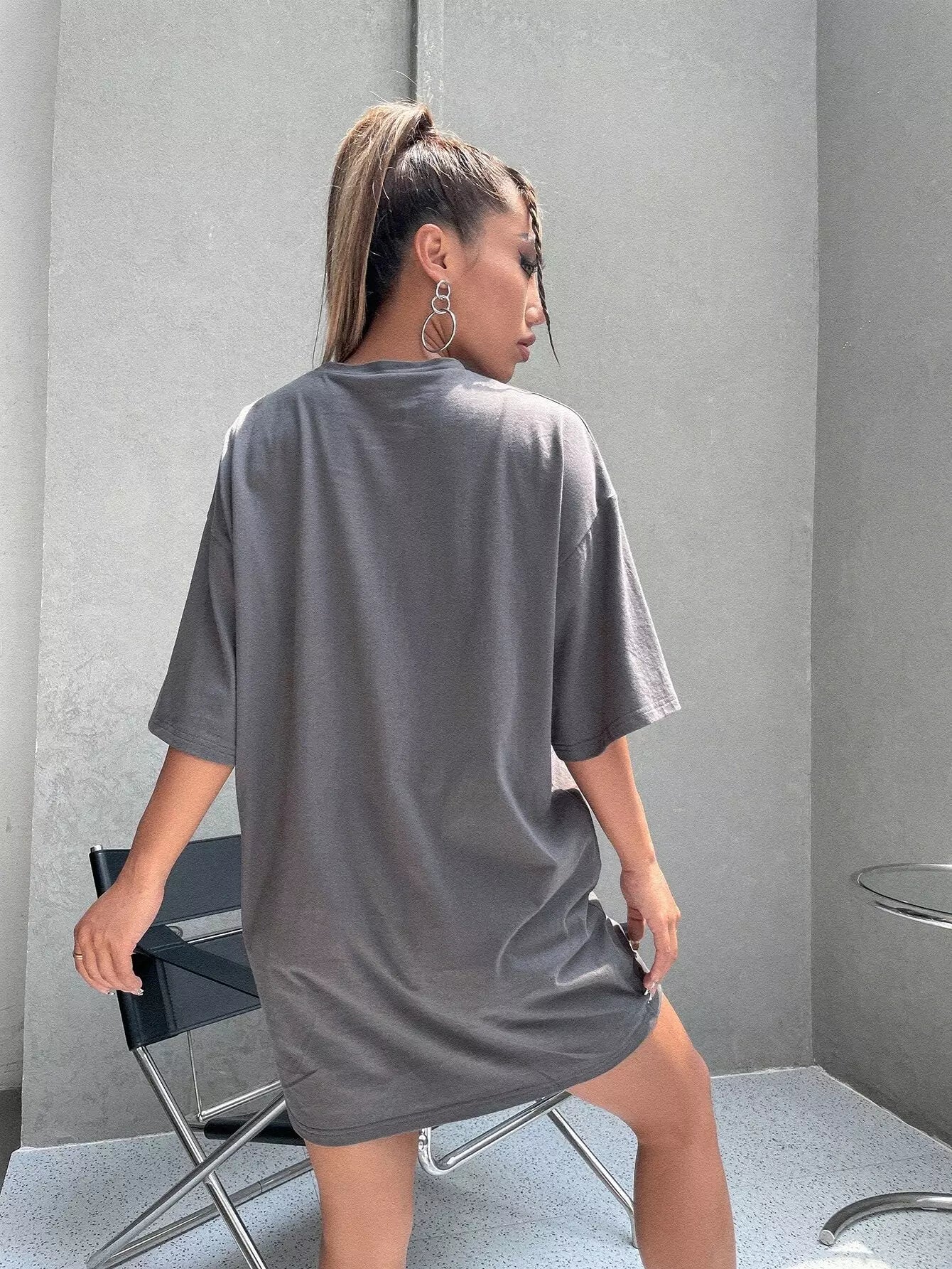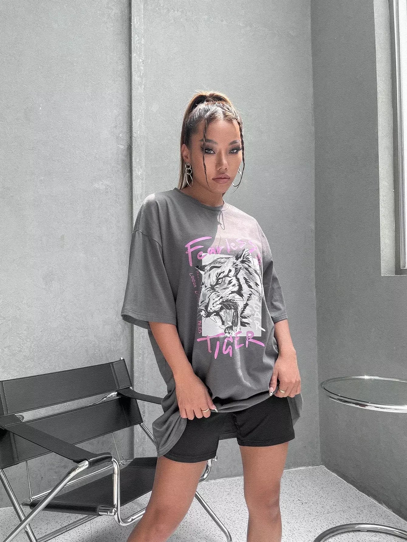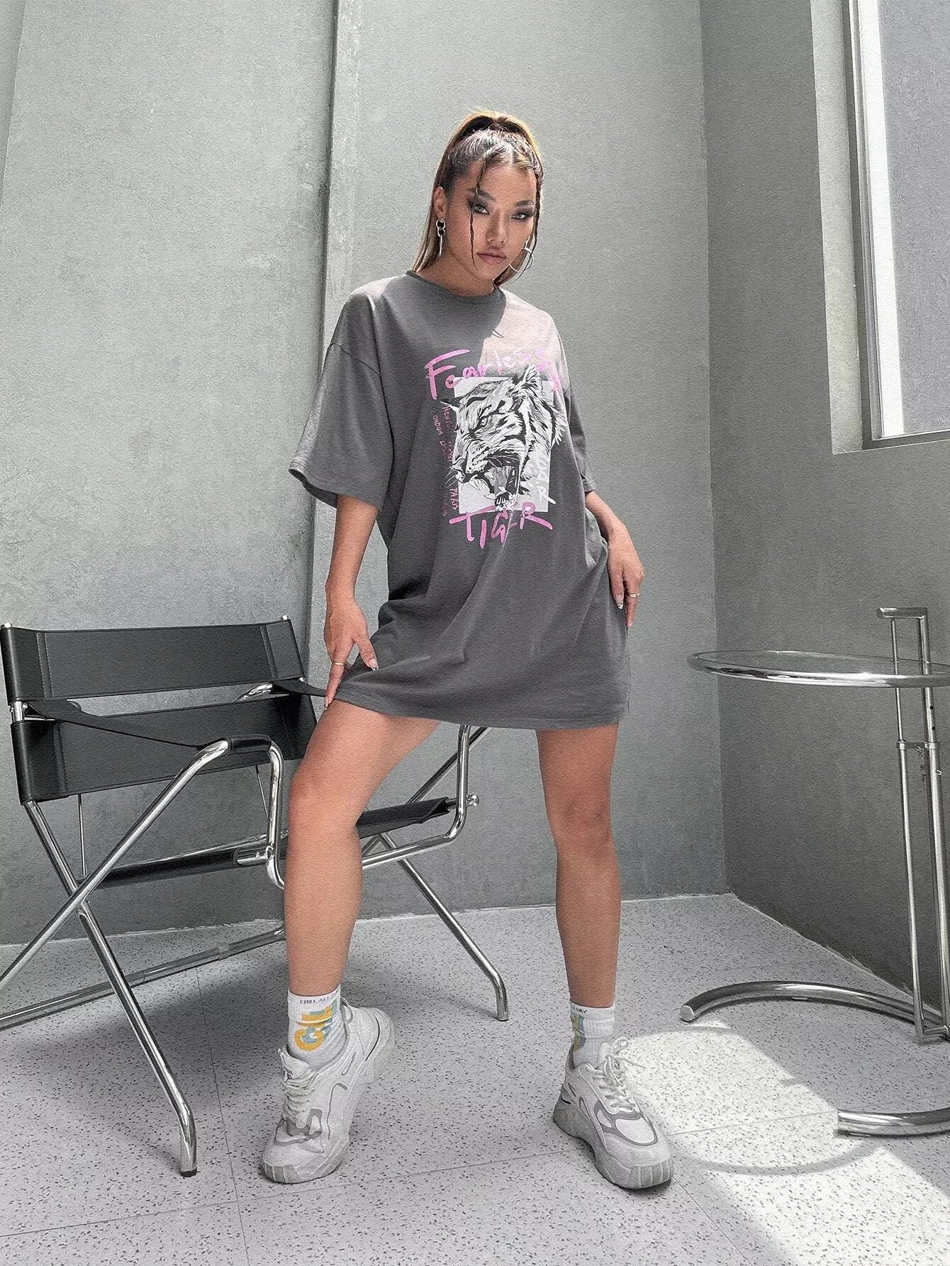 للنساء - فستان تي شيرت بأكتاف منسدلة وطبعة نمر