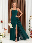 فستان وصيفة العروس من الشيفون بتصميم أنيق ومكشكش، بفتحة جانبية عند الفخذ، من يونيثورس، مناسب لعيد الميلاد