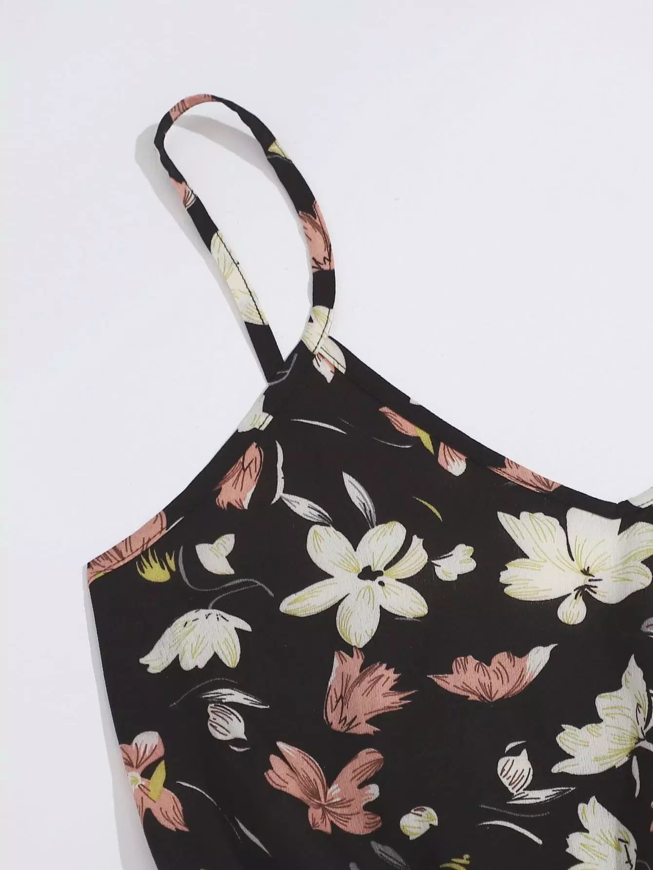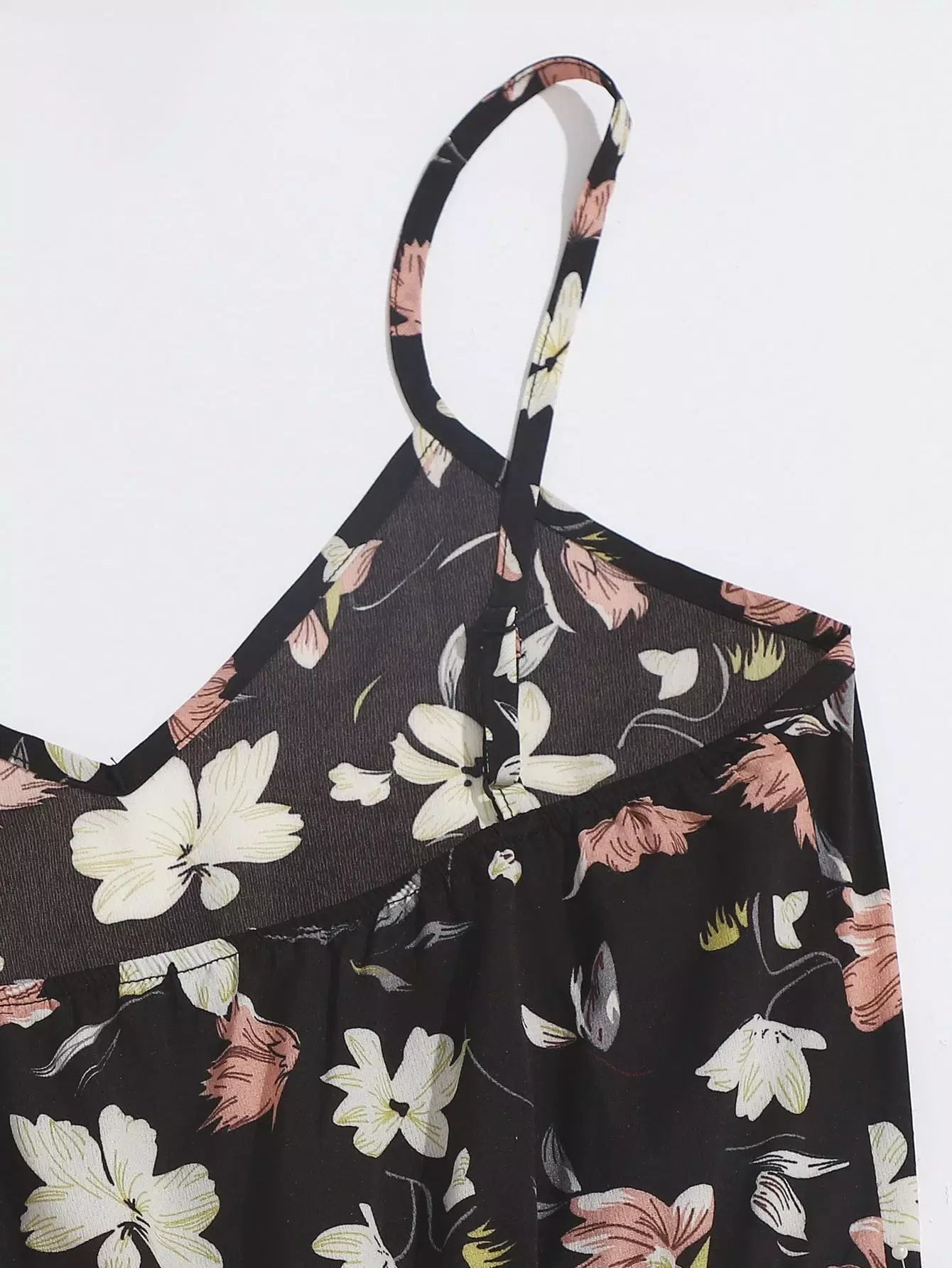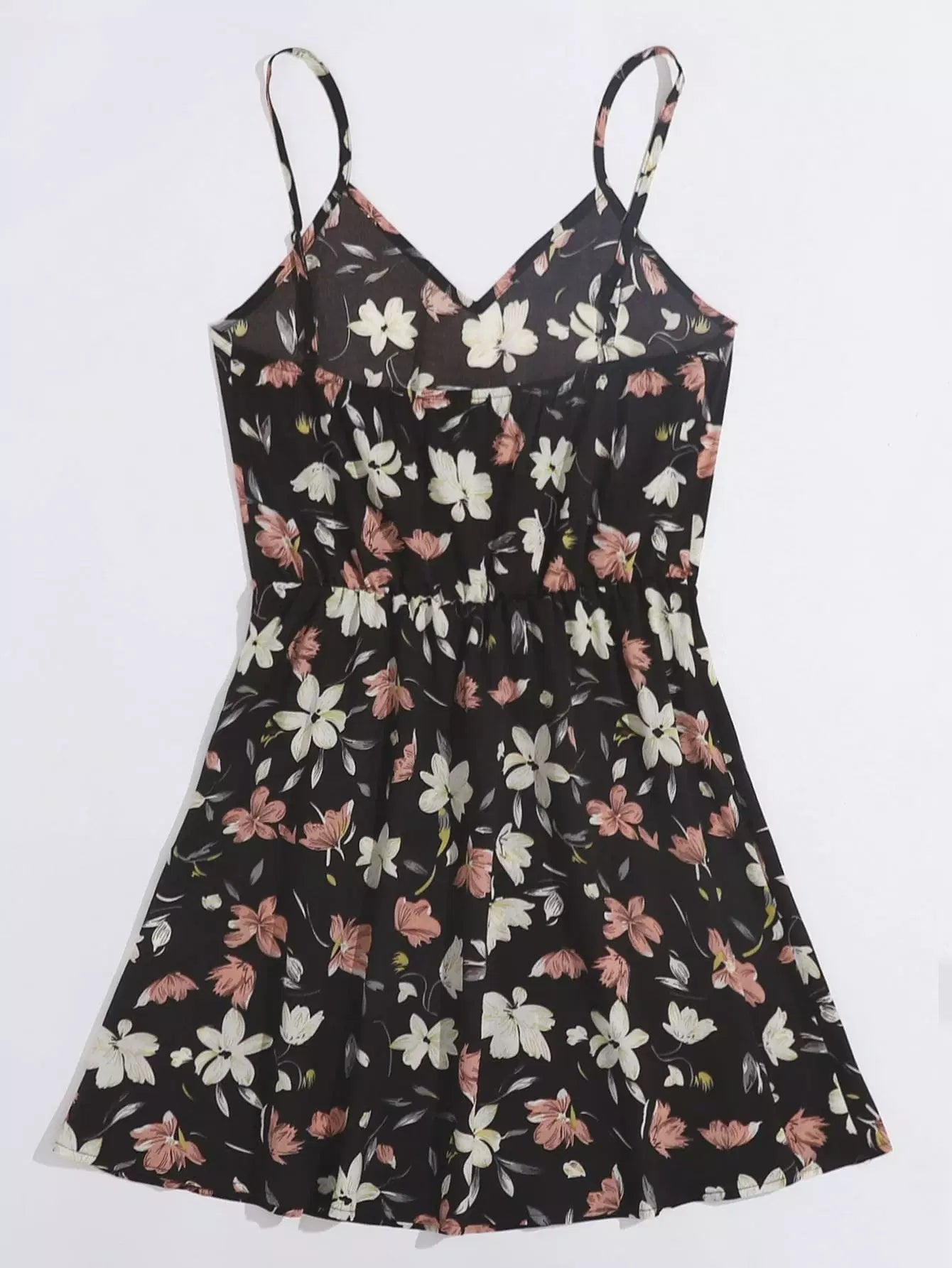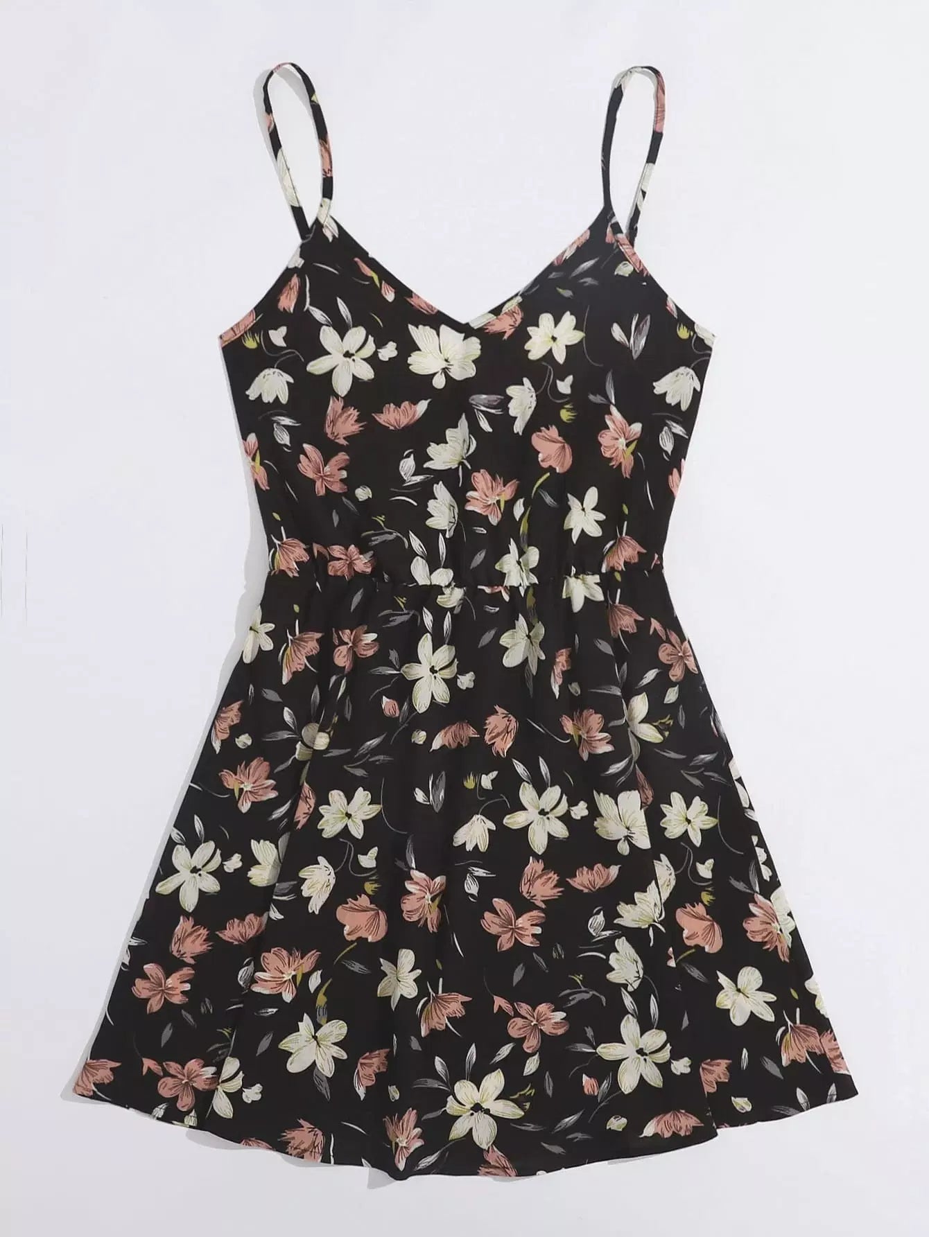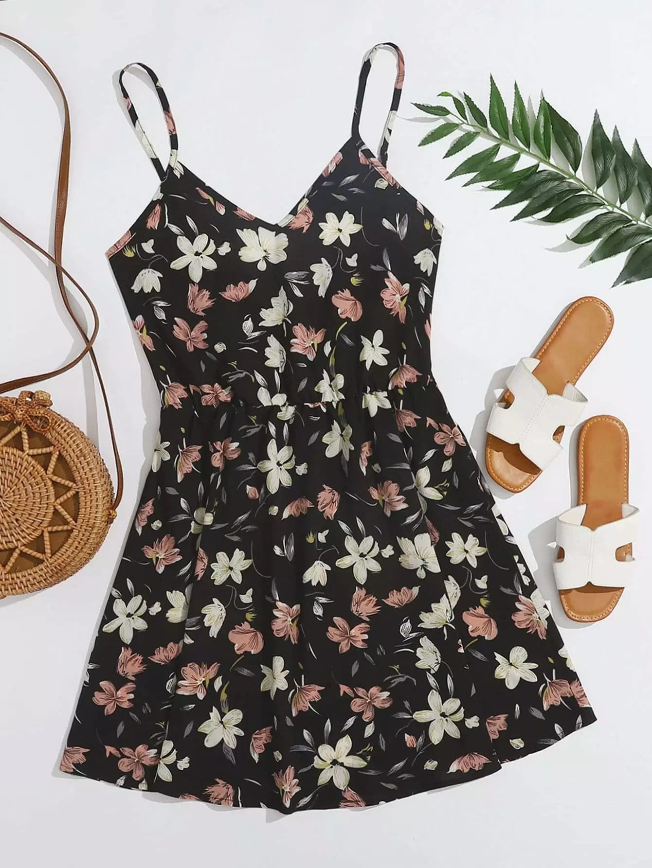 فستان كامي بطبعة زهور وفتحة رقبة على شكل حرف V