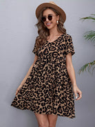 فستان من قماش جلد النمر بفتحة رقبة على شكل حرف V