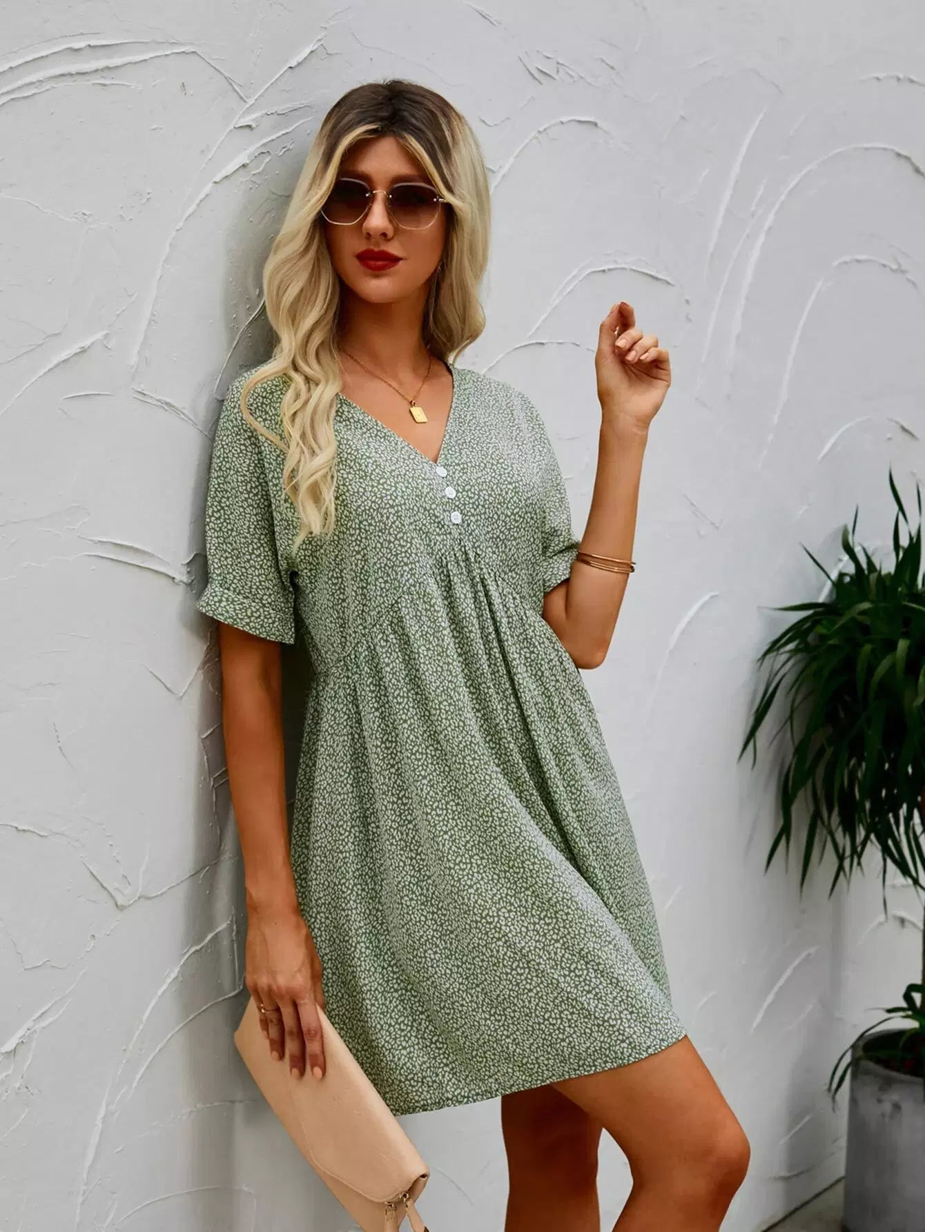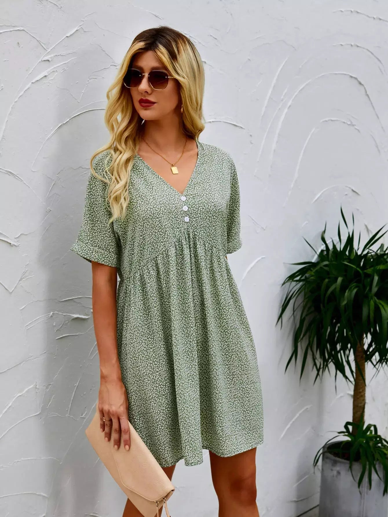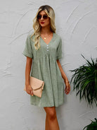 للنساء - فستان بيبي دول بأكمام ملفوفة ورقبة على شكل حرف V