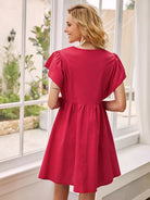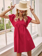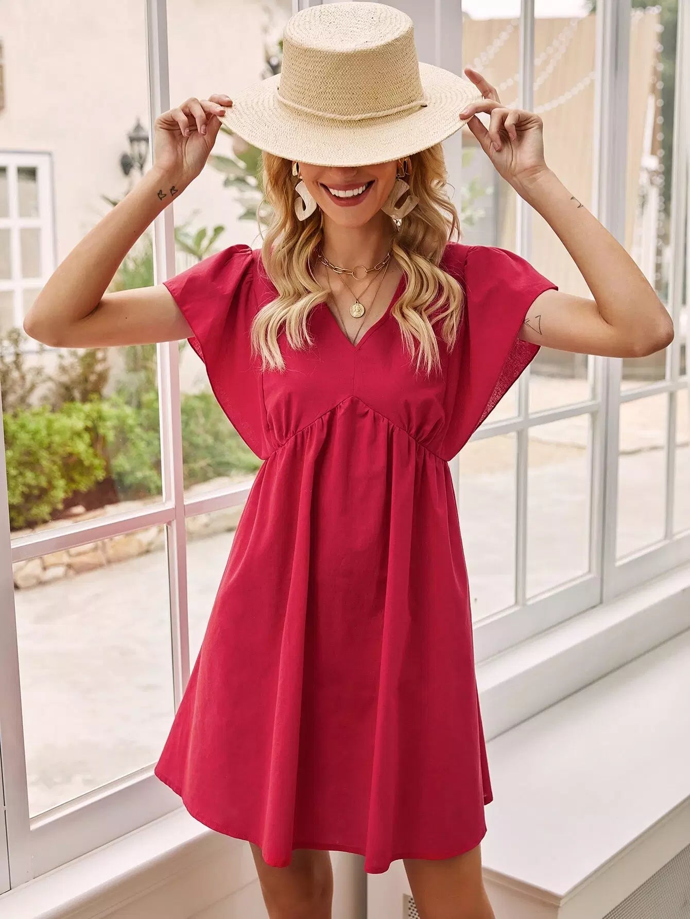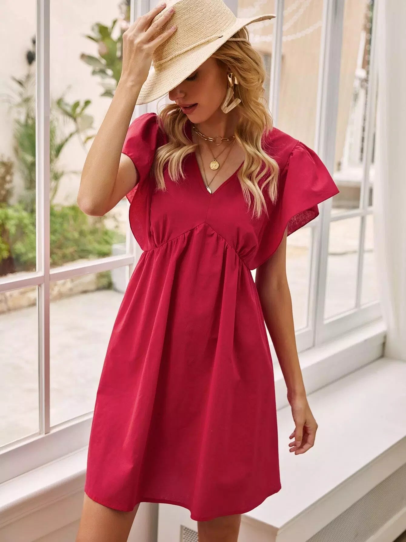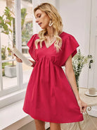 فستان A-line بحافة مكشكشة وفتحة رقبة على شكل حرف V