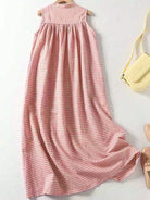 فستان نسائي من القطن المنقوش بدون أكمام مع أزرار لفصل الربيع والصيف
