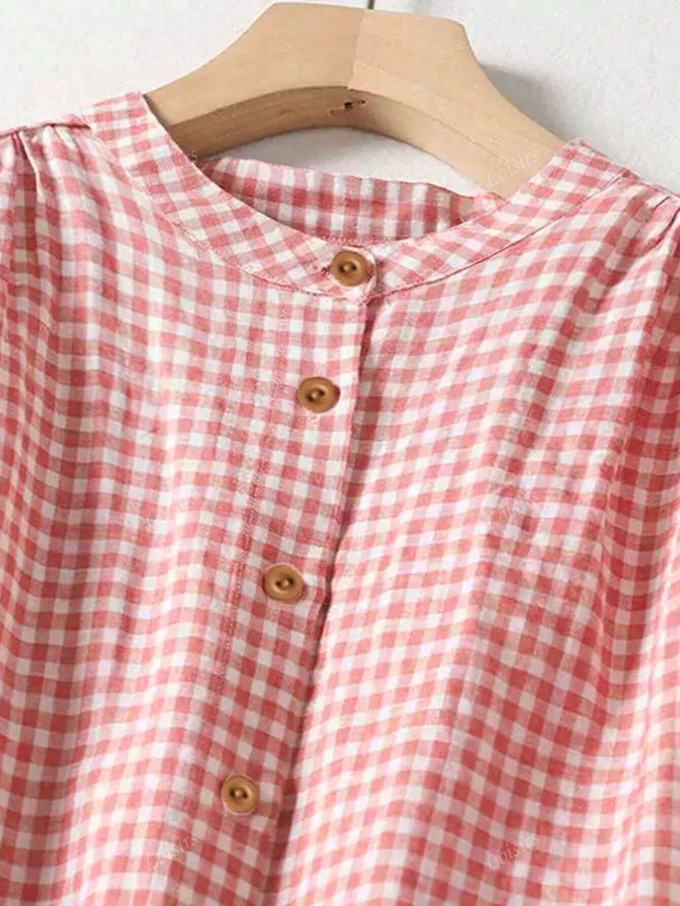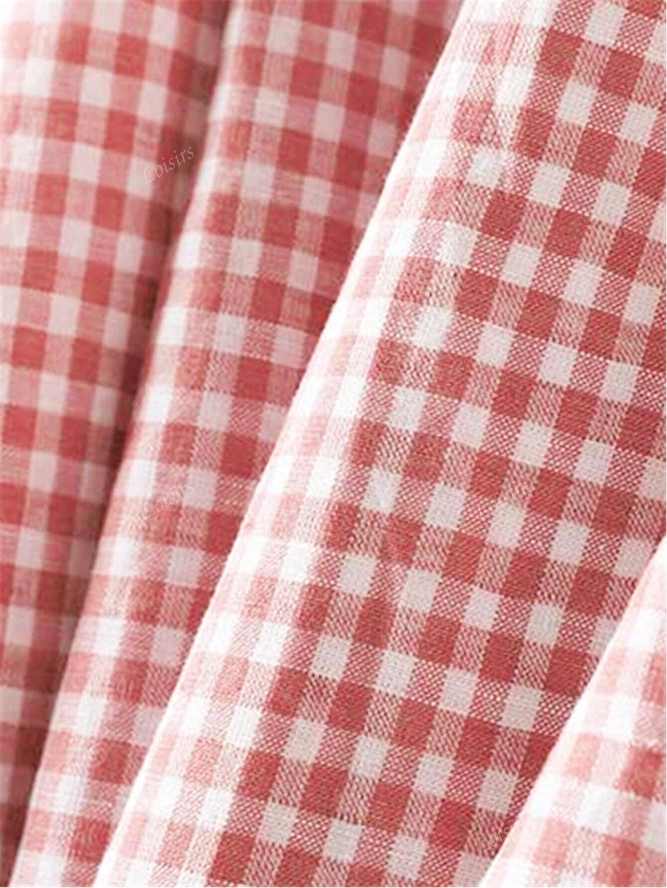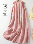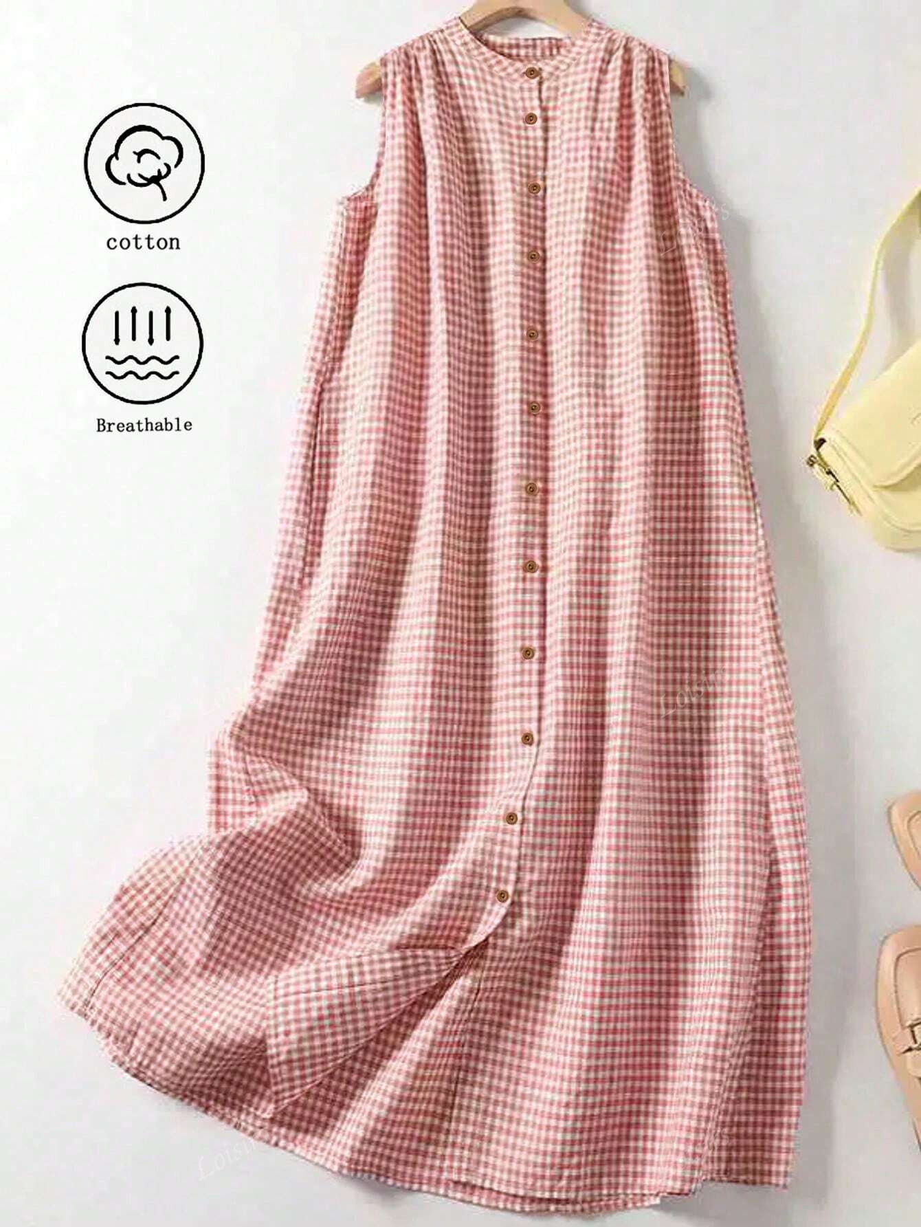 women Women Spring/Summer Sleeveless Plaid Cotton Dress With Buttons