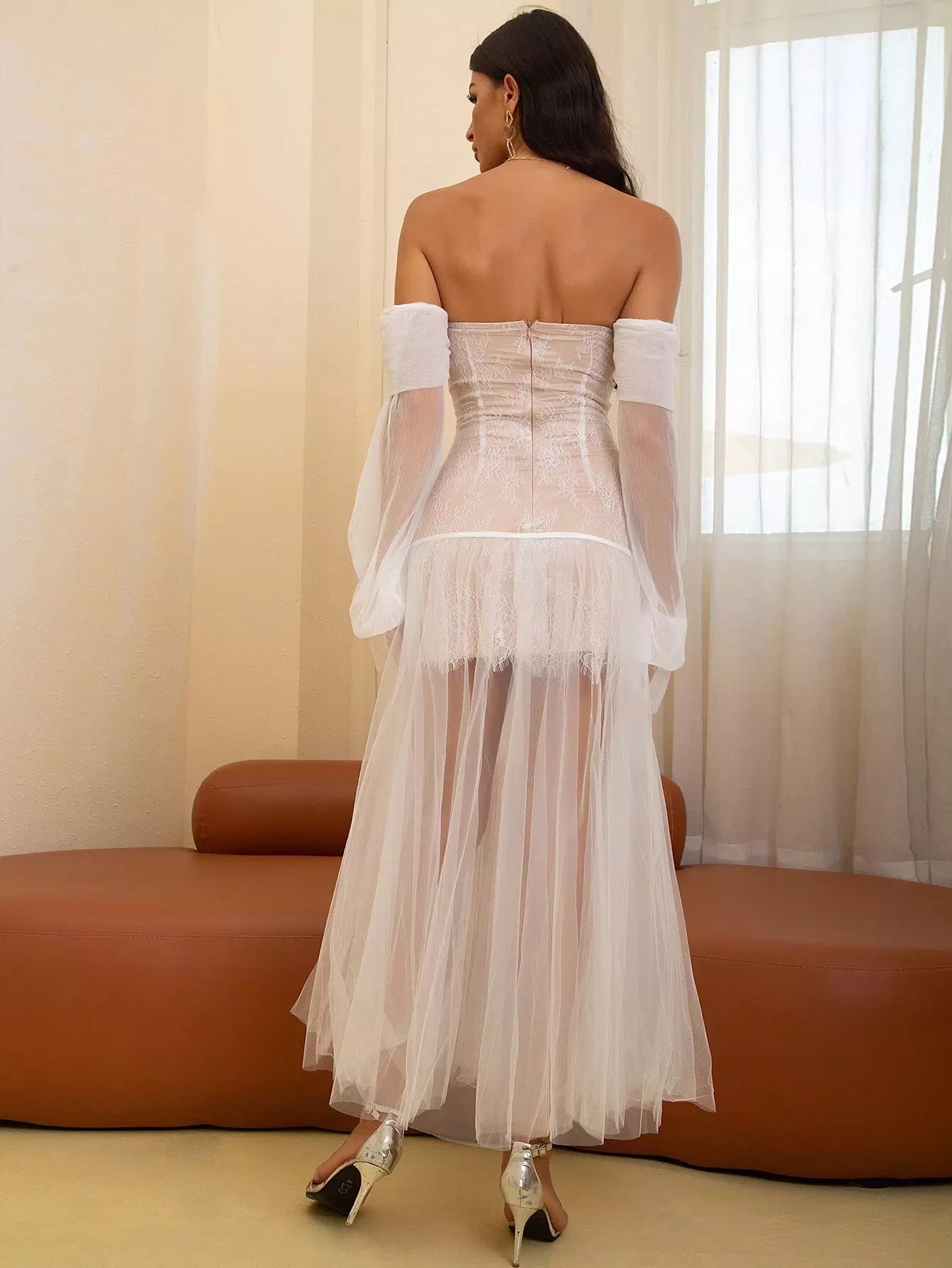 فستان شبكي بجزء من الدانتيل وسحاب خلفي