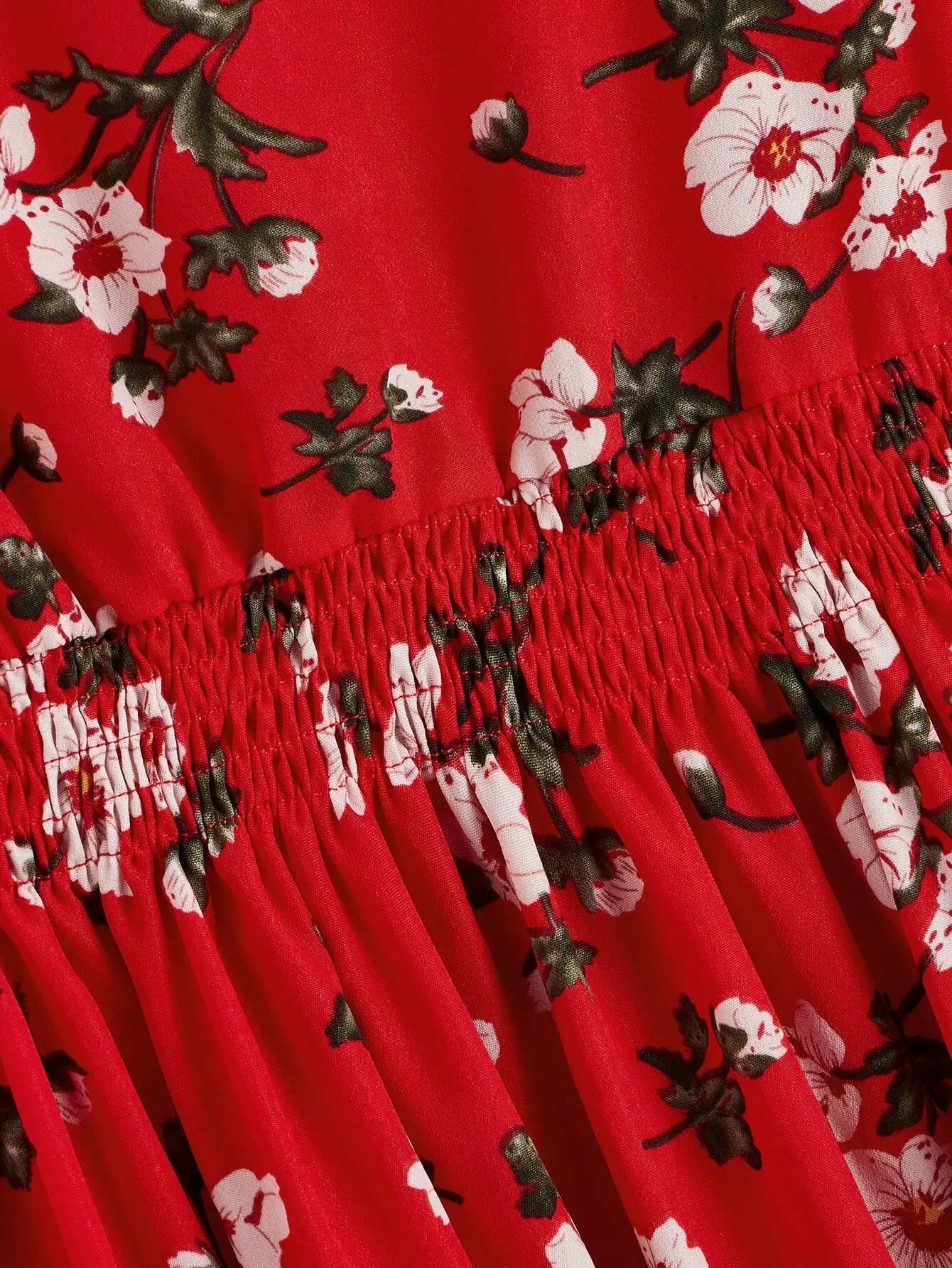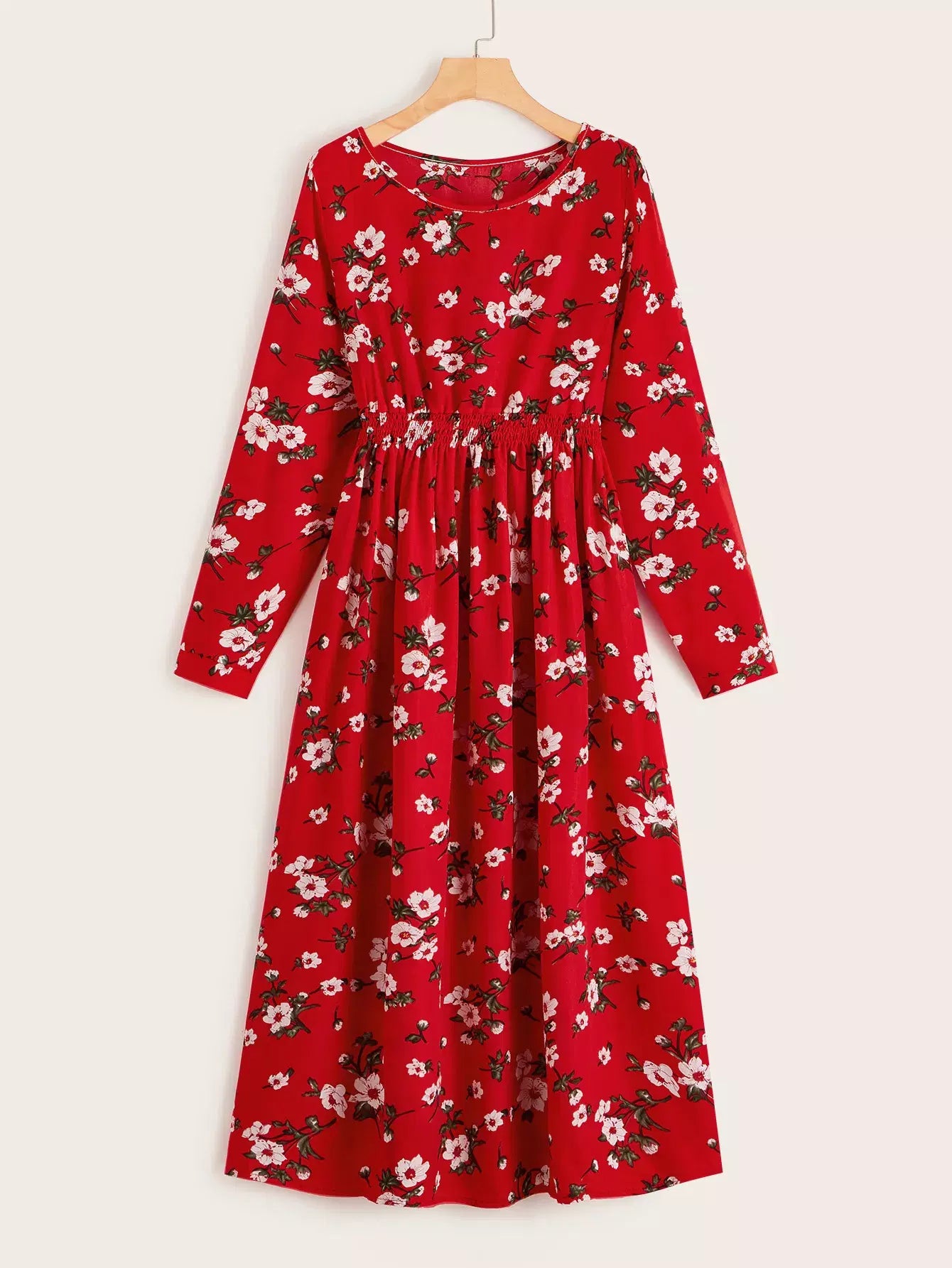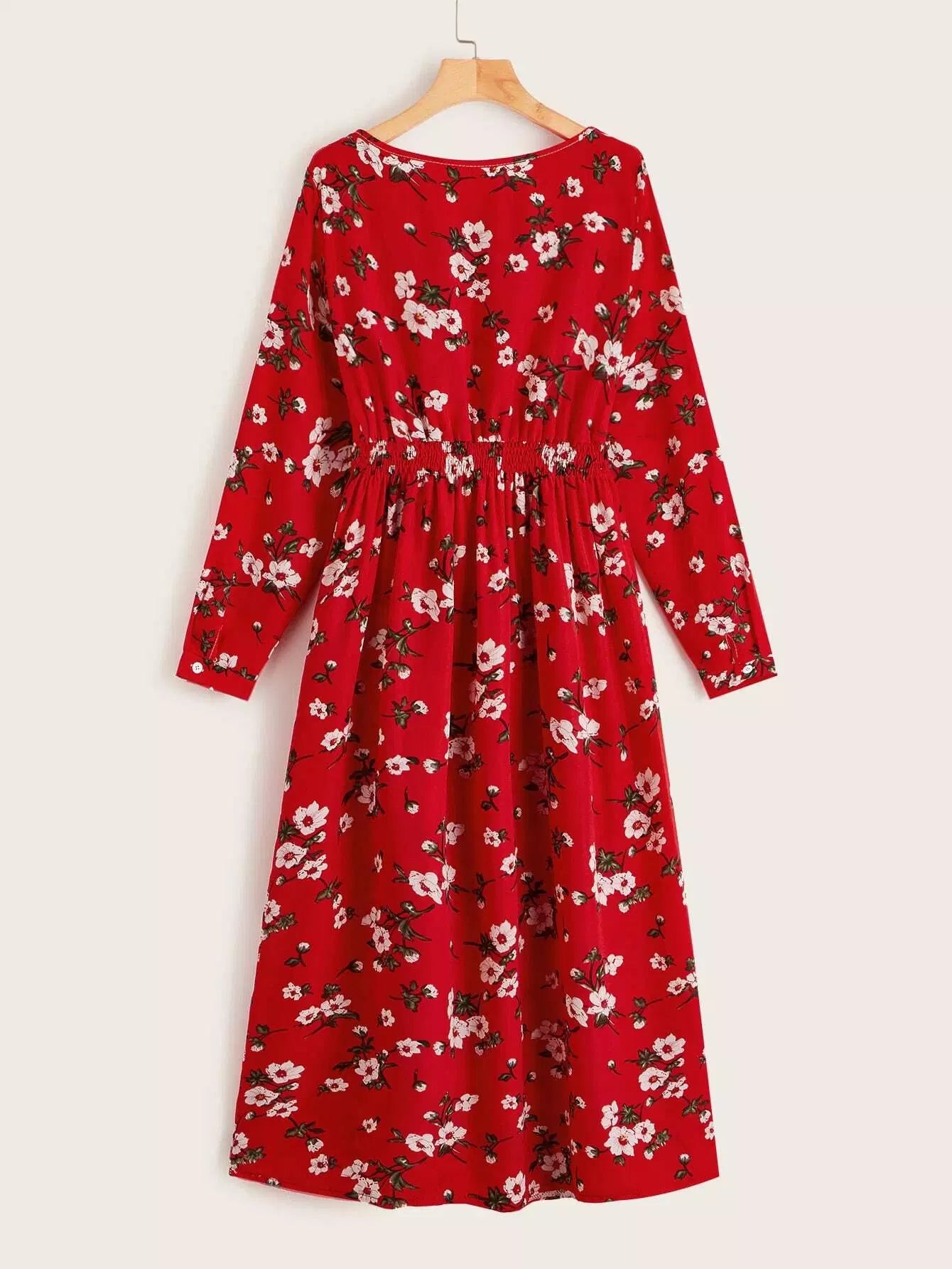 فستان بخصر مطاطي مزين بالورود بالكامل