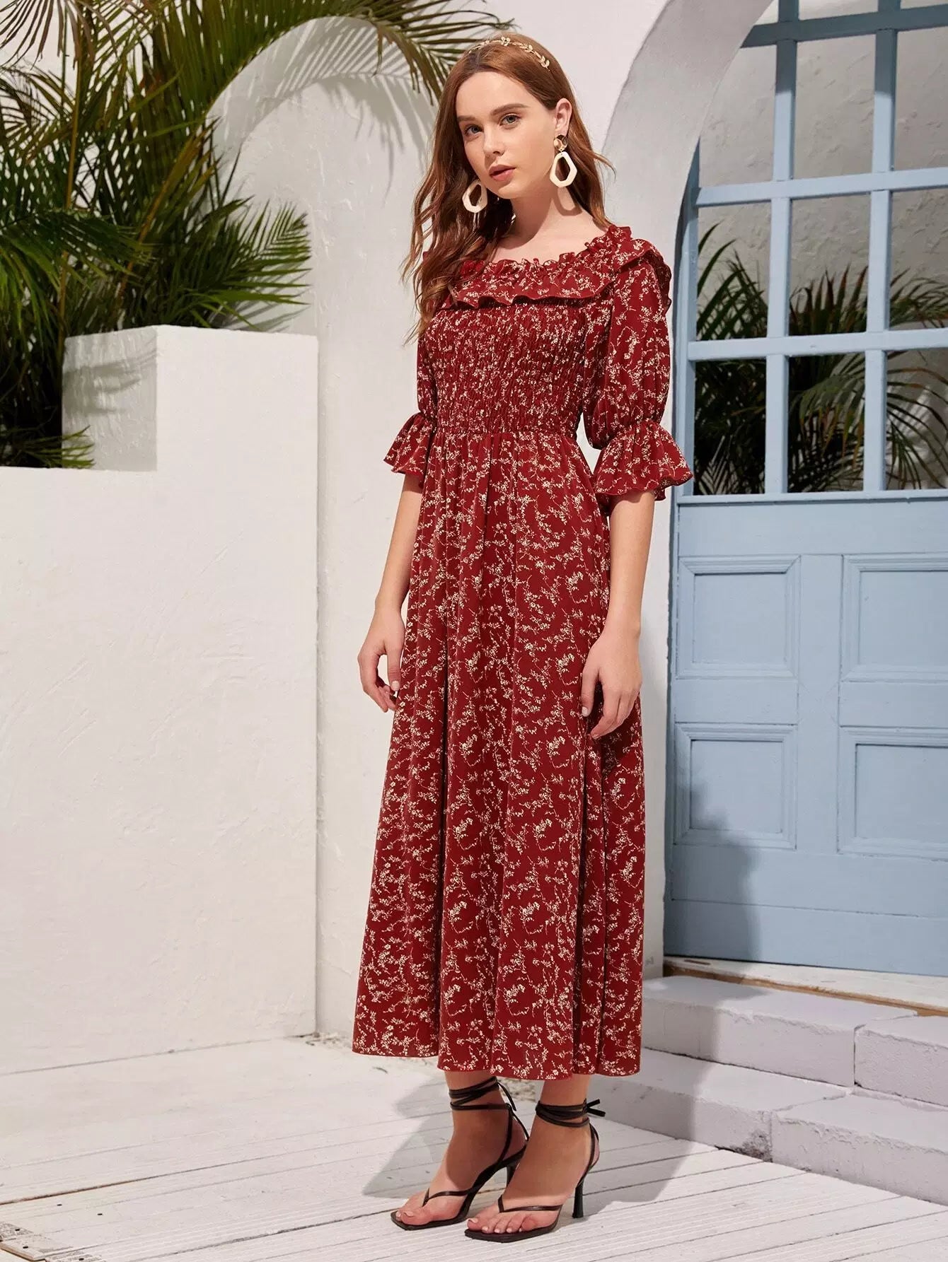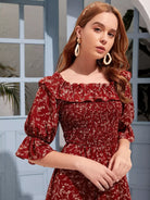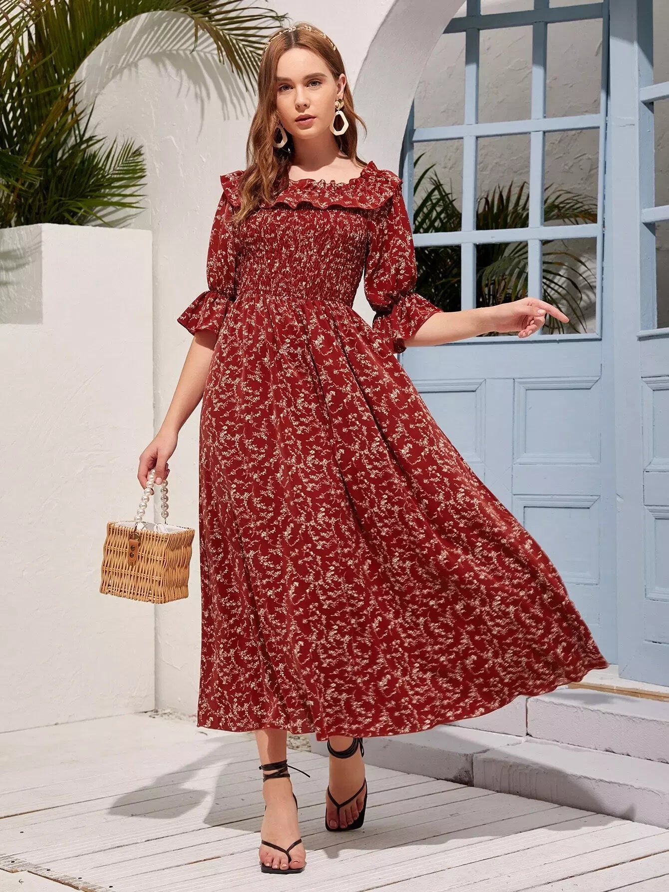فستان بنقوشات مطبوعة بالكامل على شكل حرف A