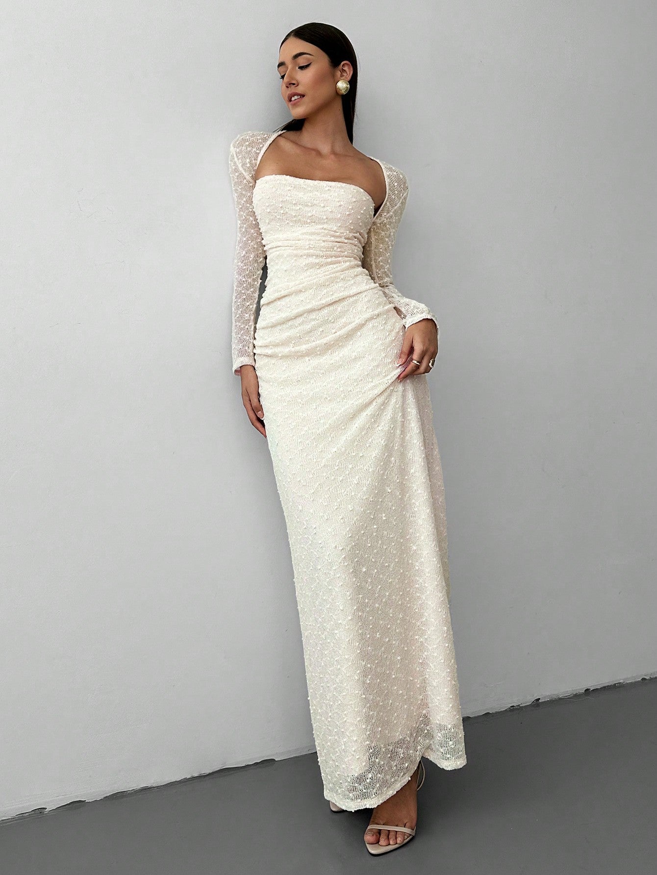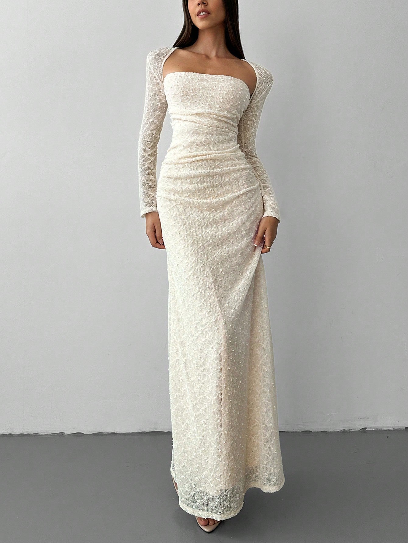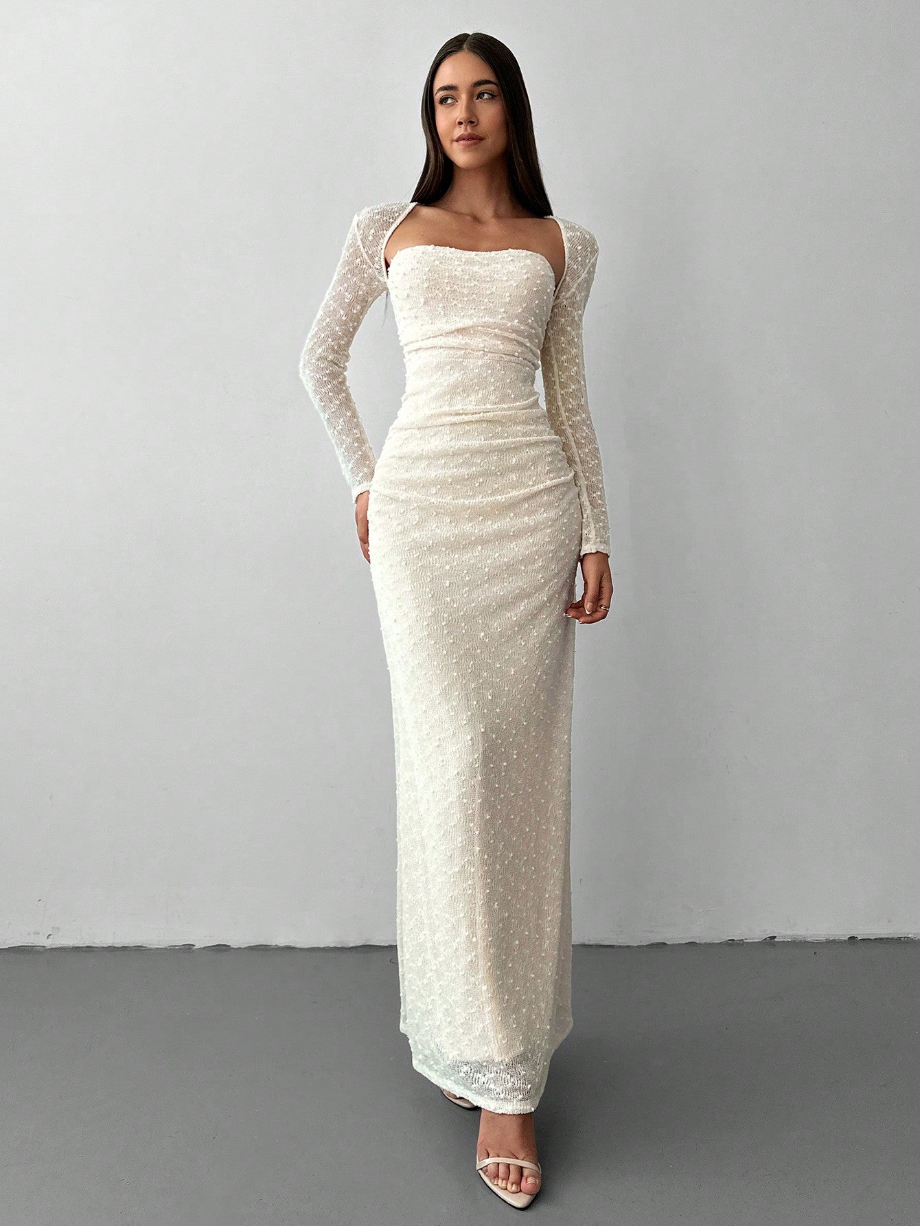 فستان طويل جدًا أنيق من Aloruh New Style بياقة مربعة من قماش الجاكار