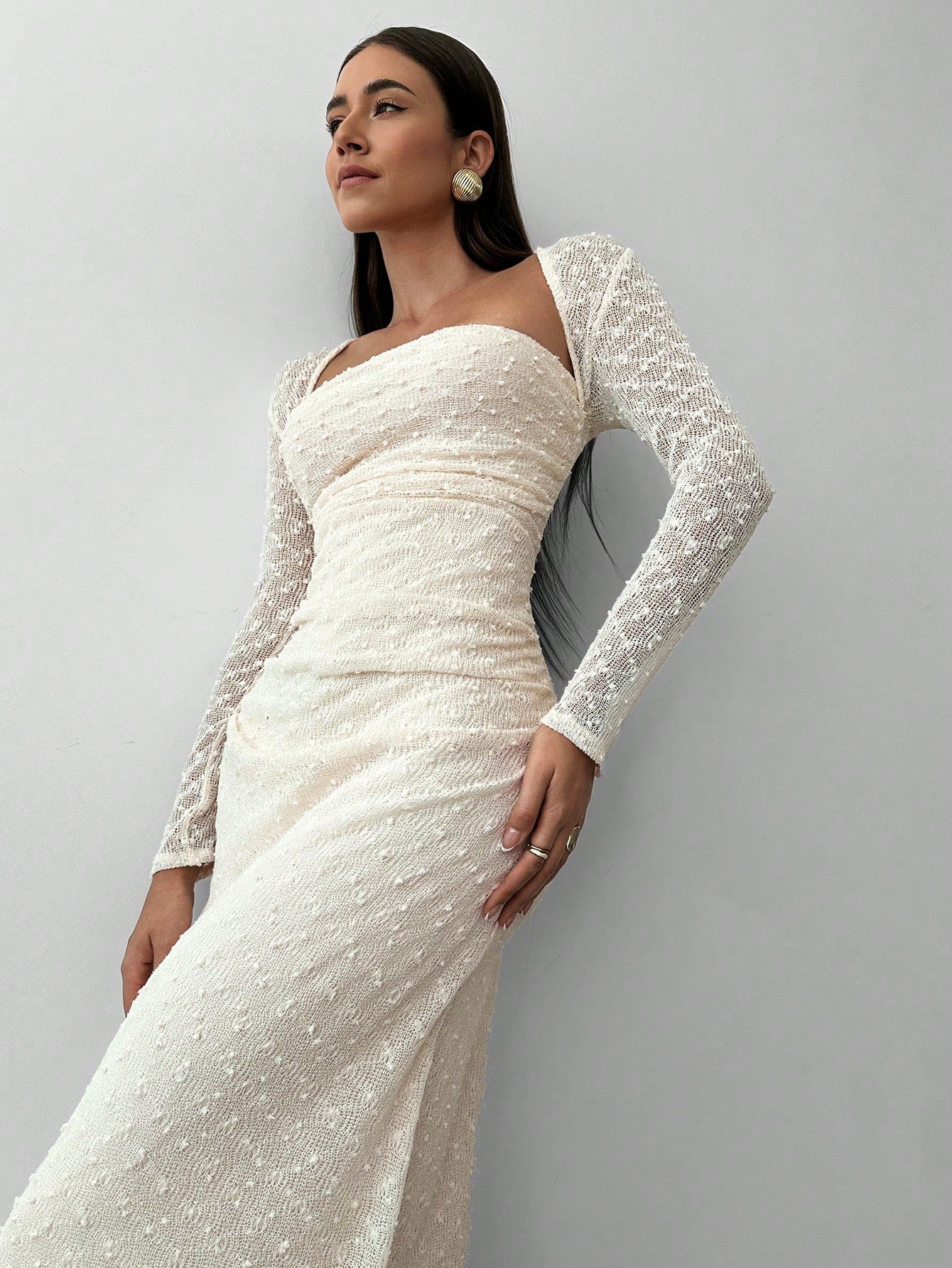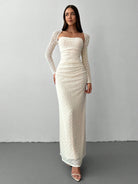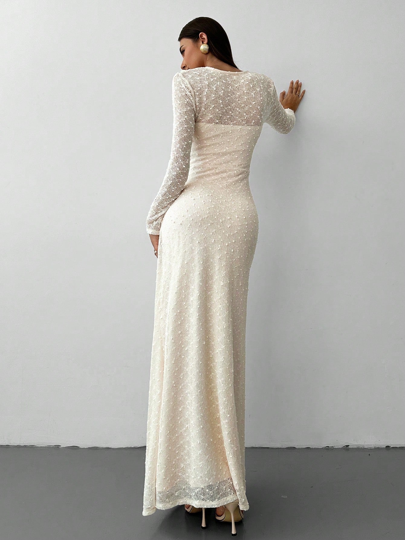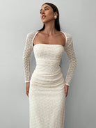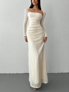women Aloruh New Style Elegant Square Collar Jacquard Knit Extra Long Dress