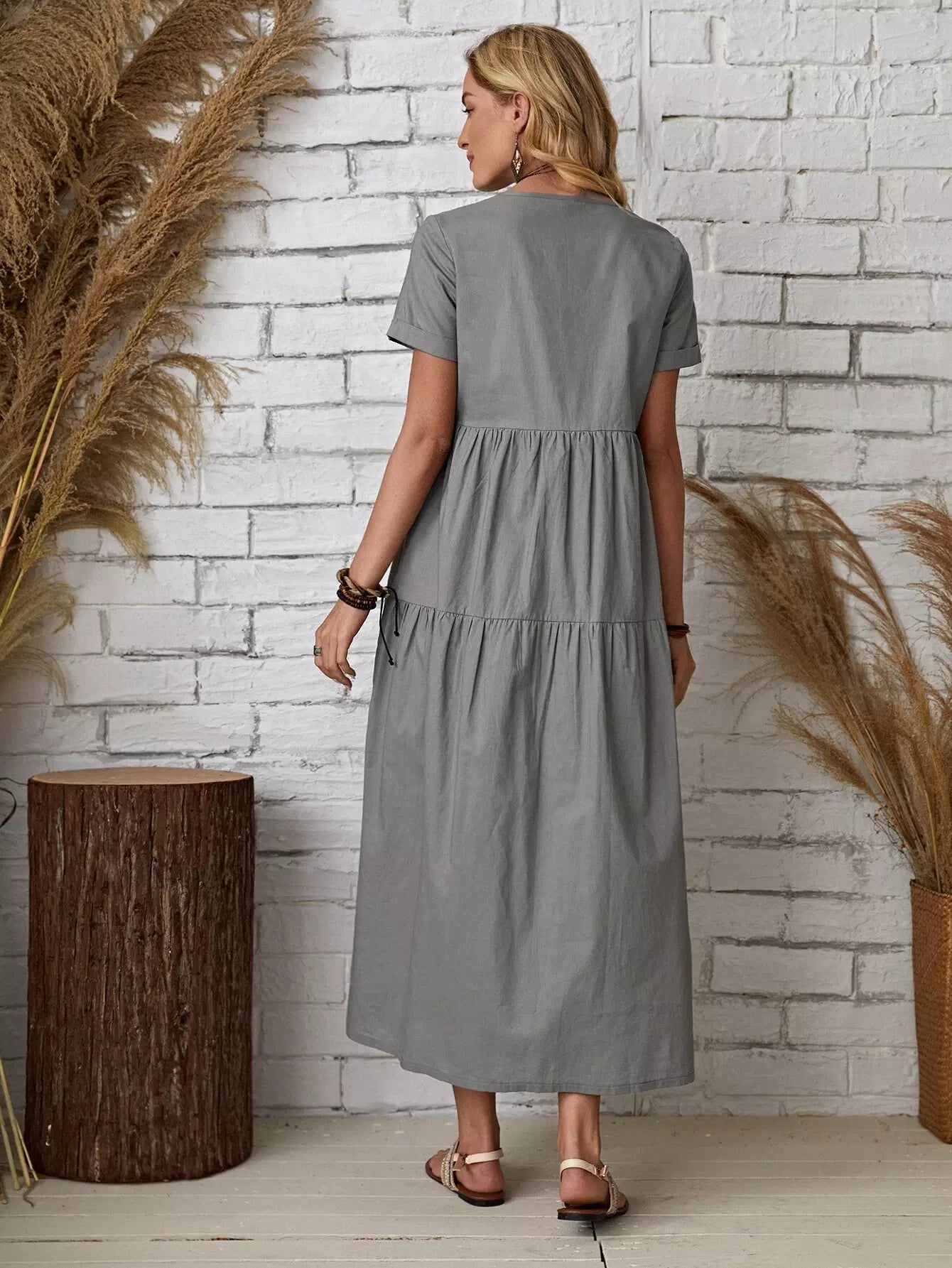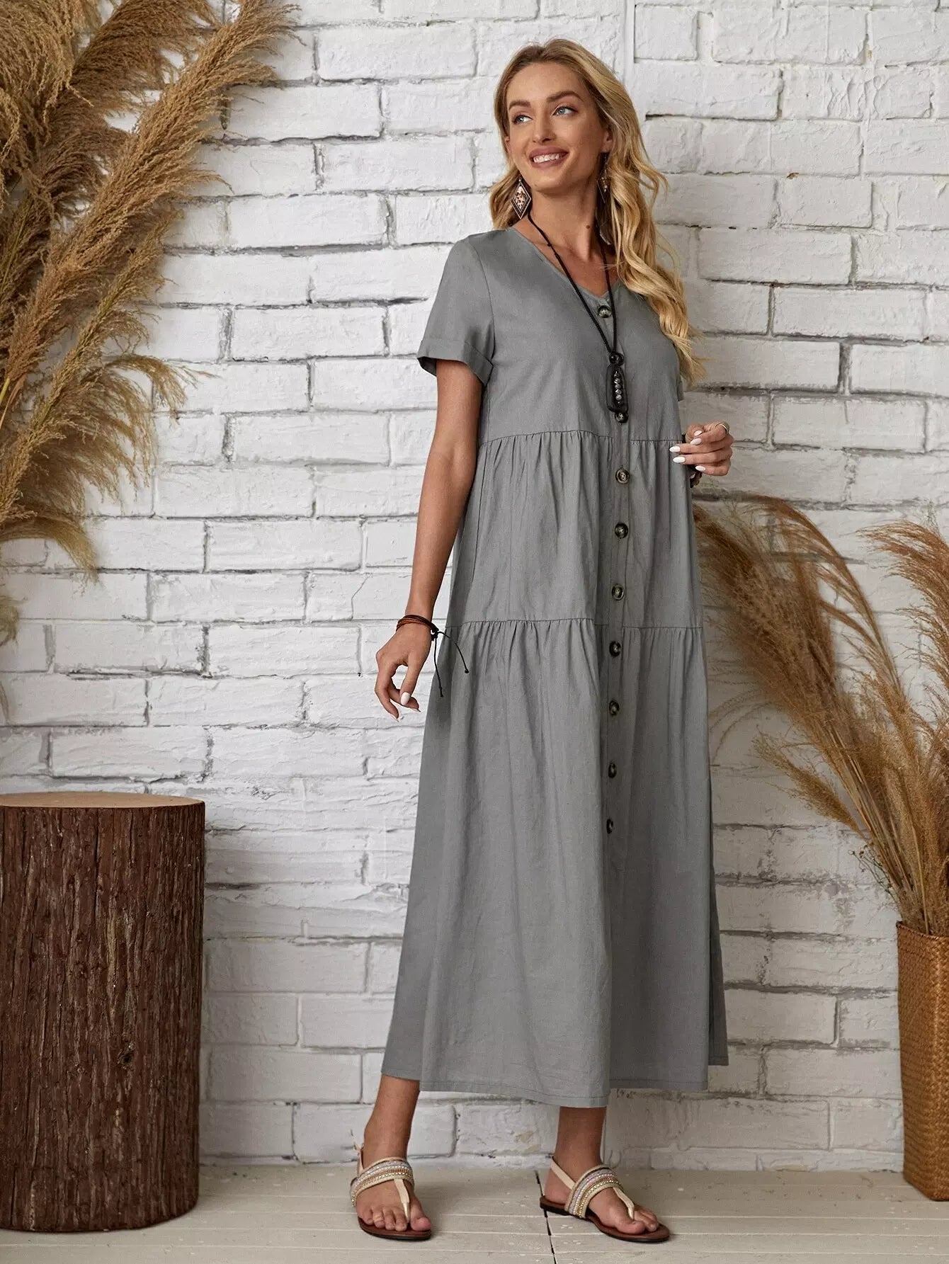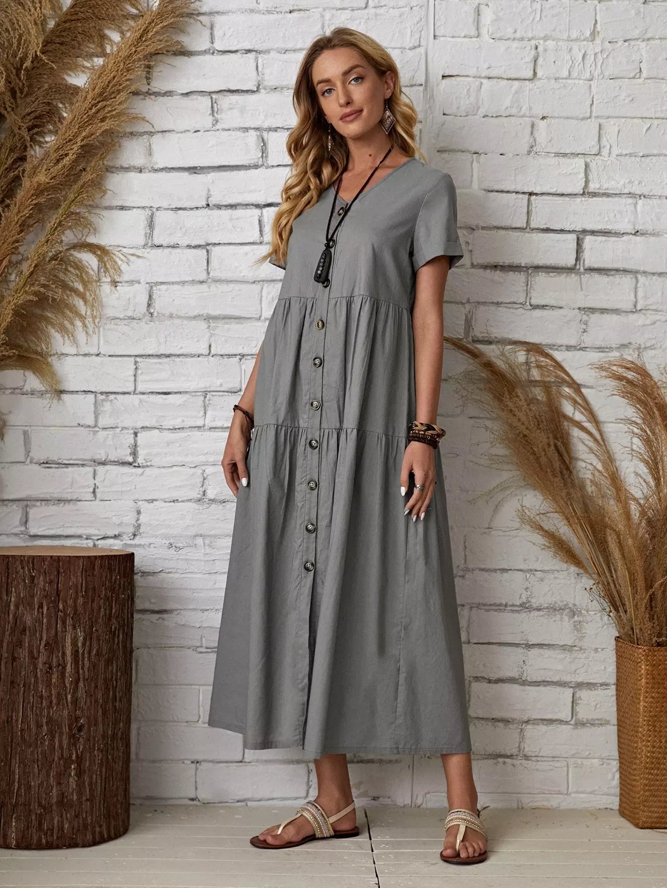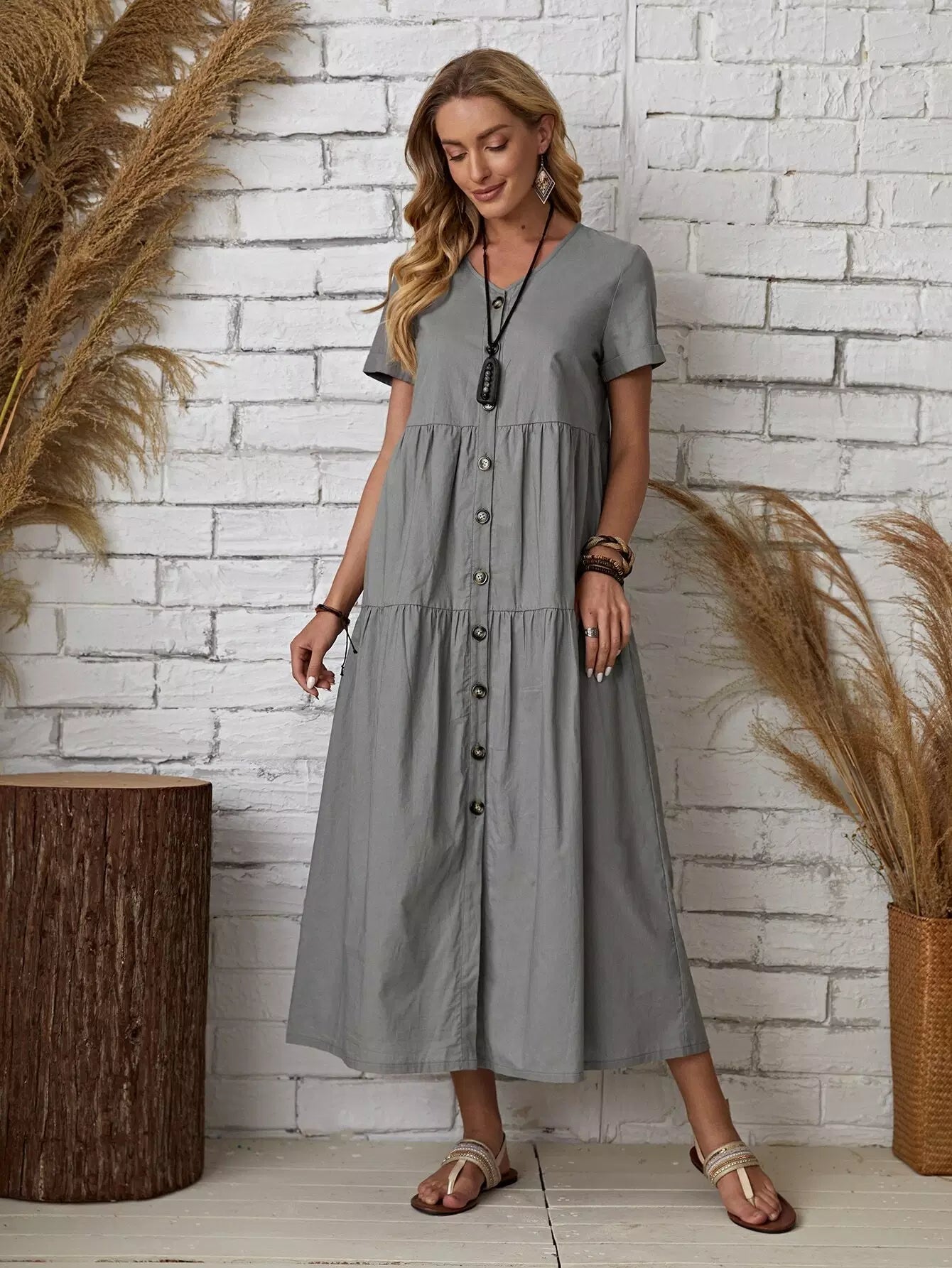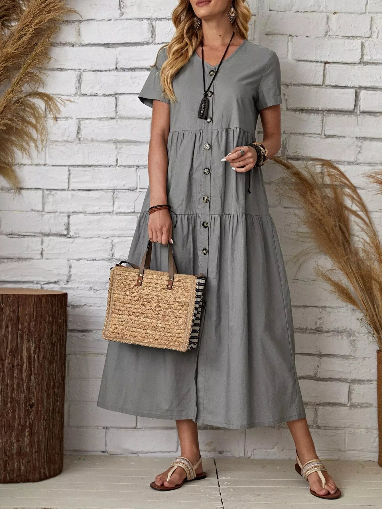 فستان سوينغ سموك بأزرار أمامي بأزرار
