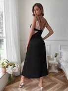 فستان كامي بفتحة من الدانتيل مقطوع من الخصر ومفتوح من الدانتيل
