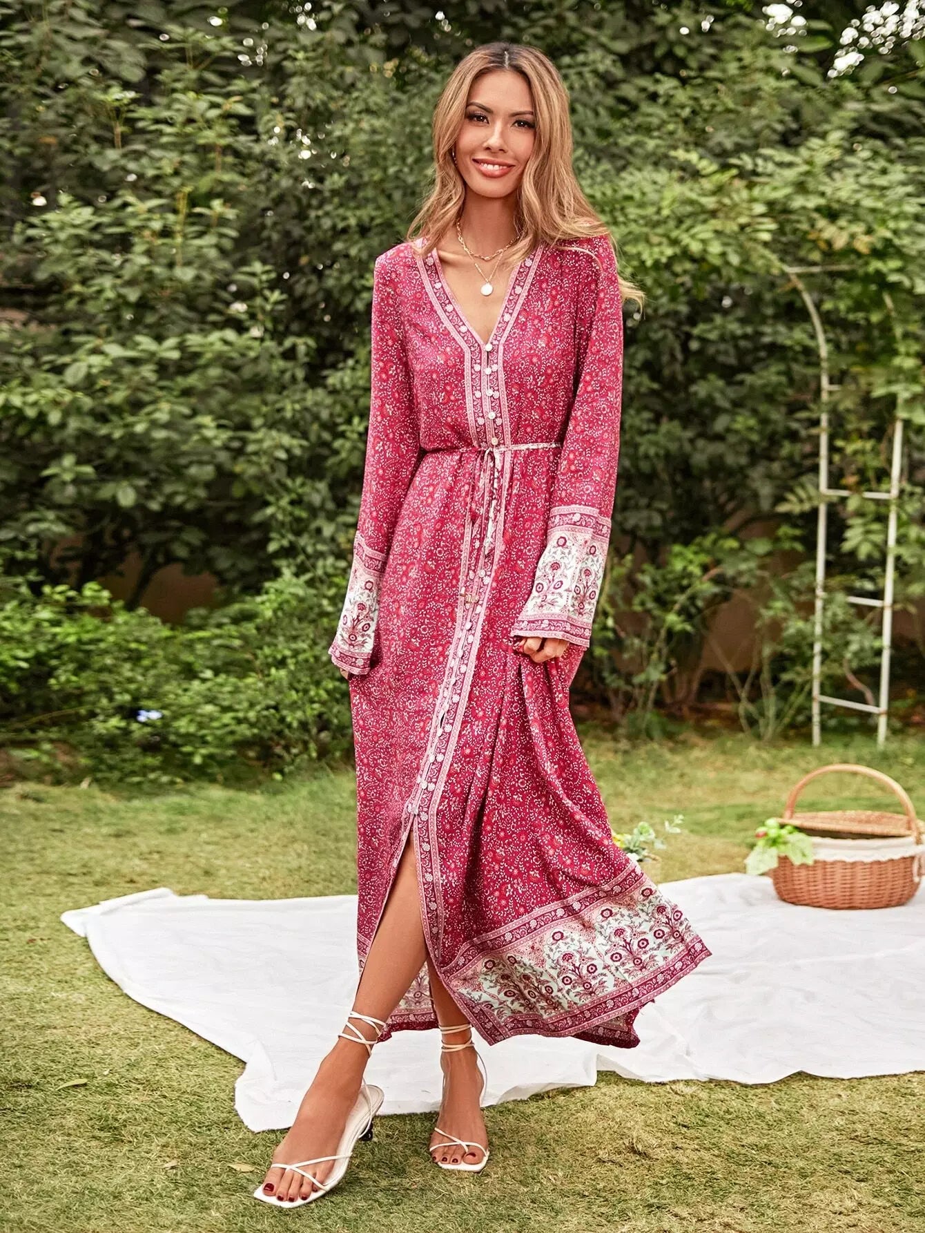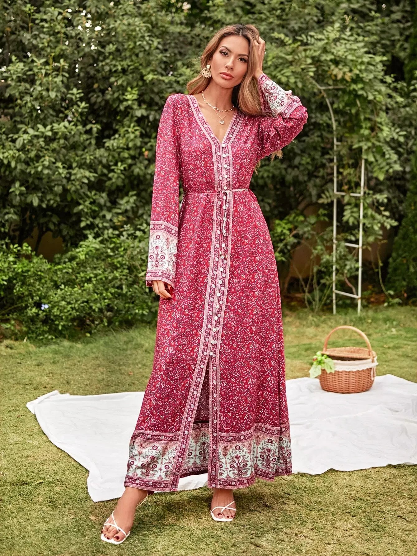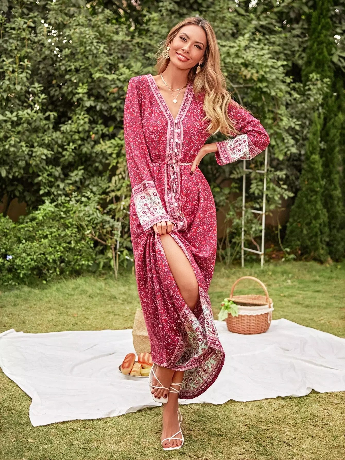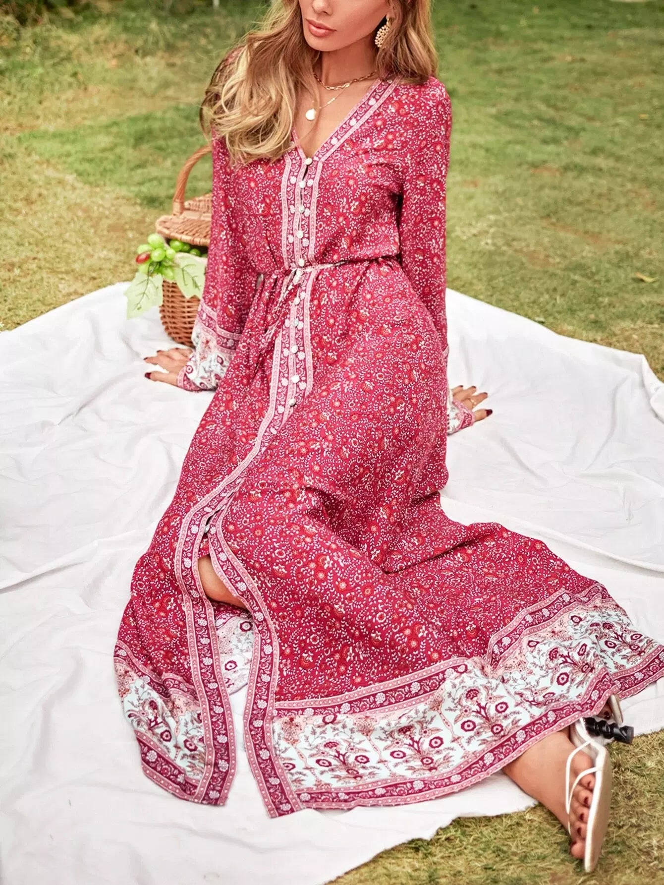 فستان Ditsy بنقشة الزهور على شكل حرف A بدون حزام