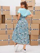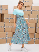 فستان مزين بنقشة زهور صغيرة متباينة الألوان
