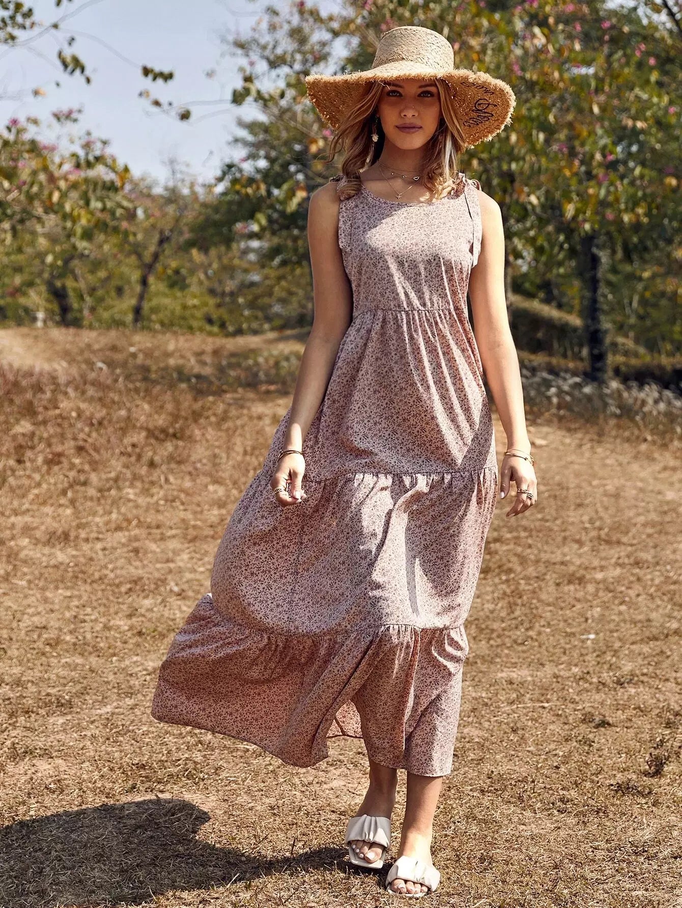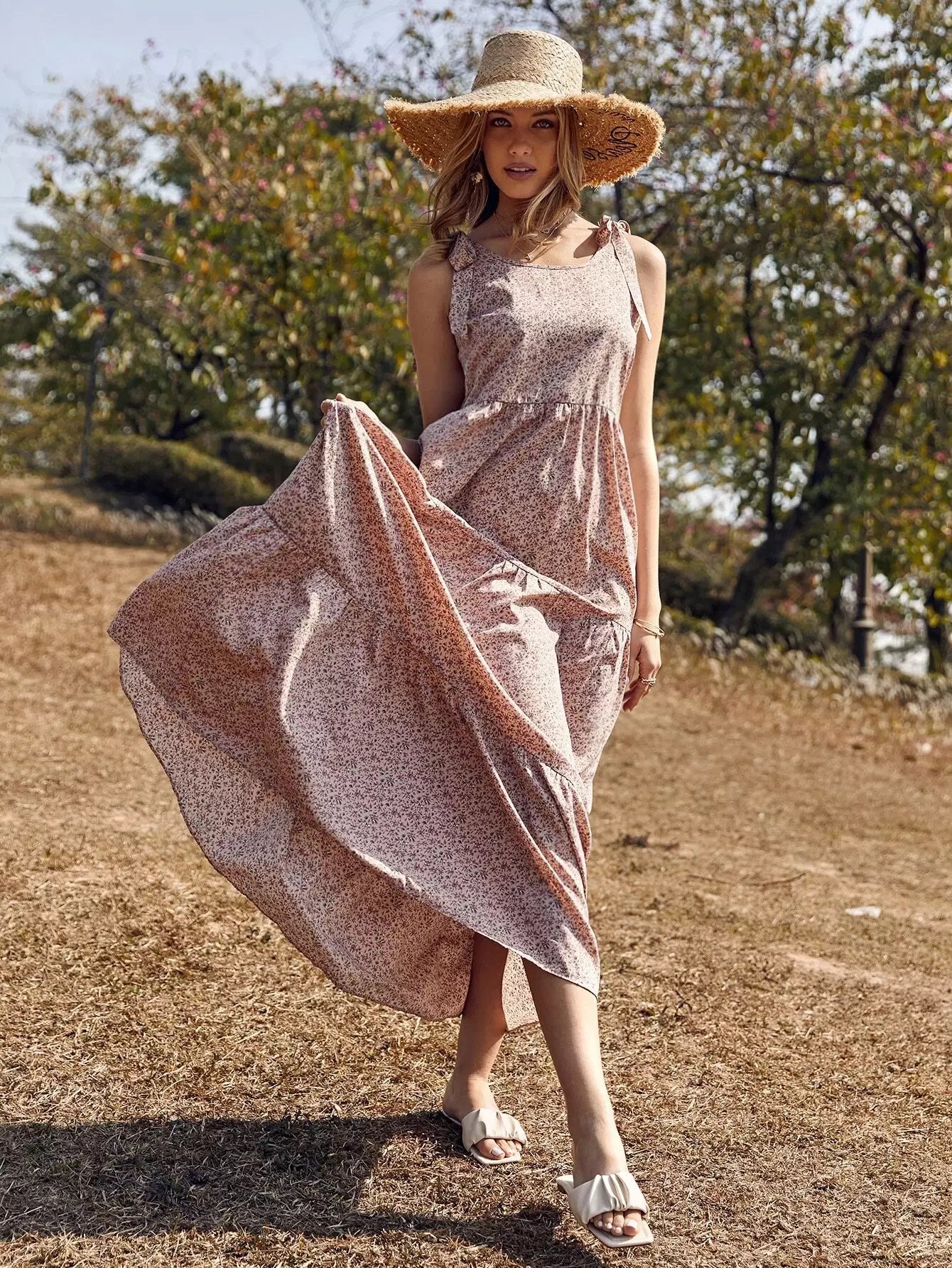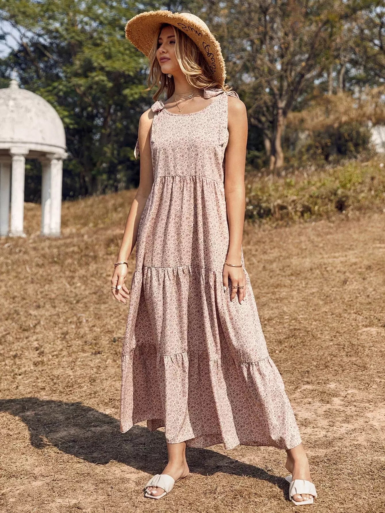 فستان ديتسي مزين بربطة عنق على الأكتاف مزين بالزهور