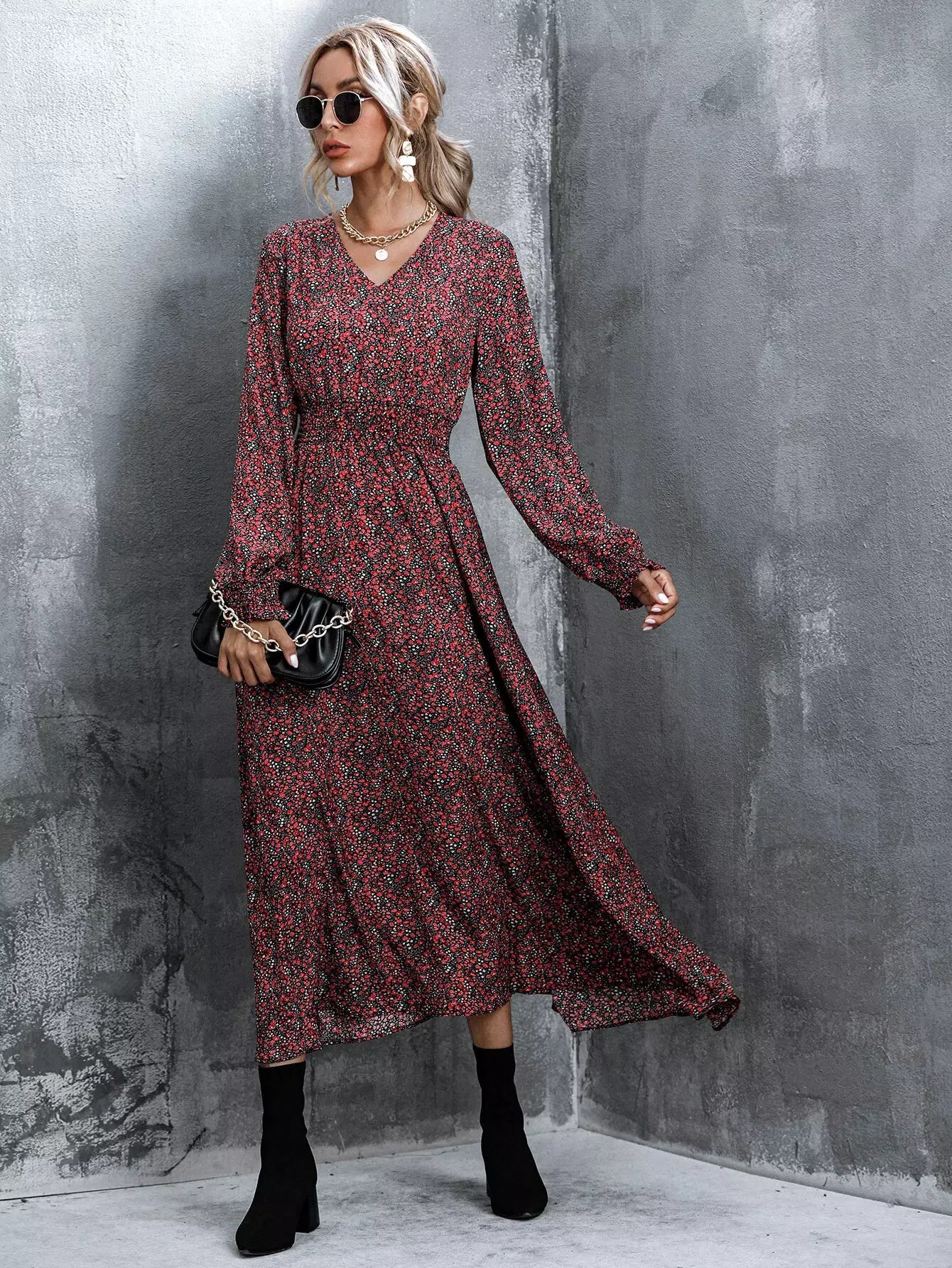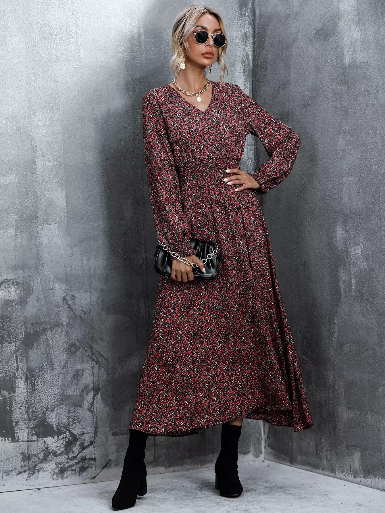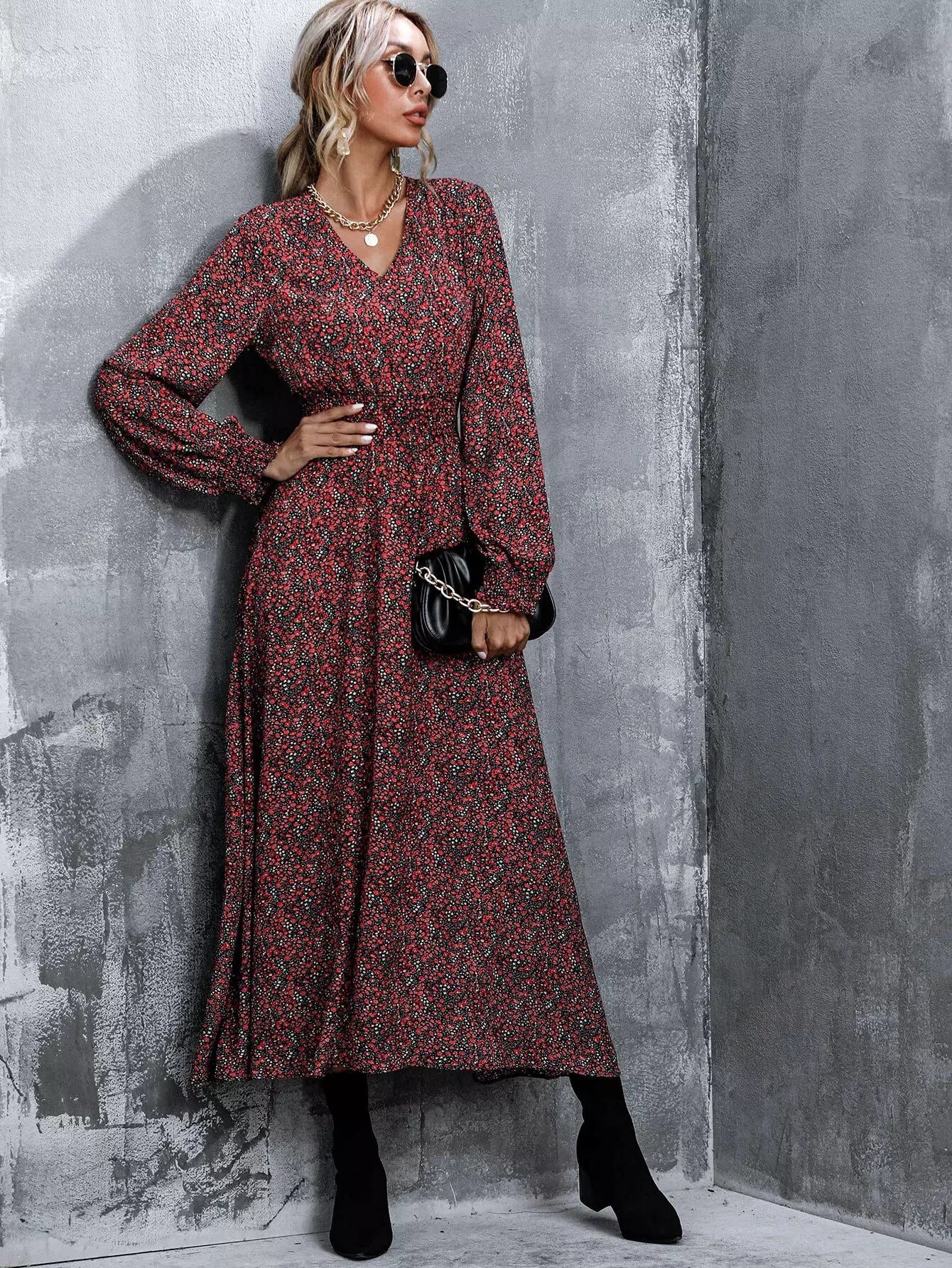 فستان ديتسي بياقة على شكل V بياقة على شكل V بياقة واسعة