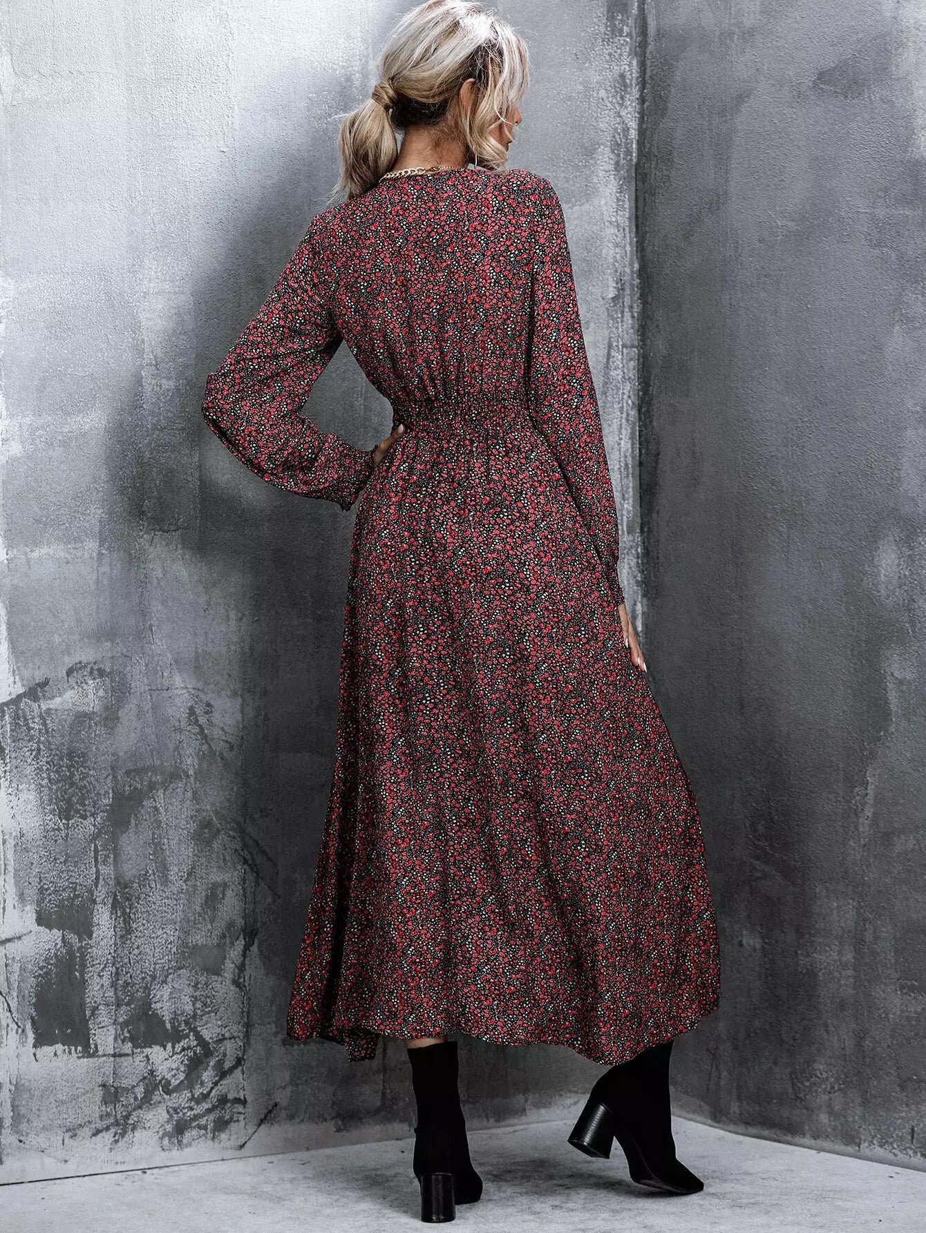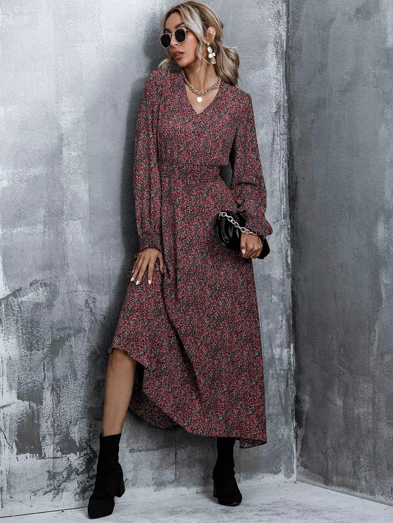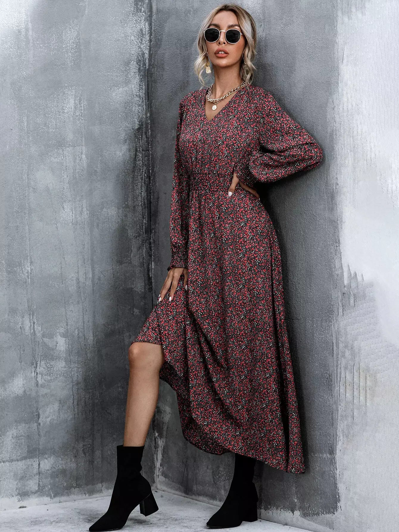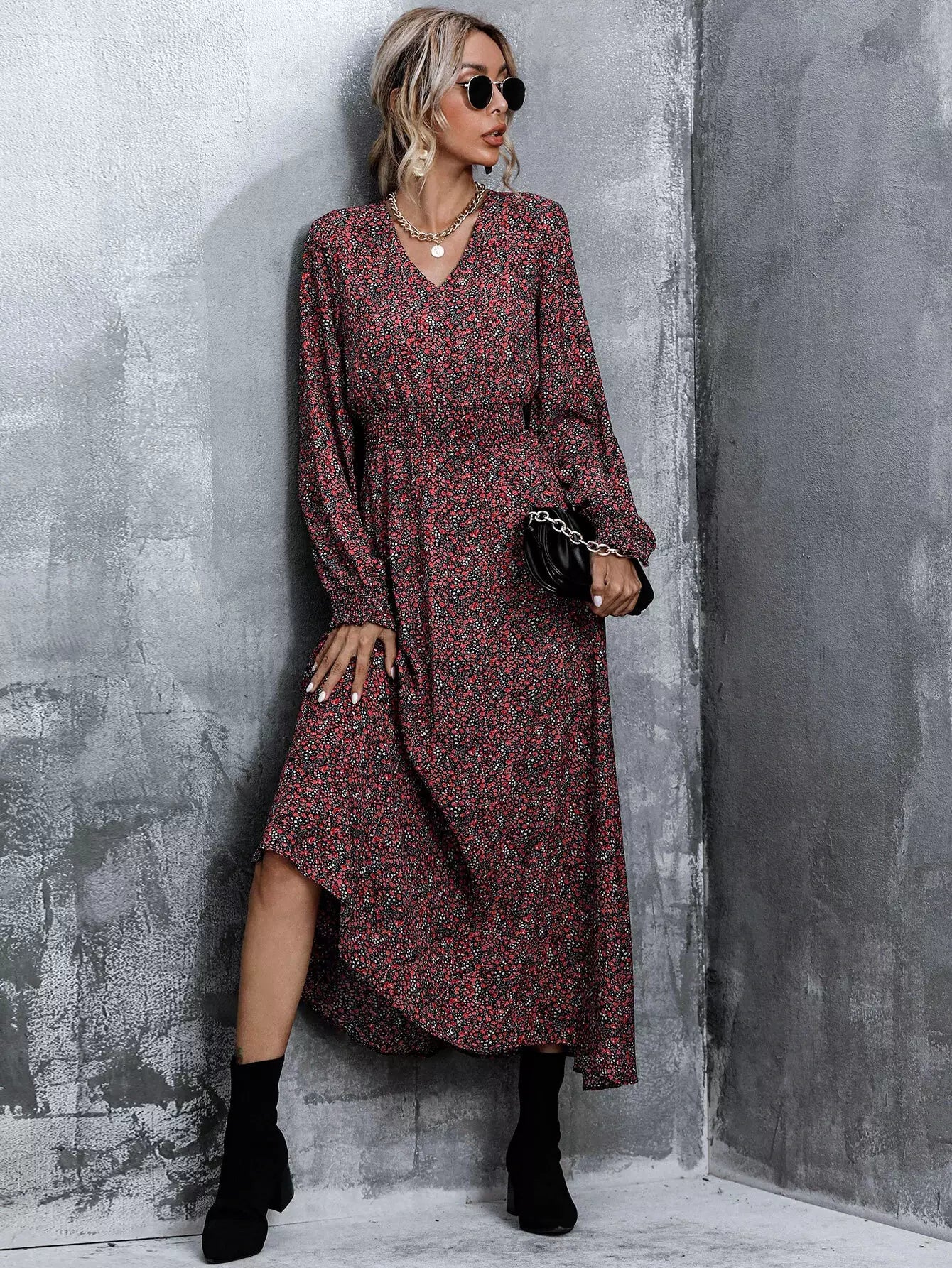 فستان ديتسي بياقة على شكل V بياقة على شكل V بياقة واسعة