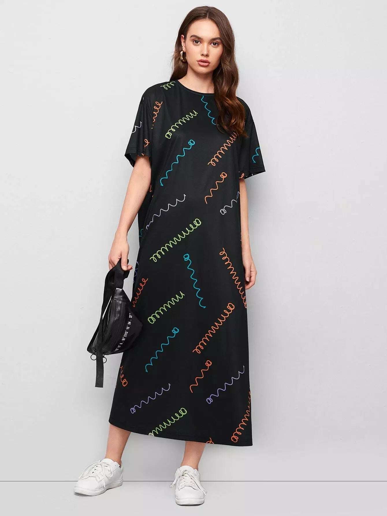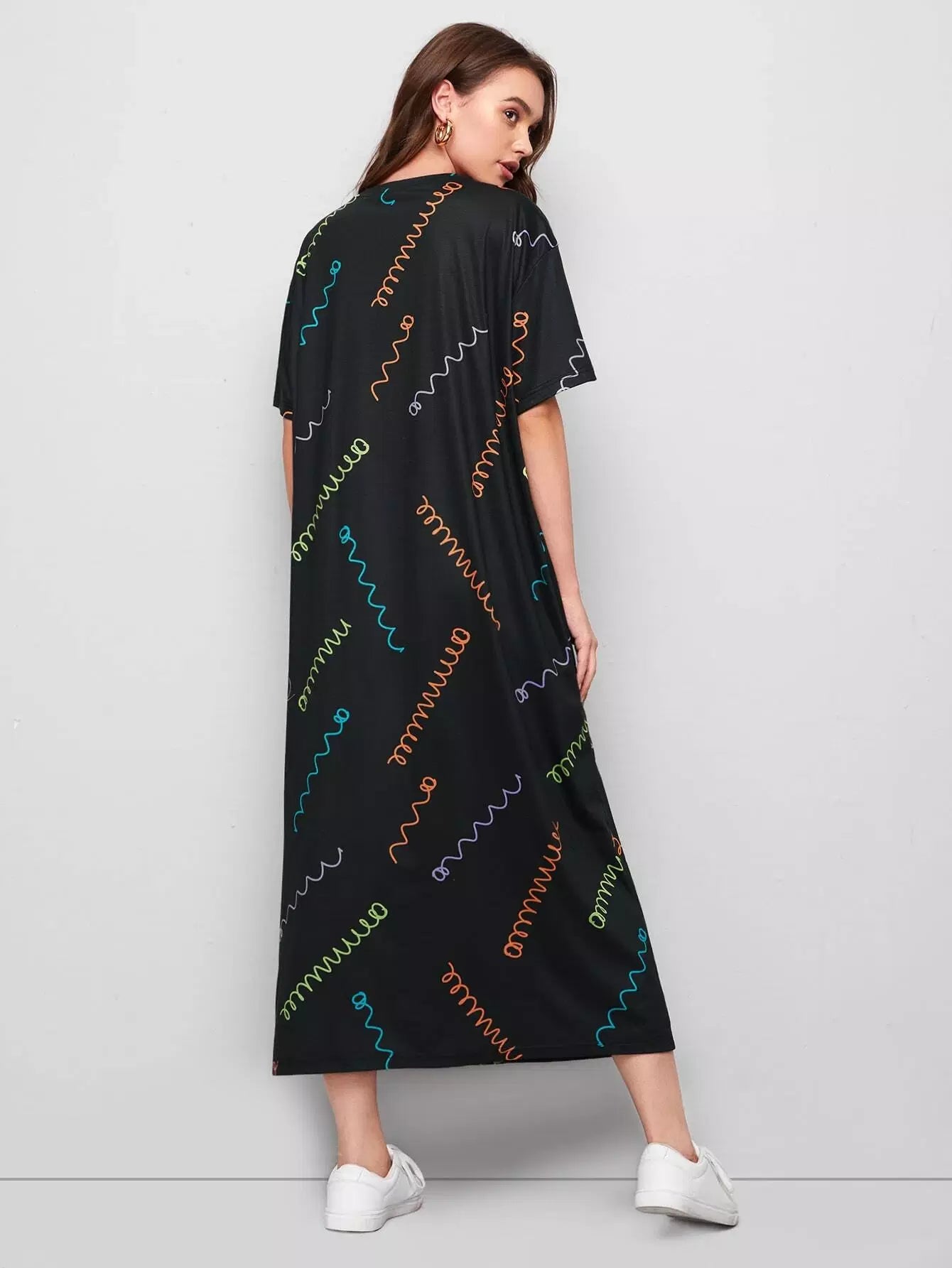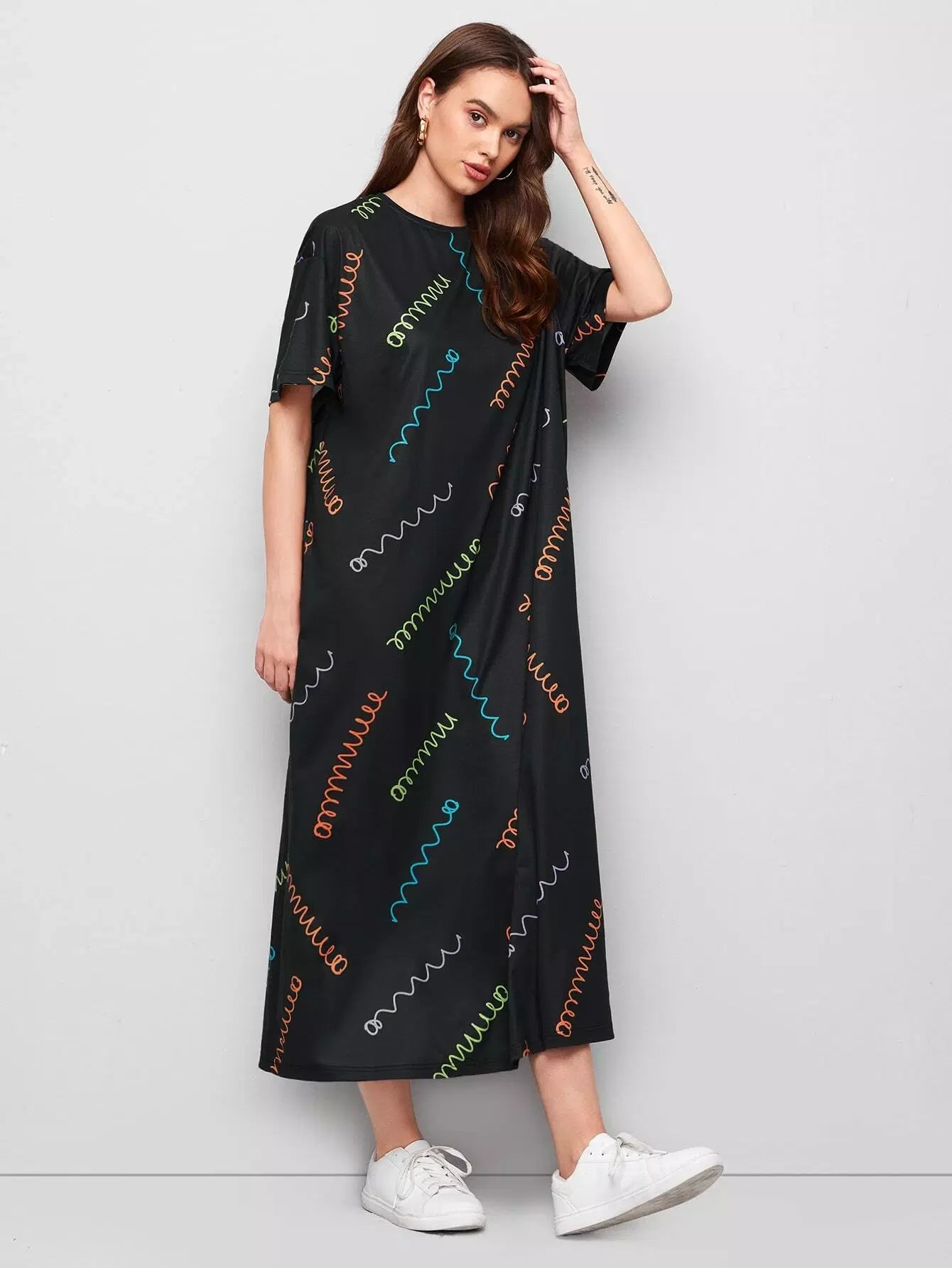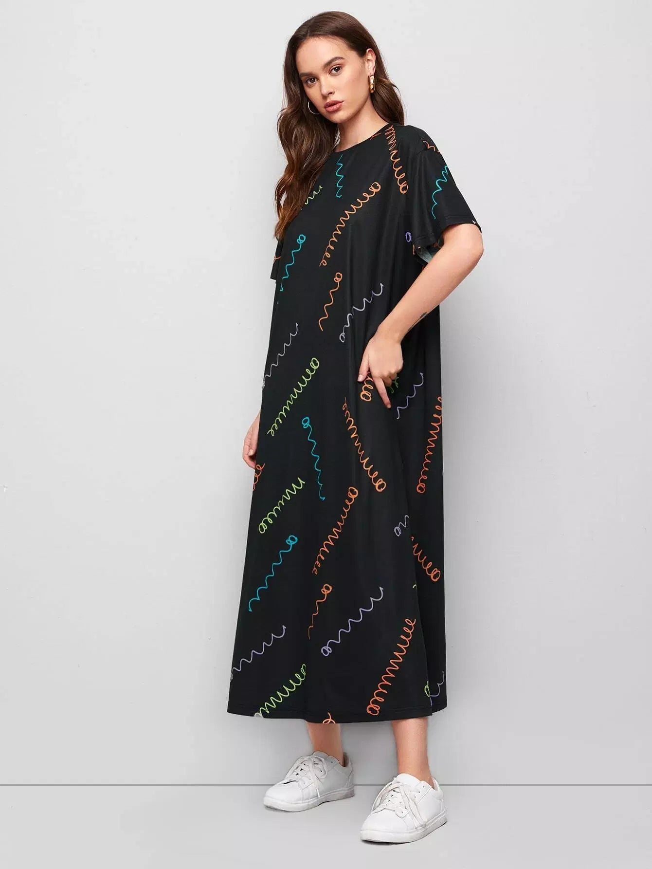 فستان بطبعة ربيع منسدل الكتفين