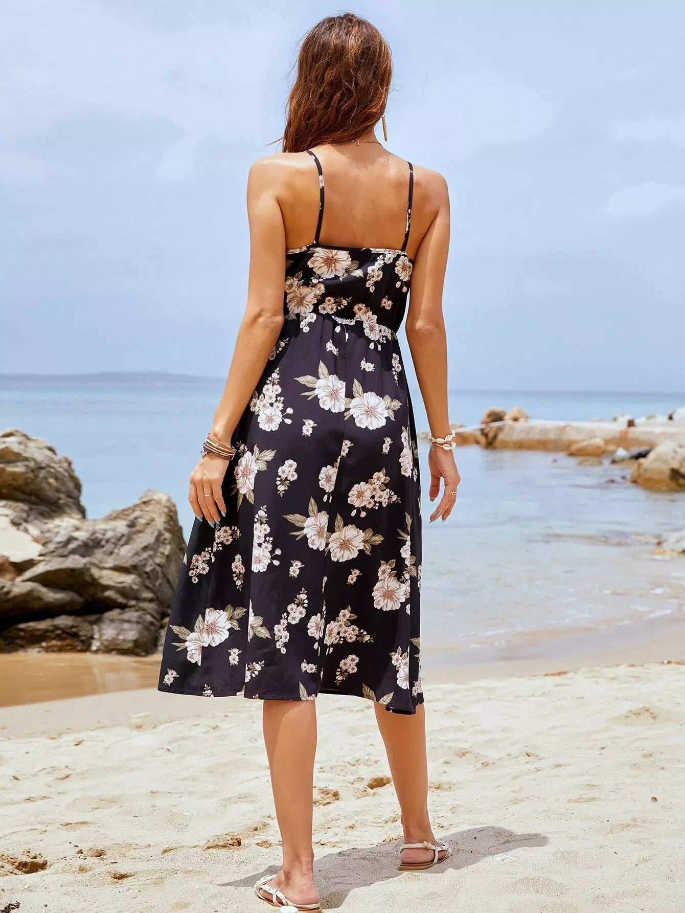 فستان كامي بطبعة زهور مطبوع على الفخذين منقوش بطباعة زهور