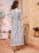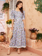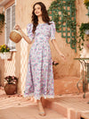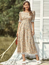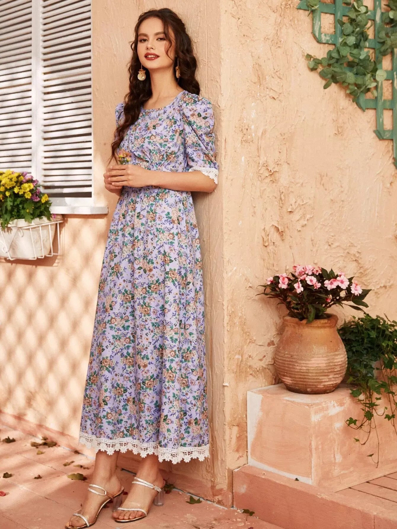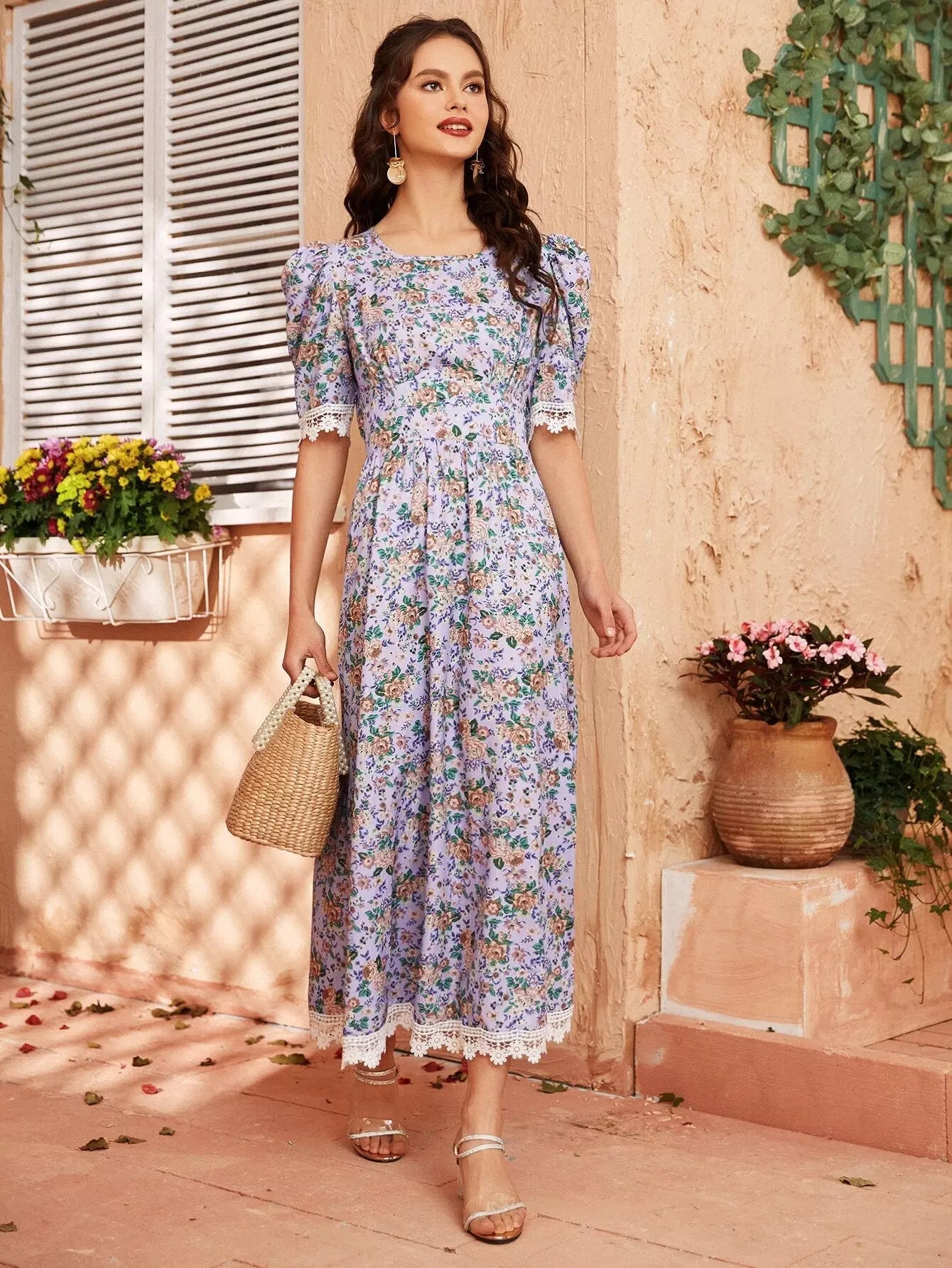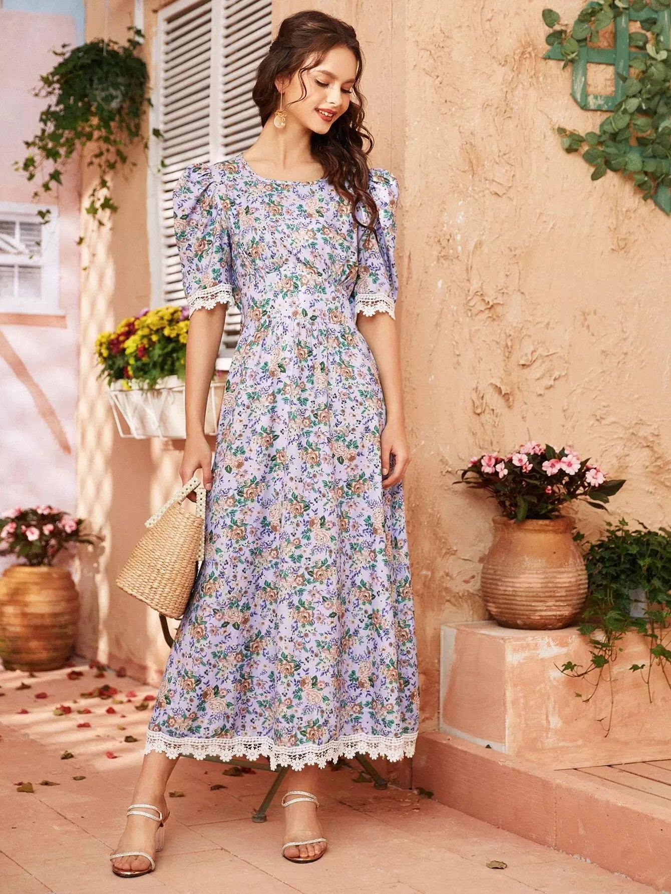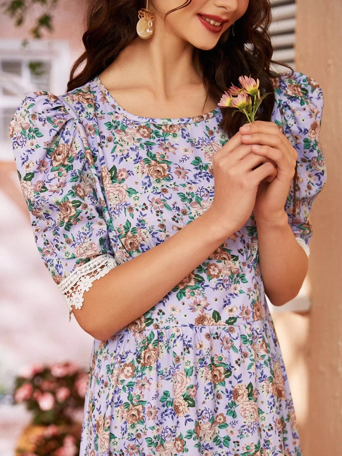 فستان بأكمام منفوشة من الدانتيل بأكمام زهرية على شكل حرف A