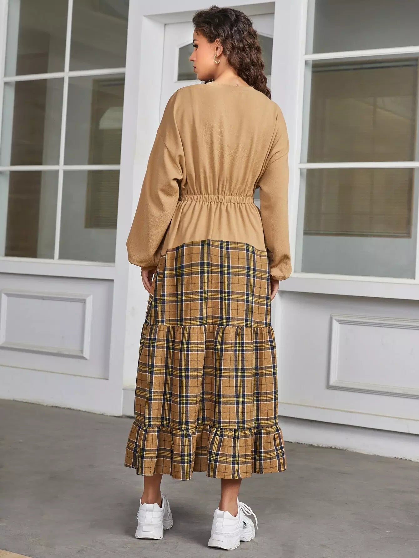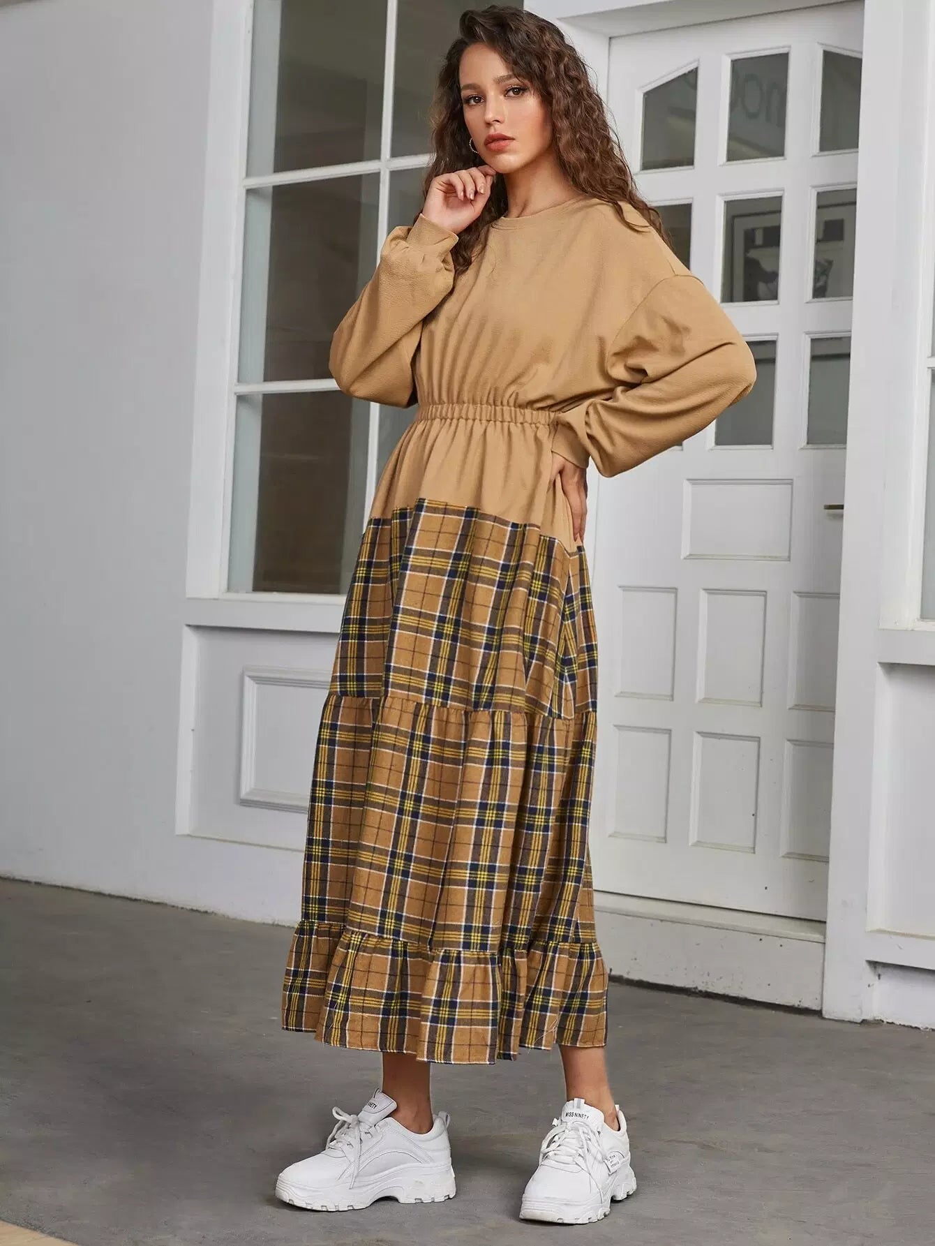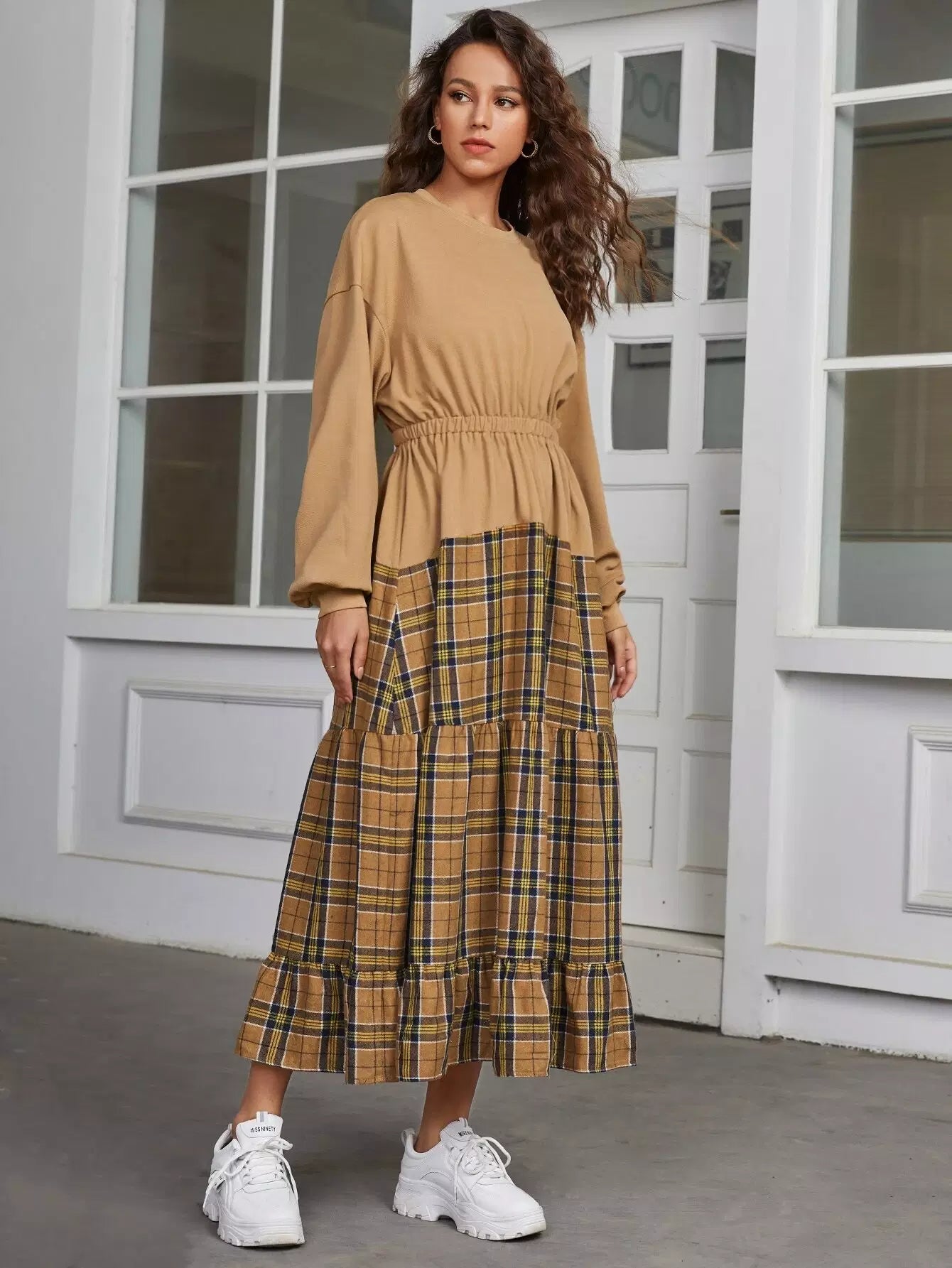 فستان بأكمام منفوشة بأكمام فانوسية بحافة منفوشة من الترتان