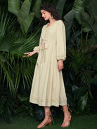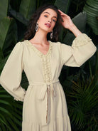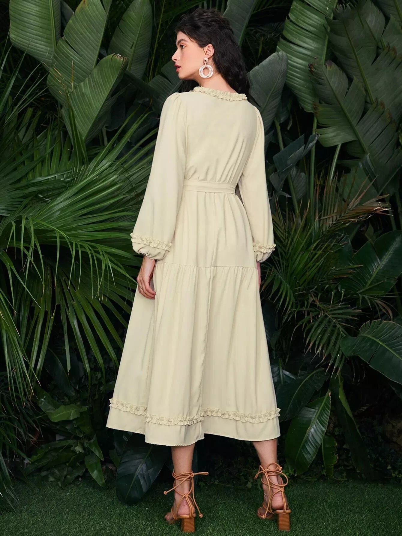 فستان بأكمام فانوس وكشكشة بدون حزام