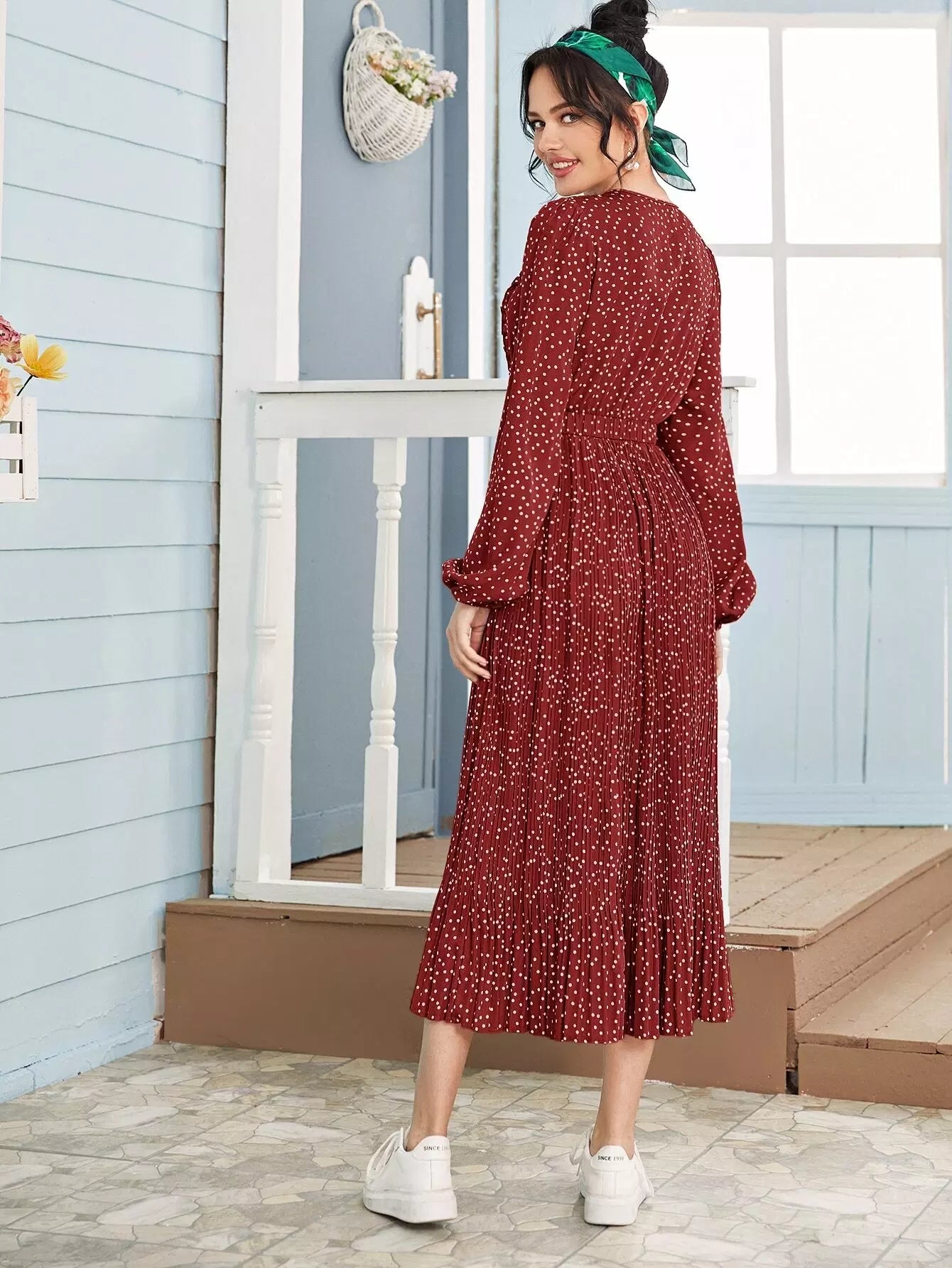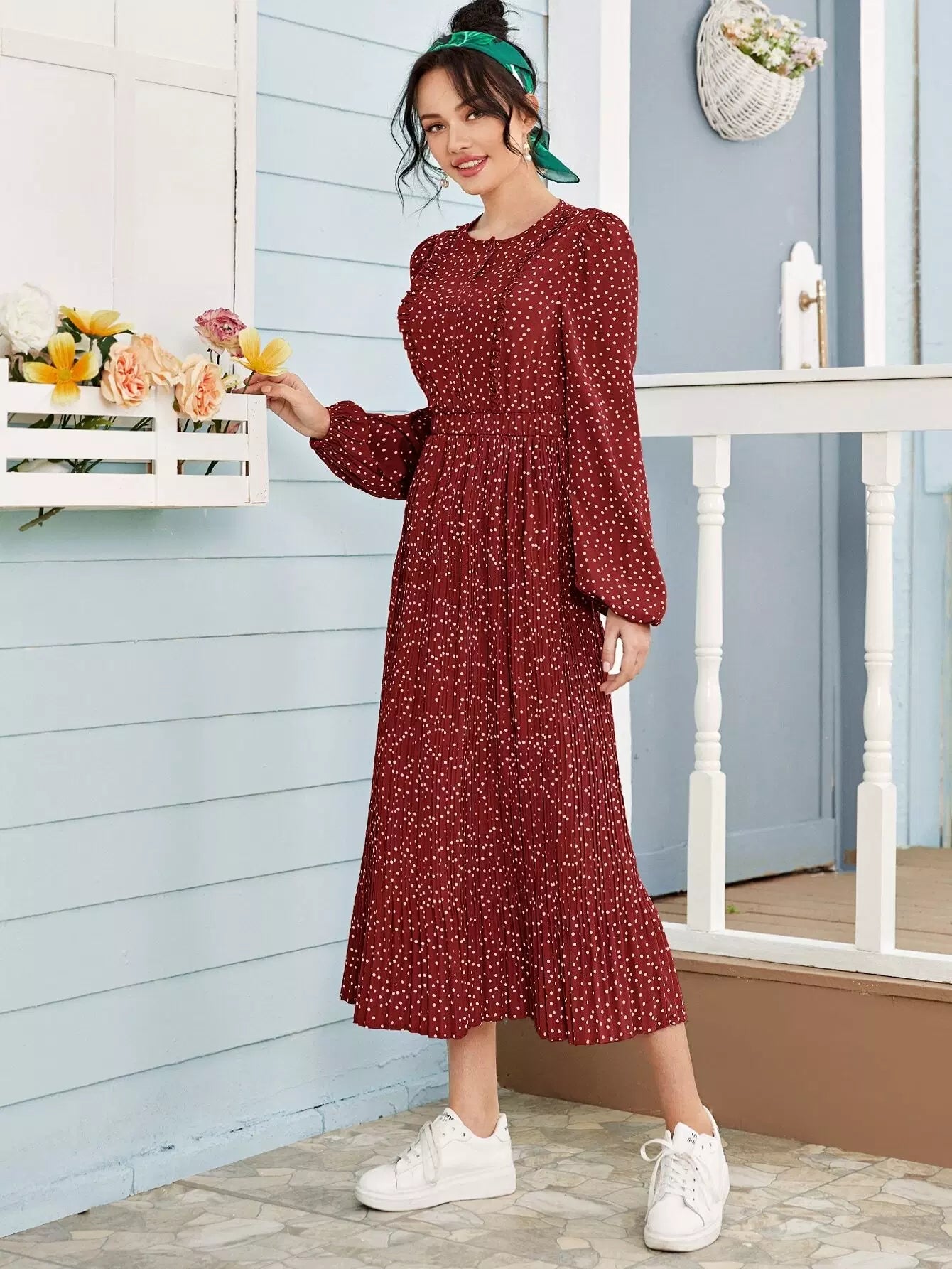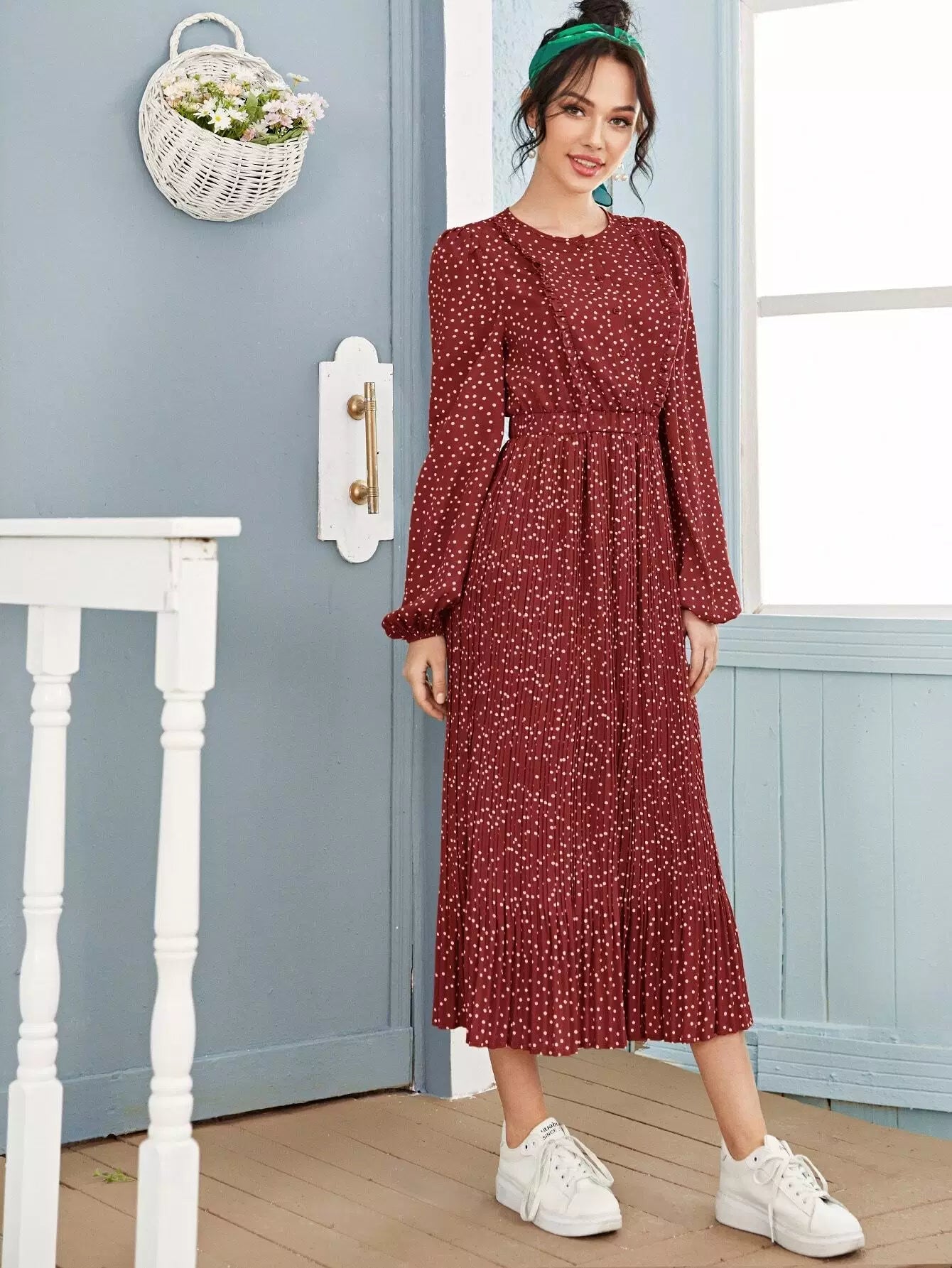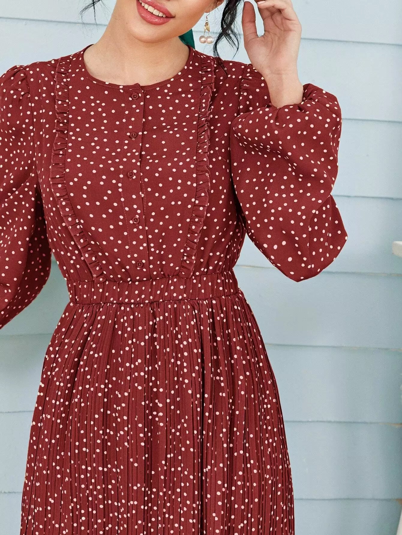 فستان منقّط بأكمام كشكش بأطراف كشكش بأكمام فانوس