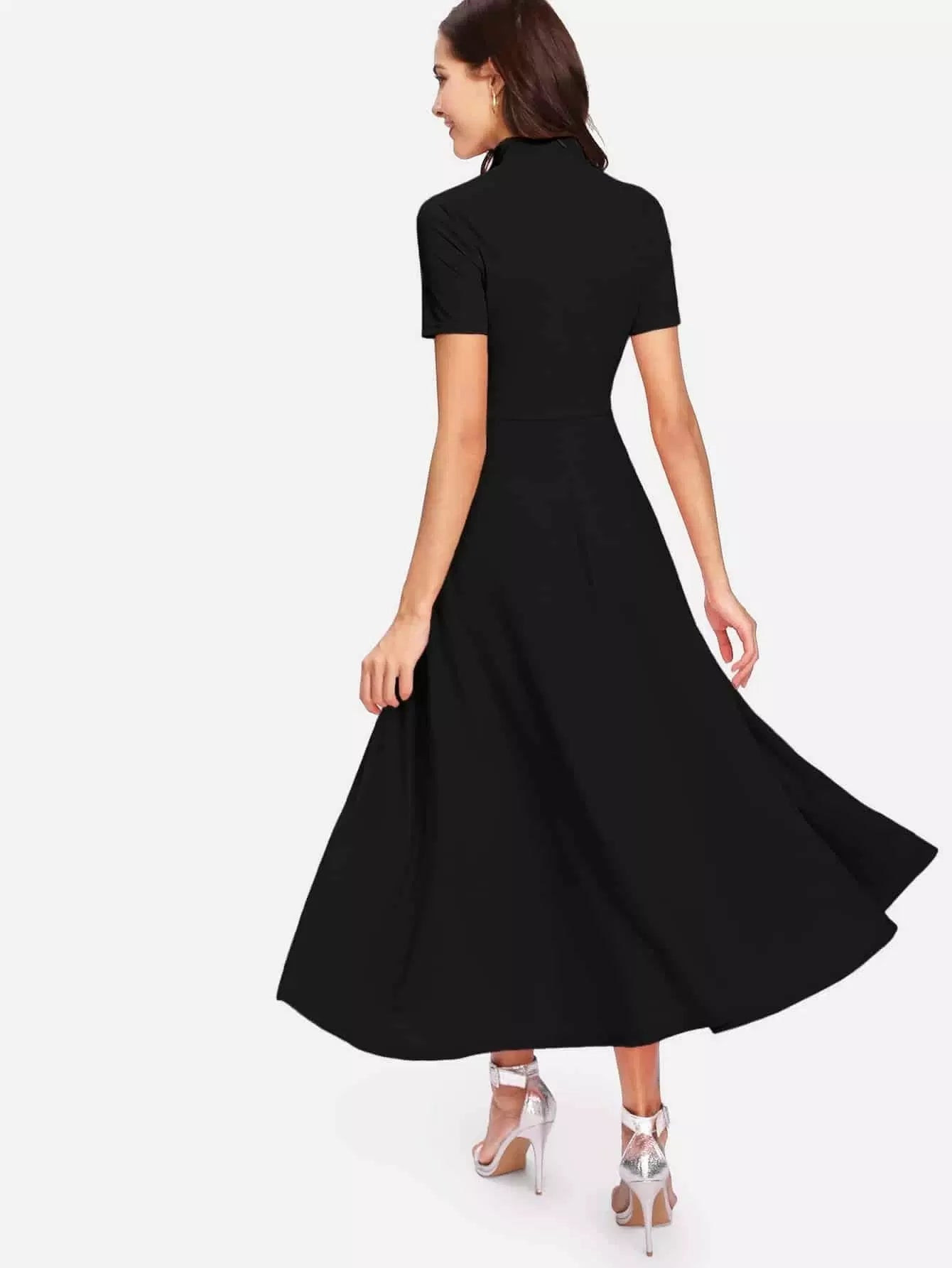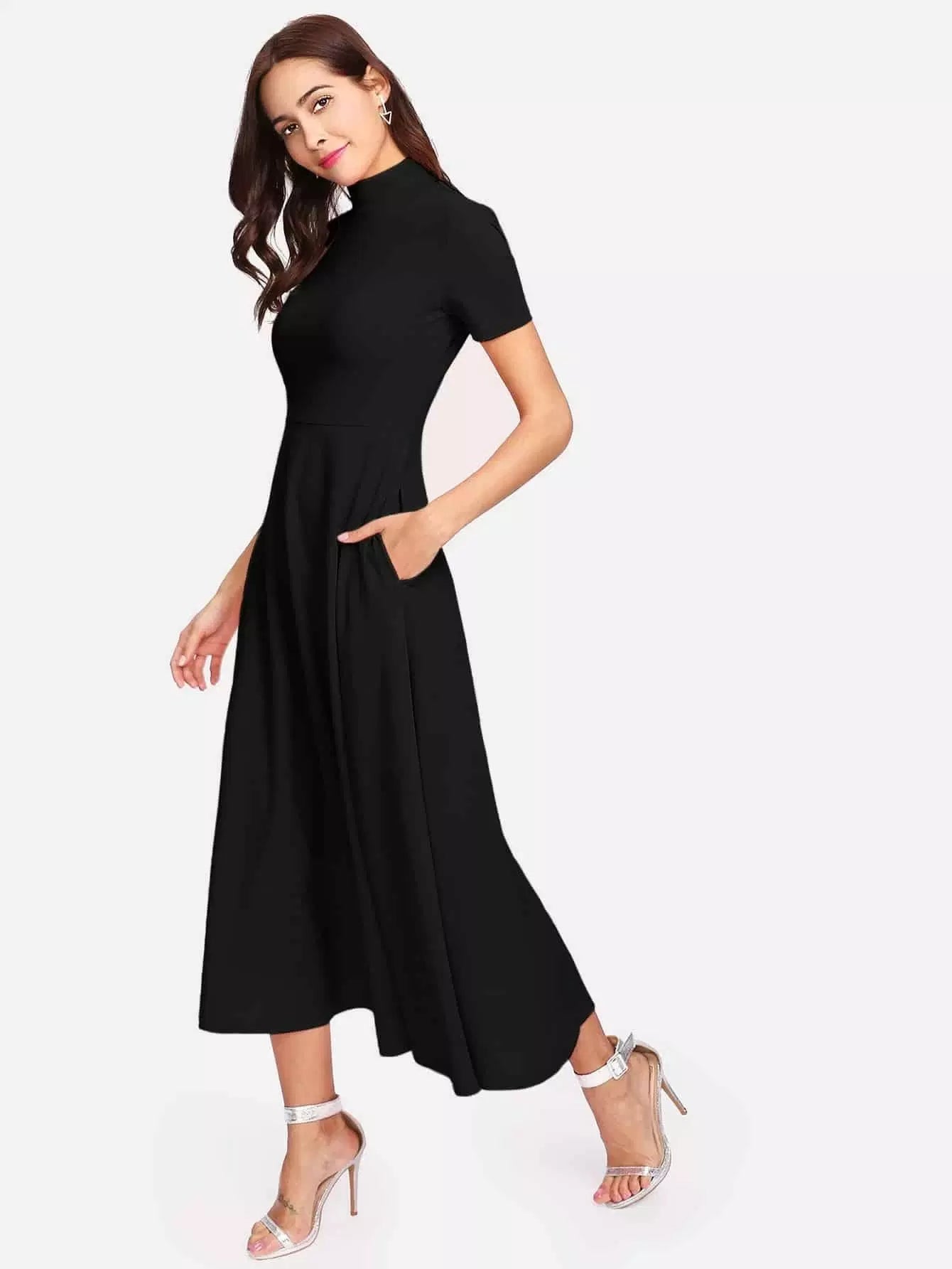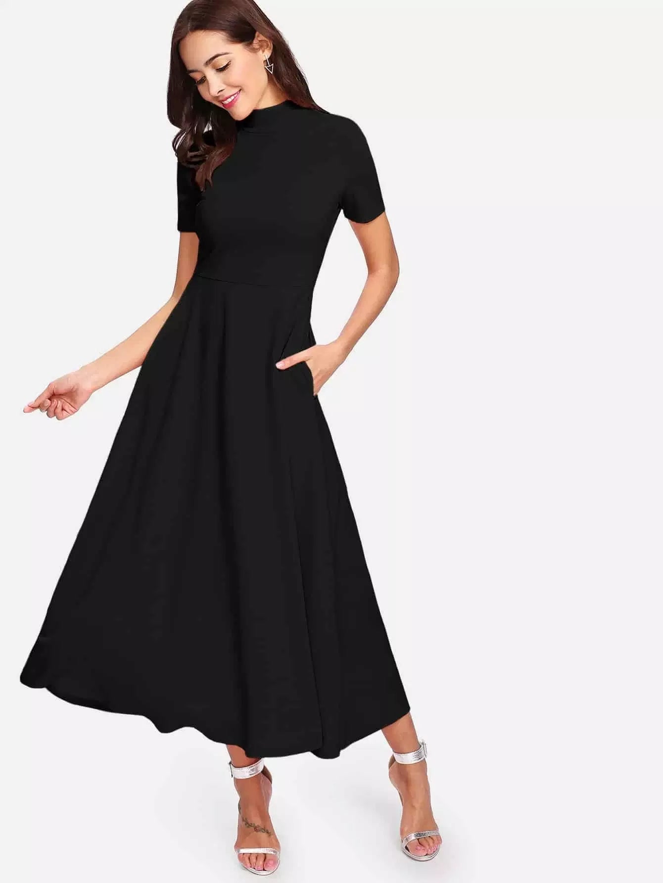 فستان بفتحة رقبة وهمية وجيب جانبي بفتحة جانبية وضيقة