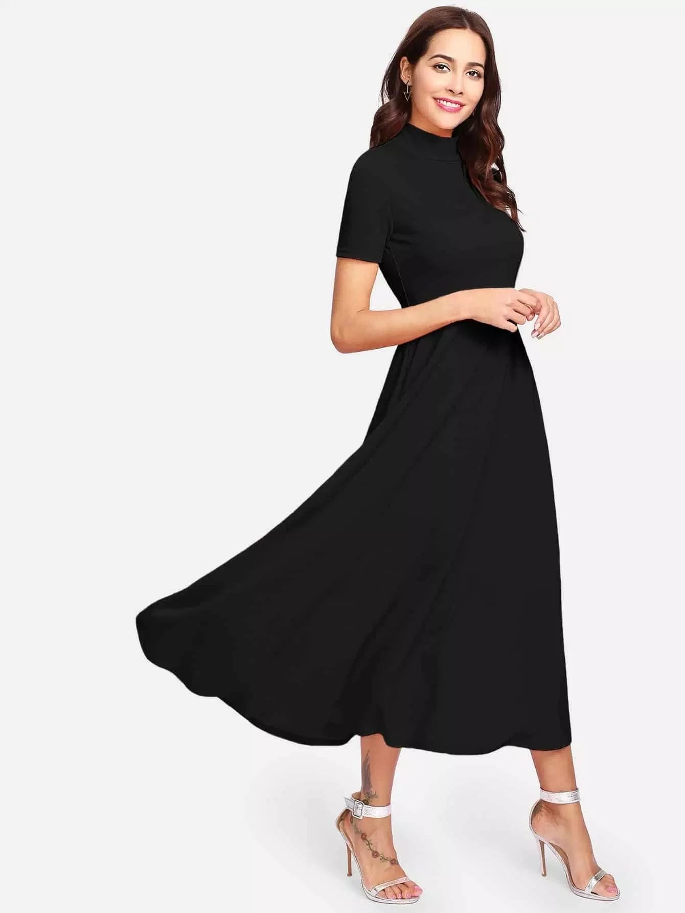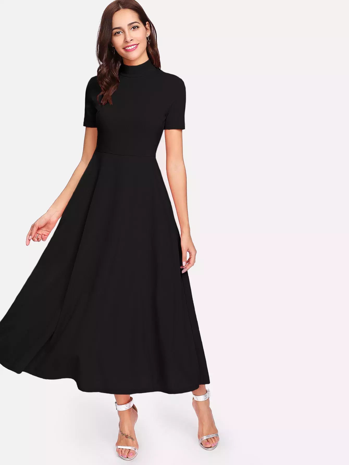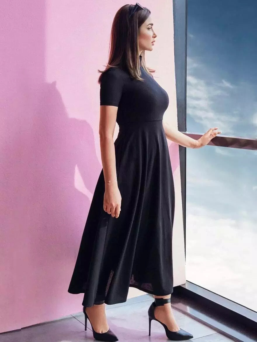 فستان بفتحة رقبة وهمية وجيب جانبي بفتحة جانبية وضيقة