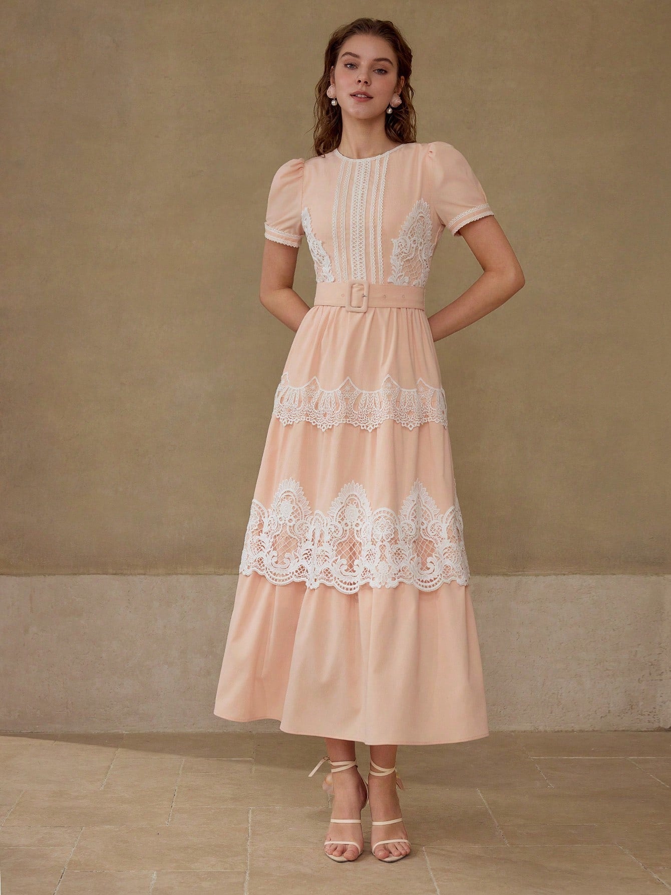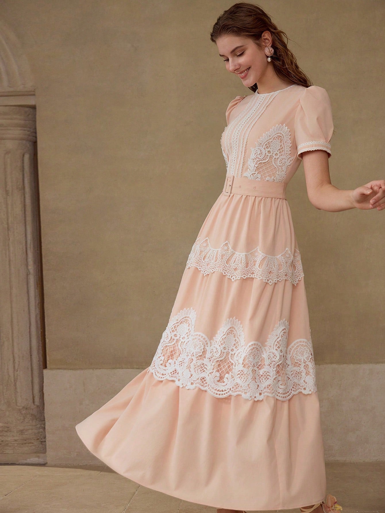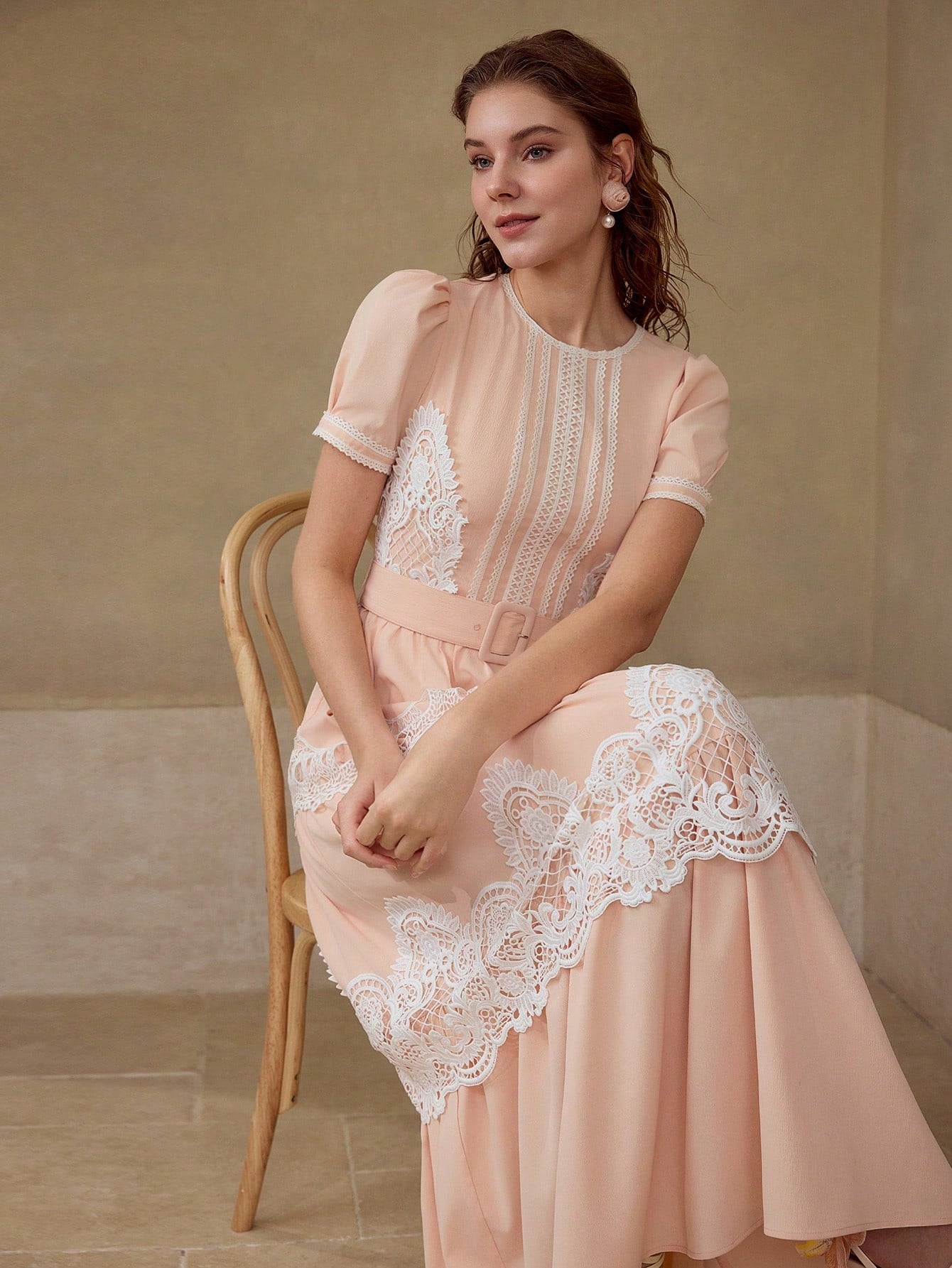 women MOTF CONTRAST LACE PUFF SLEEVE DRESS