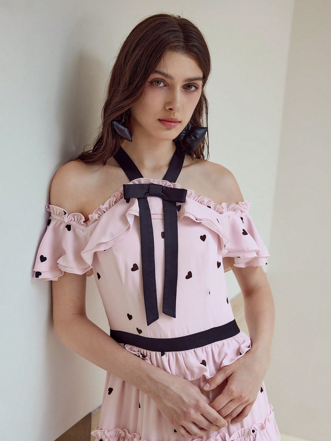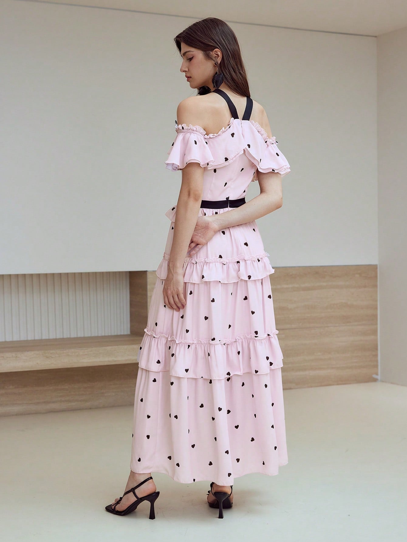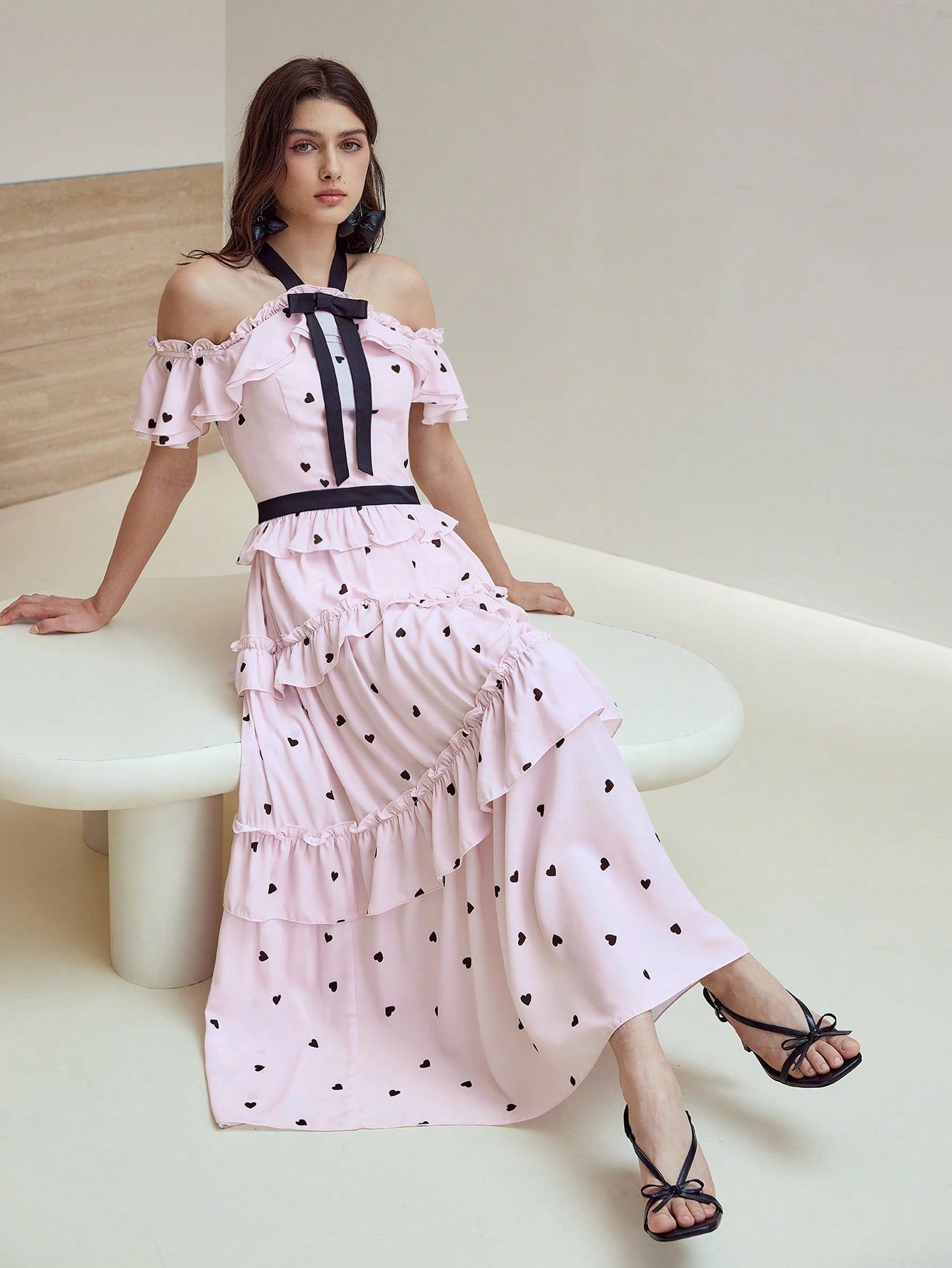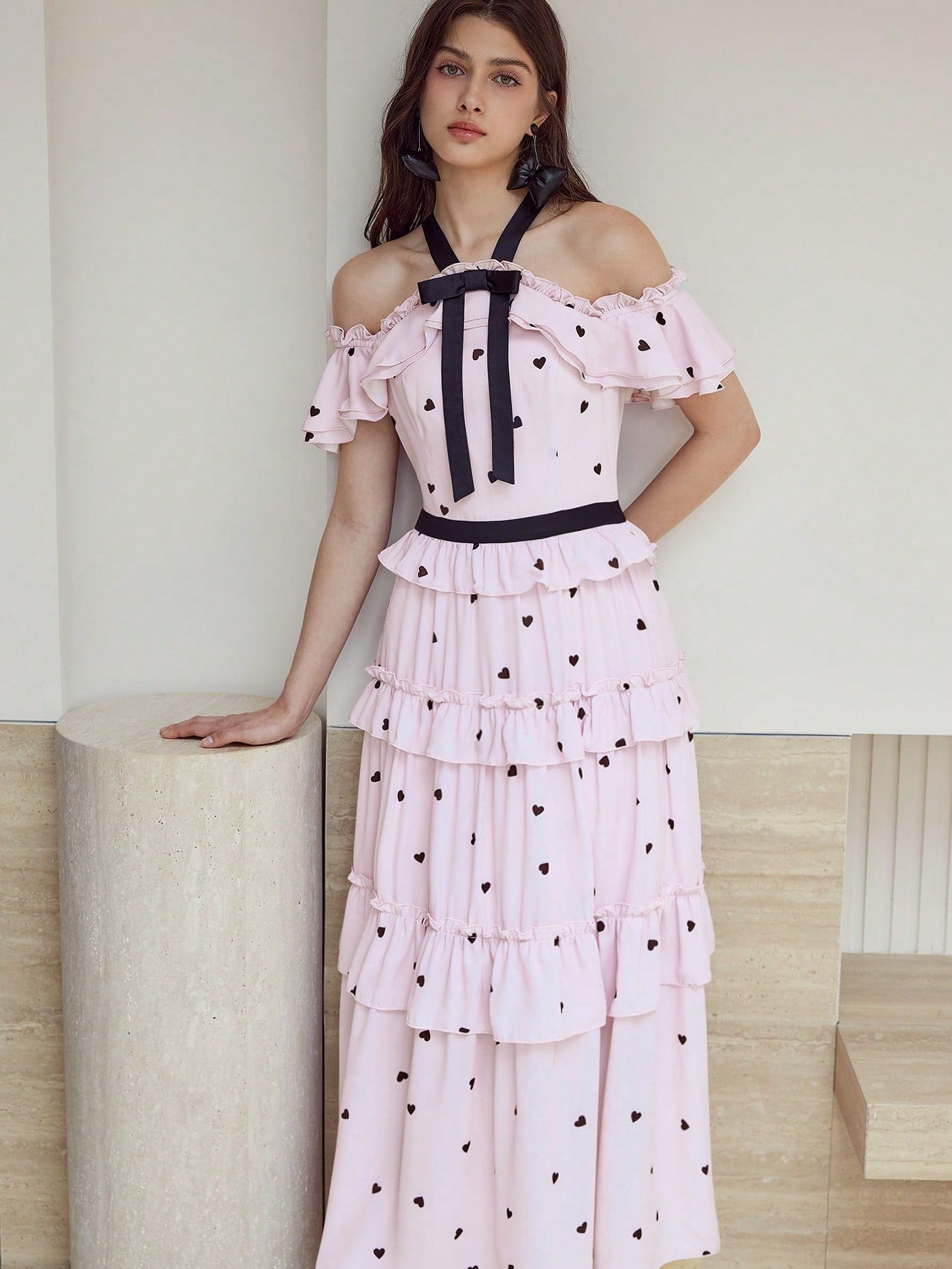 فستان MOTF STUDIO متعدد الطبقات بطبعة قلب