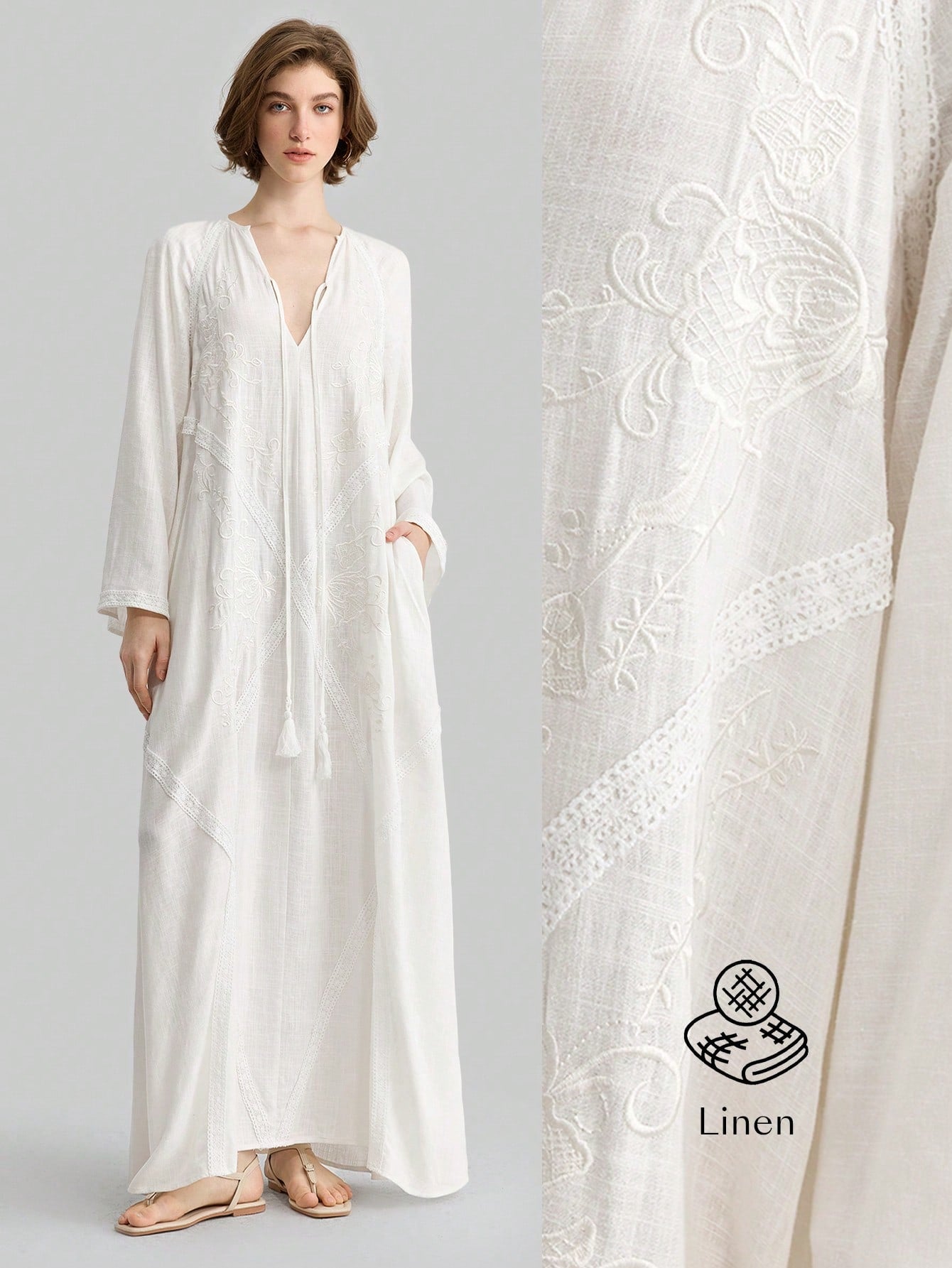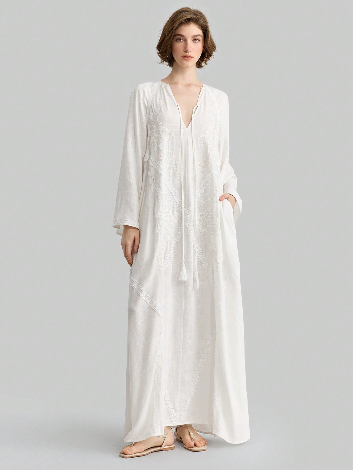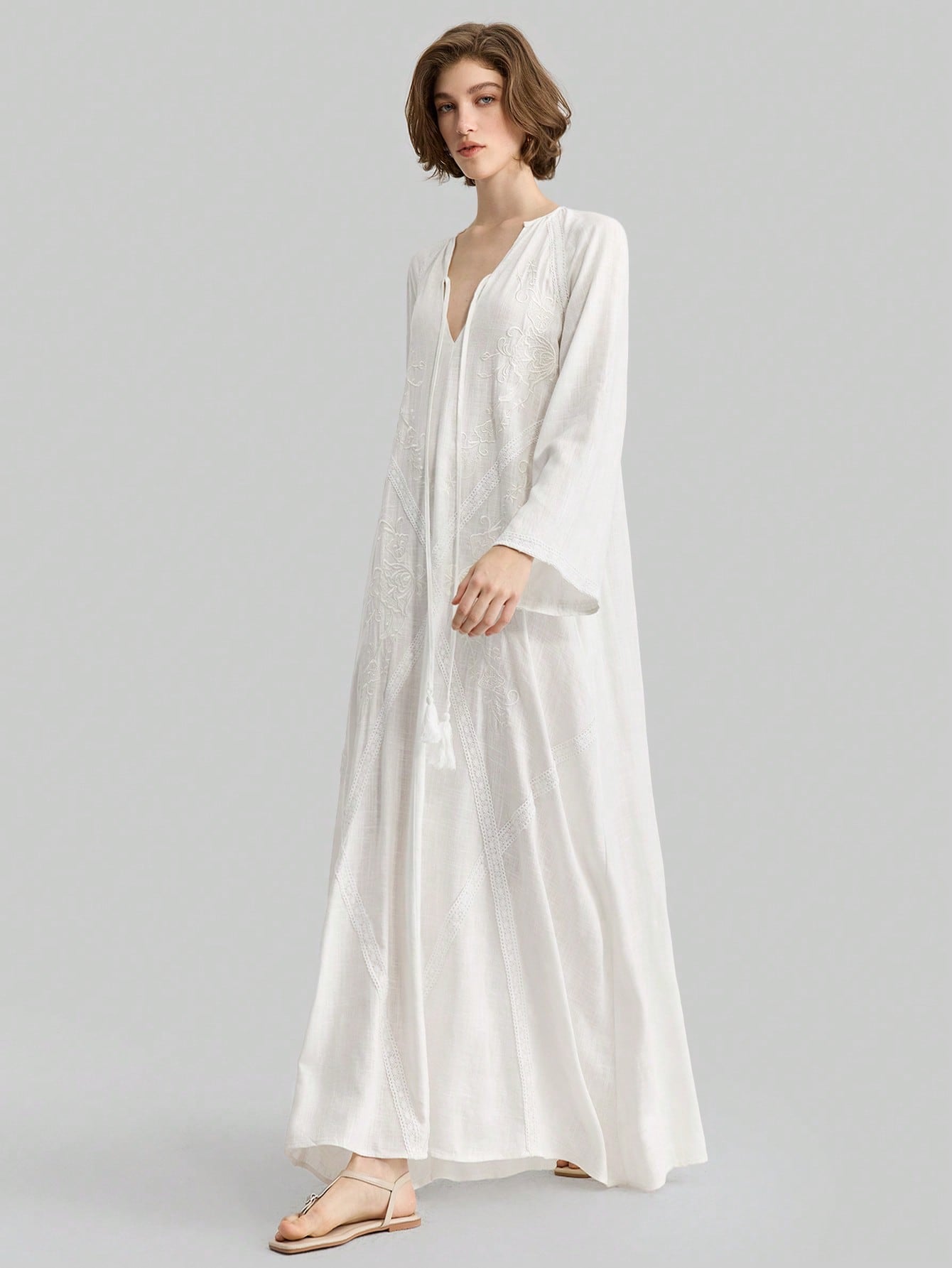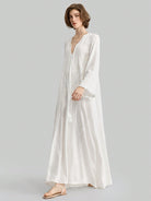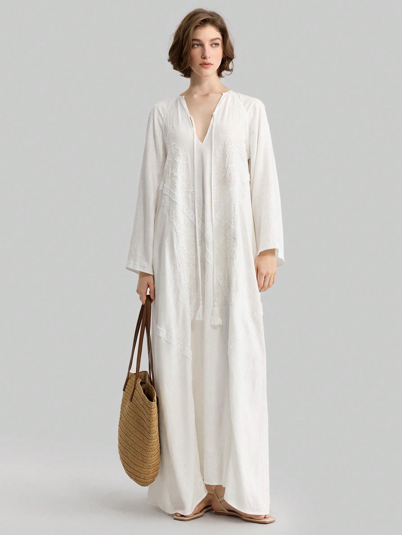 فستان Ontre النسائي الصيفي بأكمام طويلة ورقبة على شكل حرف V وأكمام راجلان