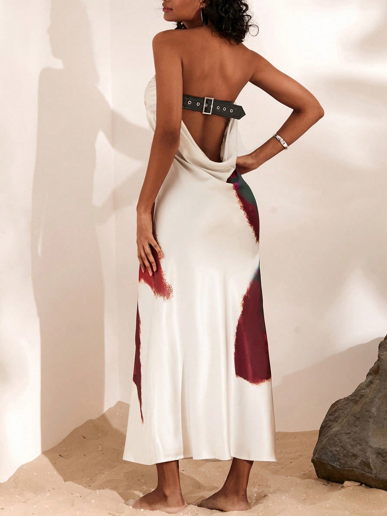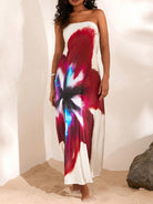 women Opulessa Elegant Beach Holiday Sheer Floral Print Backless Dress