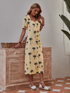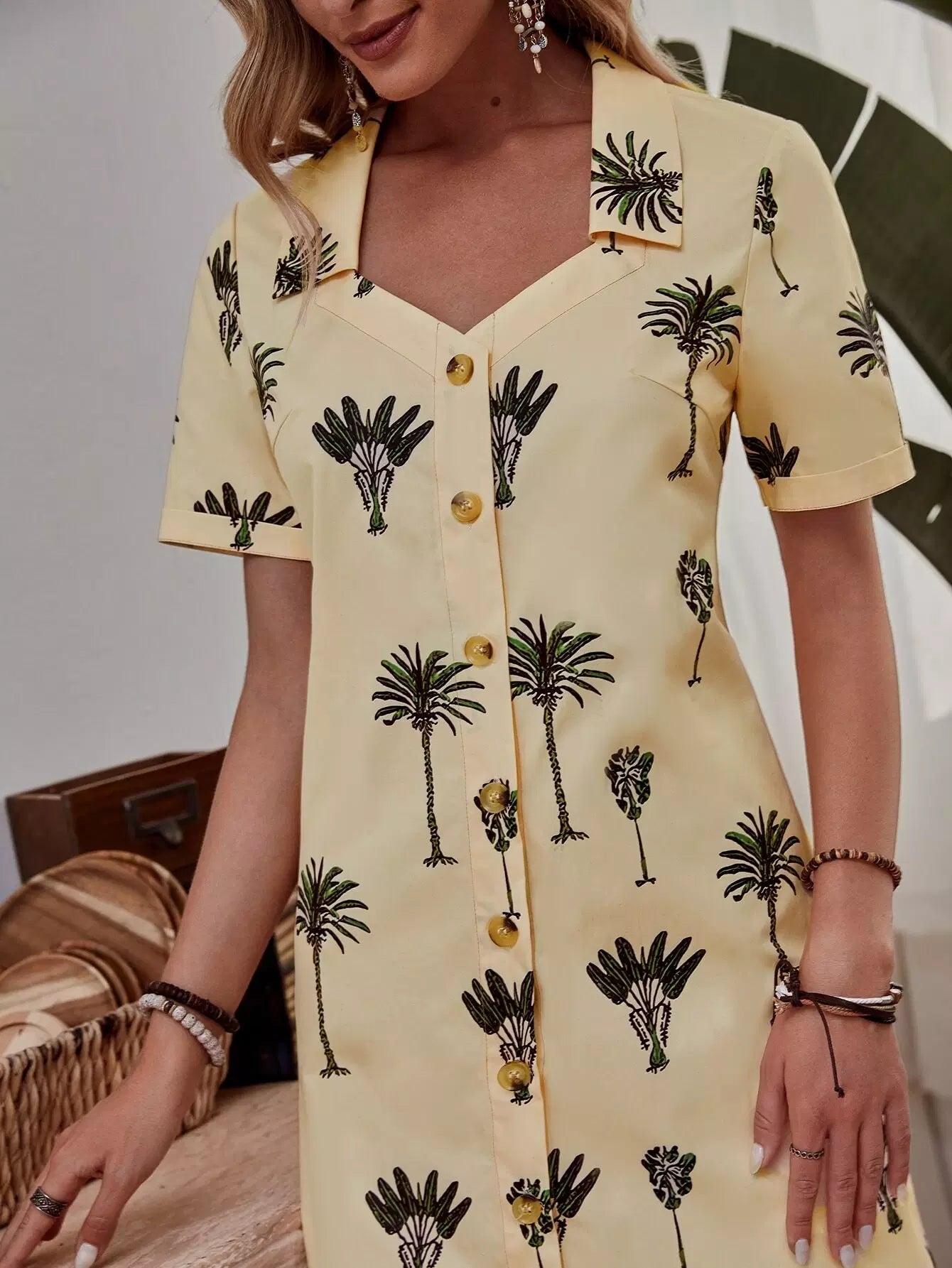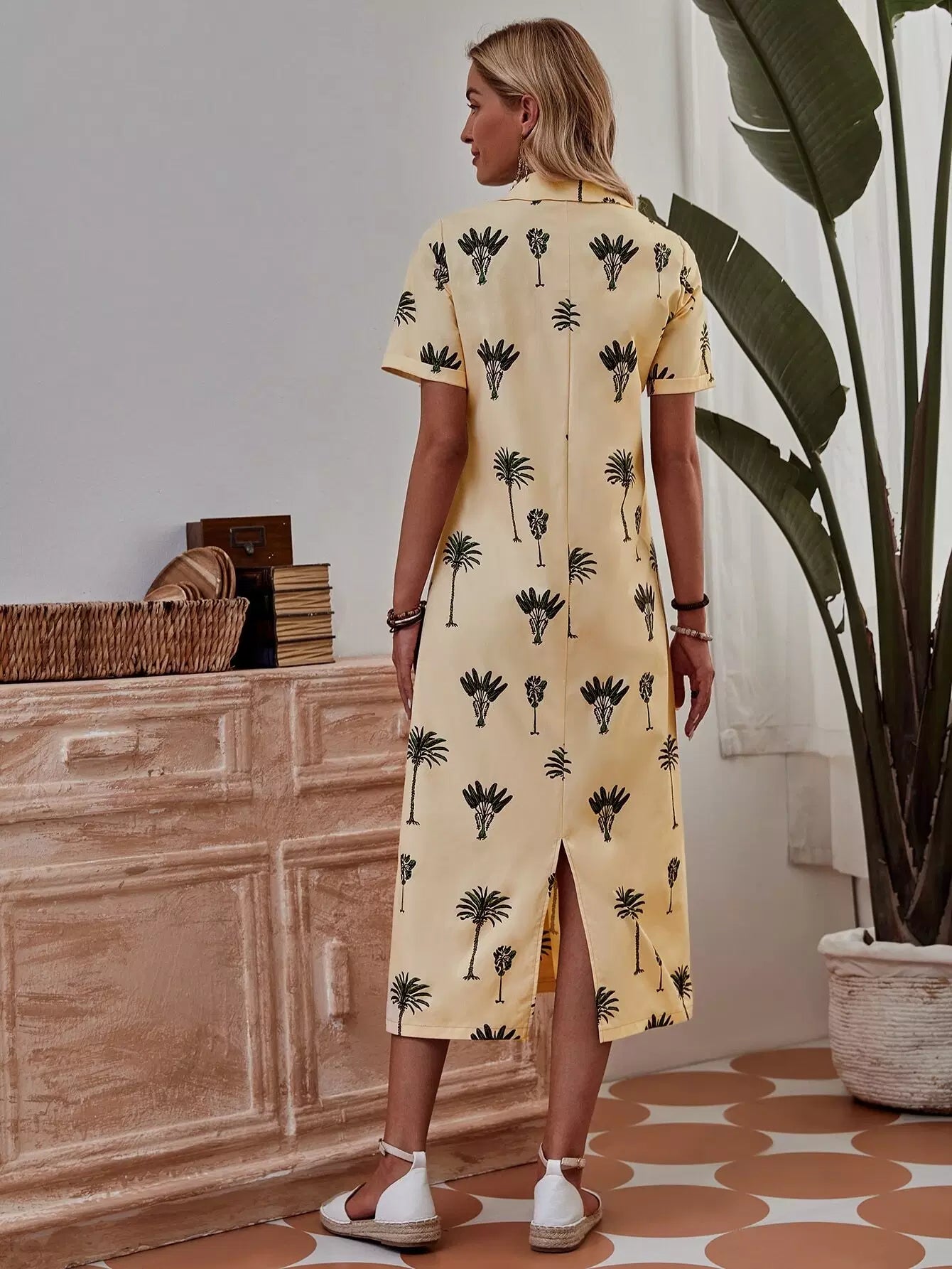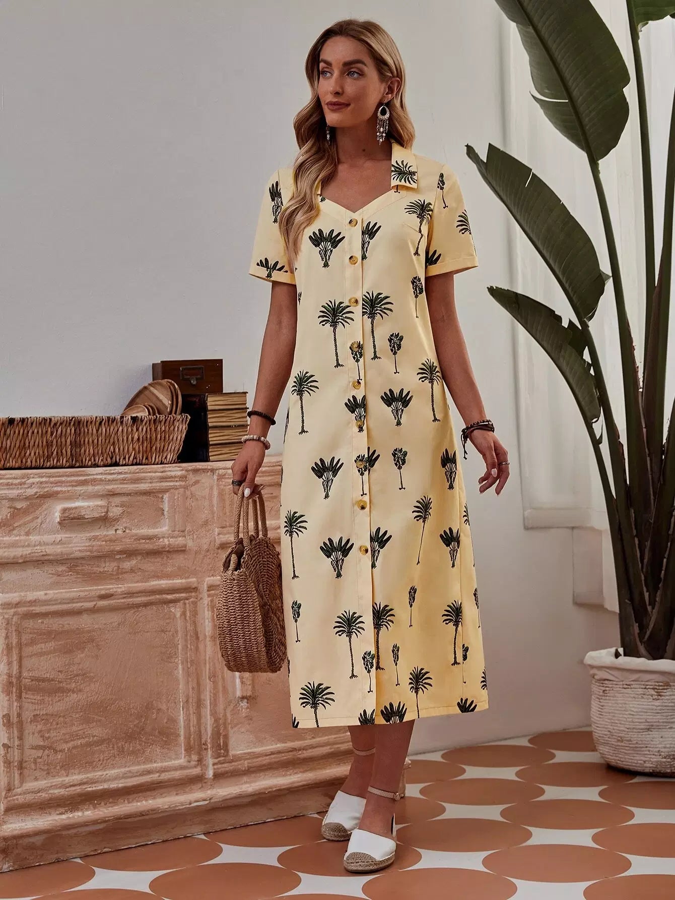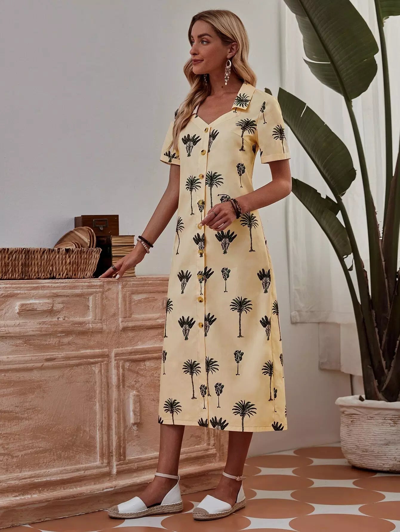 فستان بفتحة أمامية وأزرار على شكل شجرة نخيل