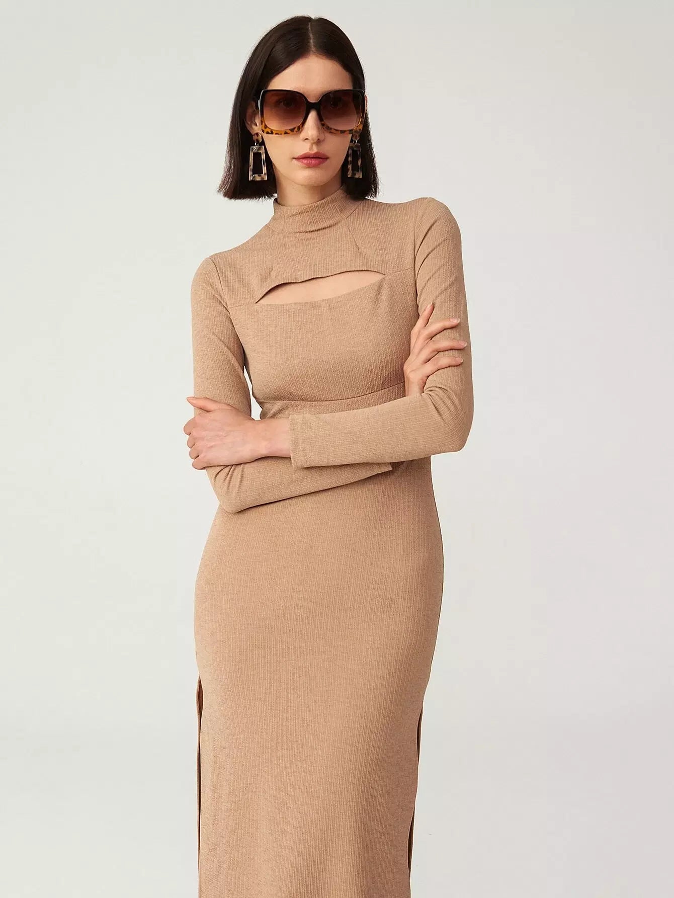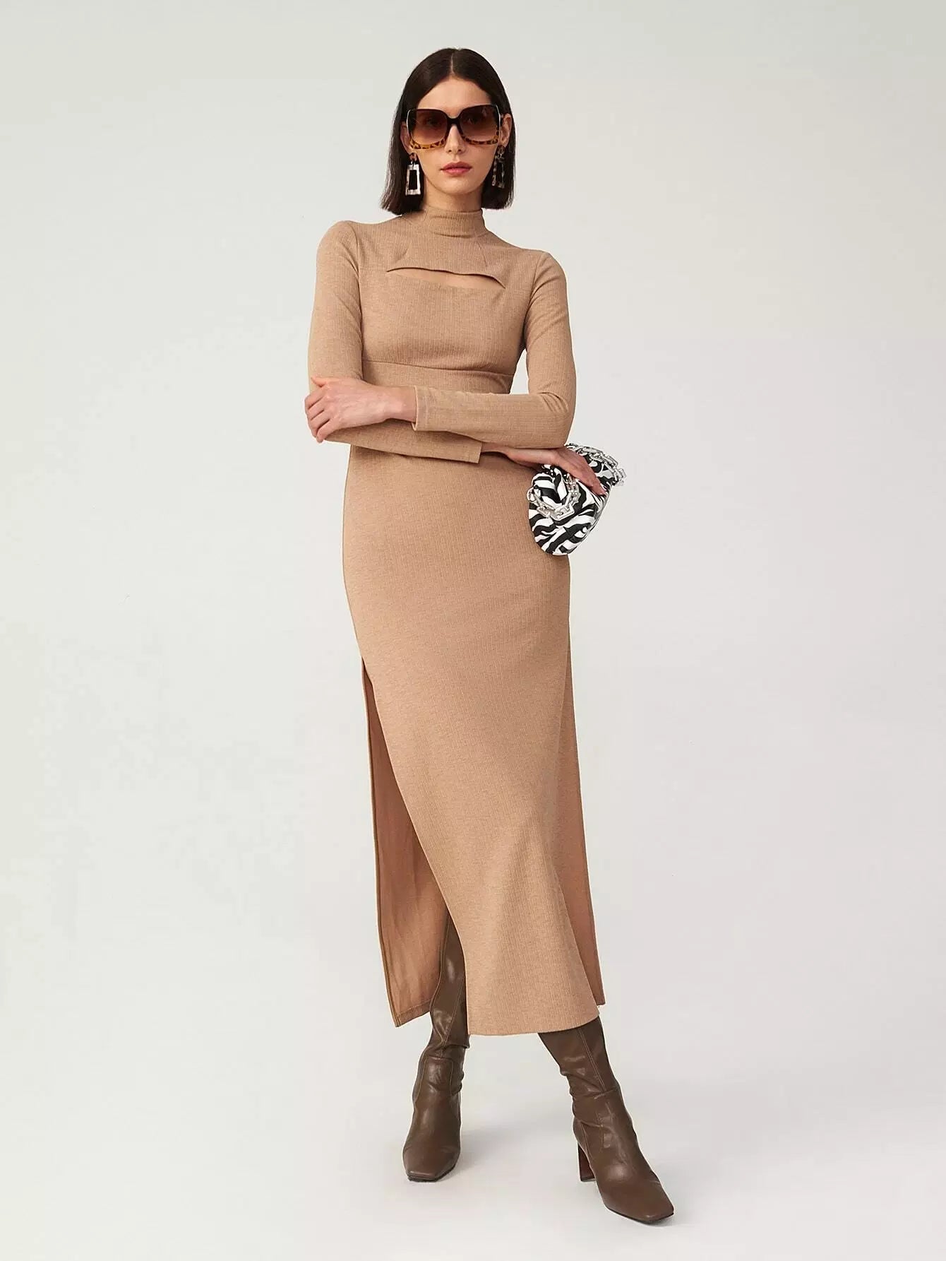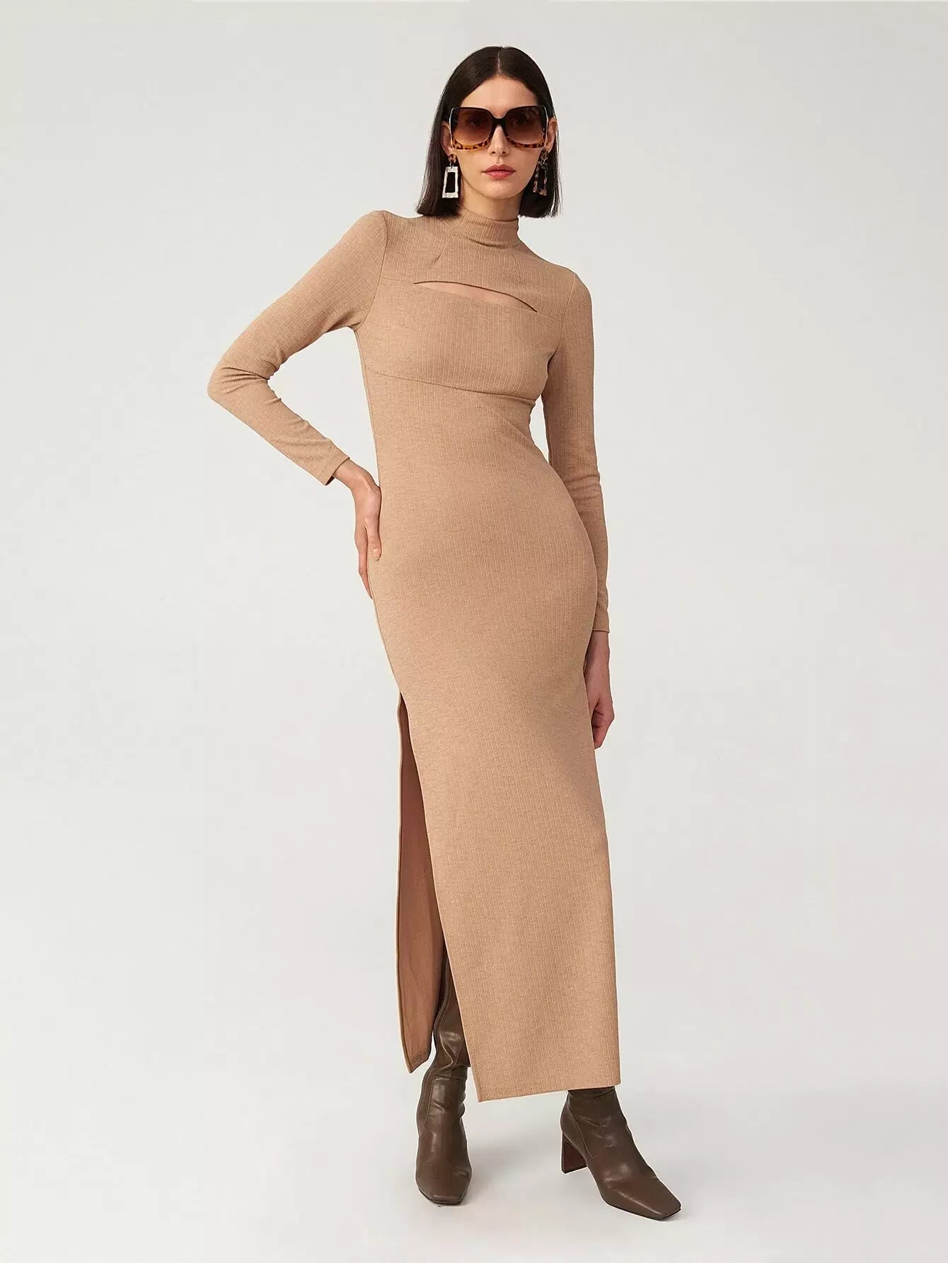 فستان ماكسي مكشوف الفخذين مضلع مشقوق الأضلاع