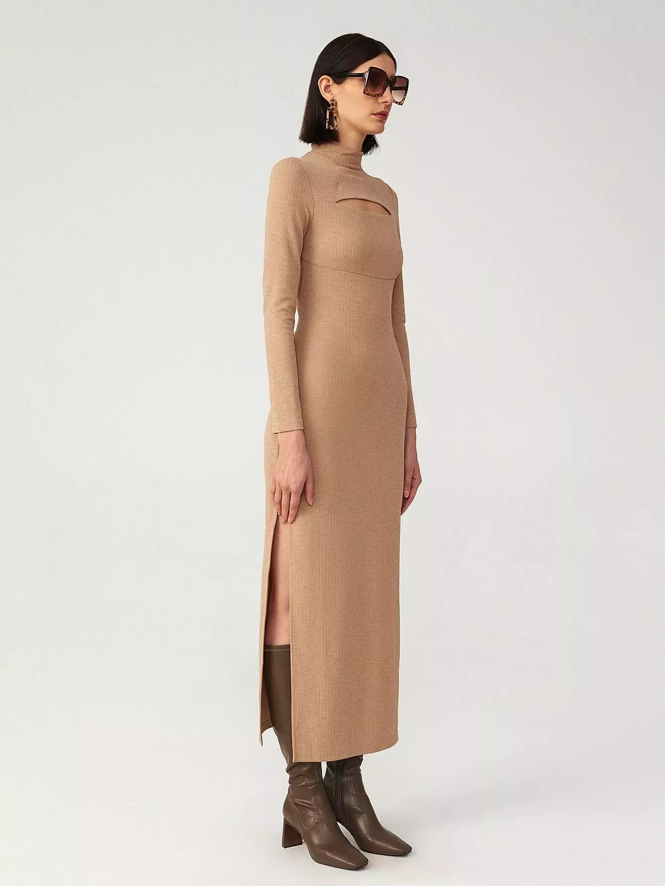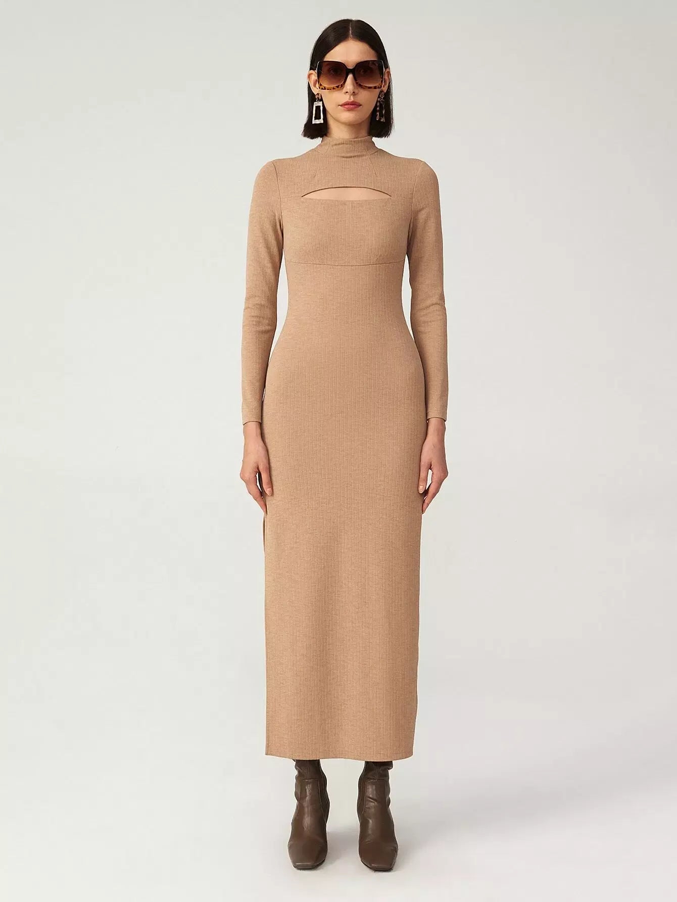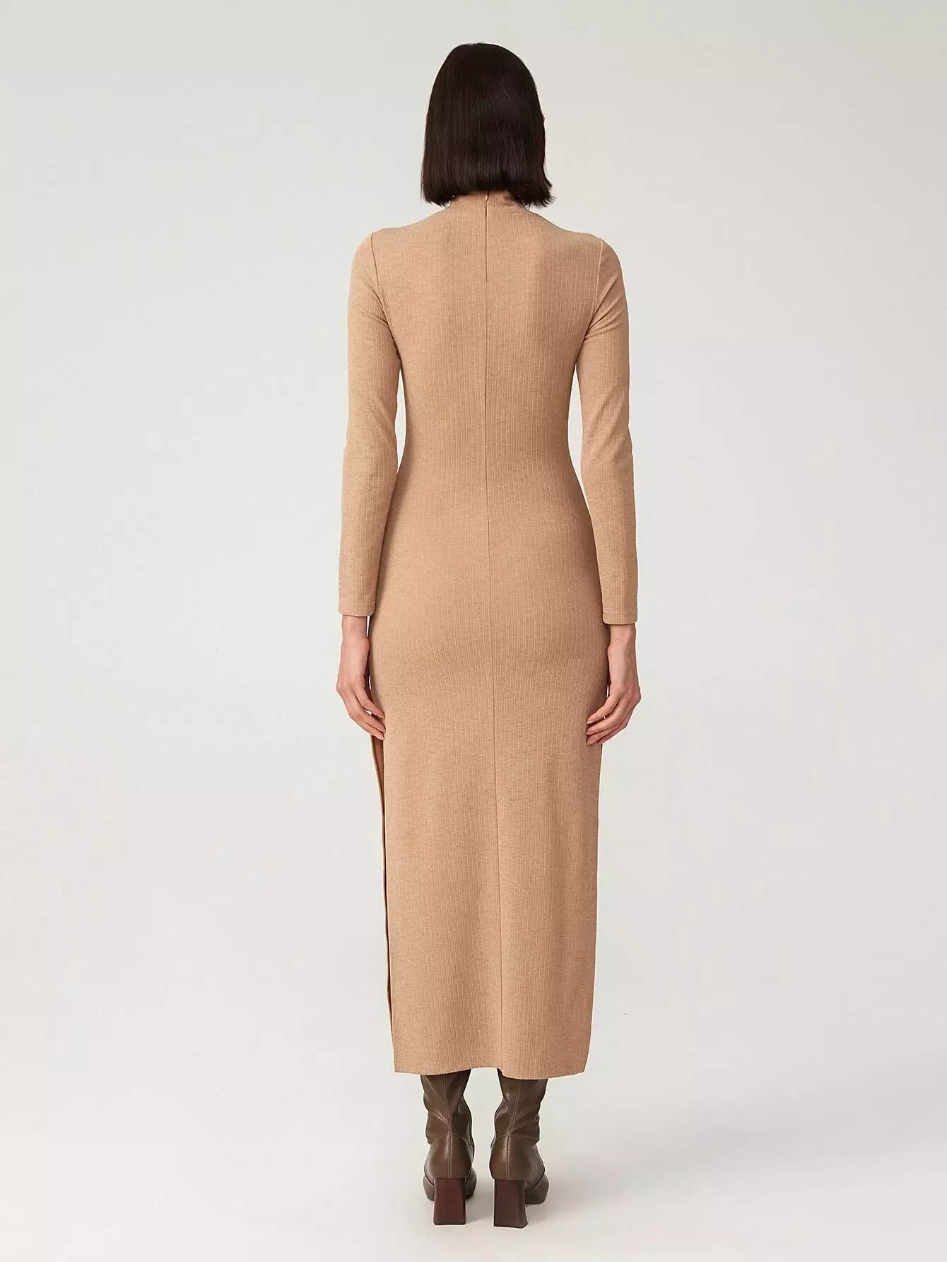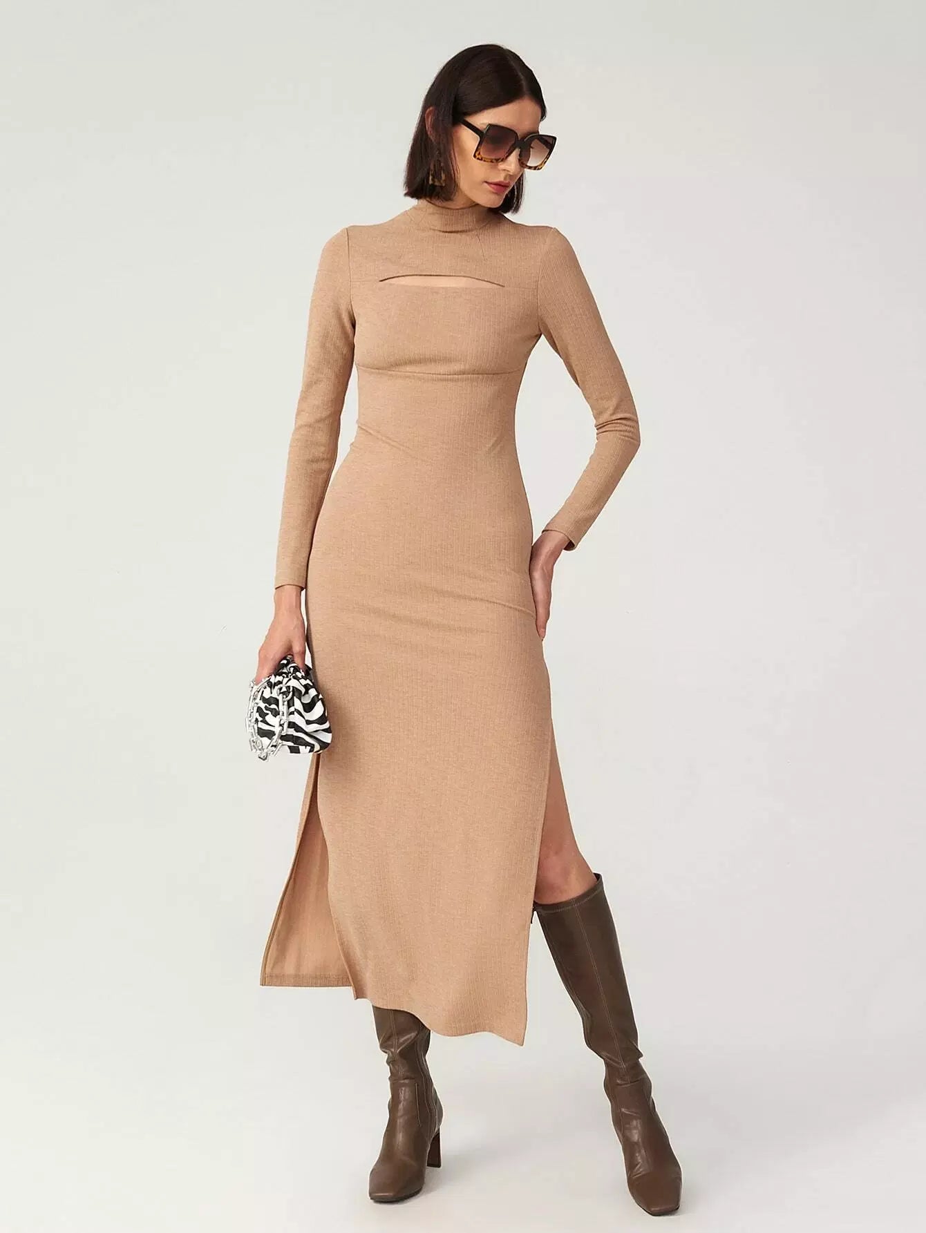 فستان ماكسي مكشوف الفخذين مضلع مشقوق الأضلاع
