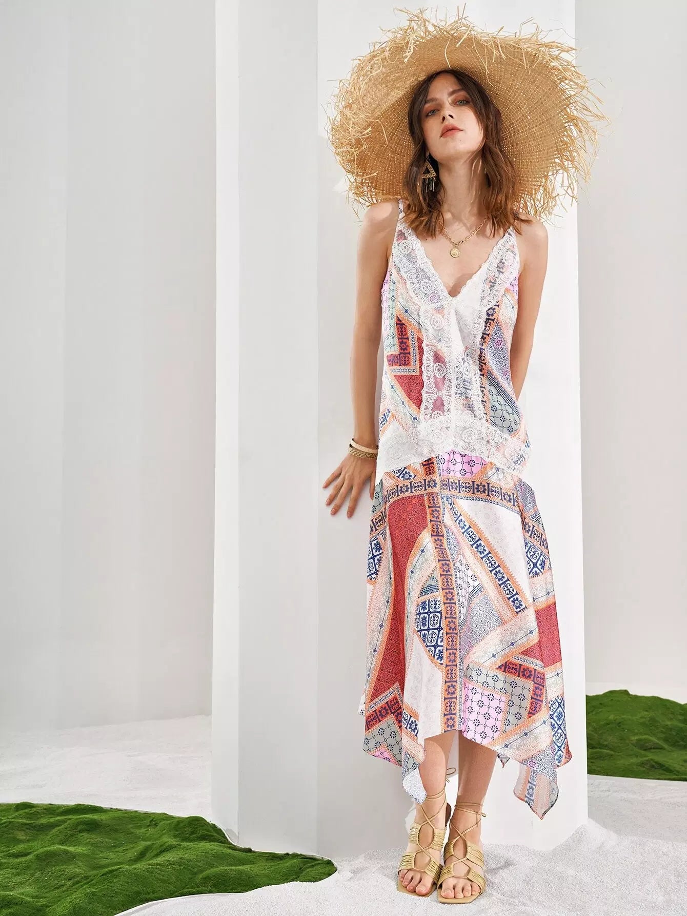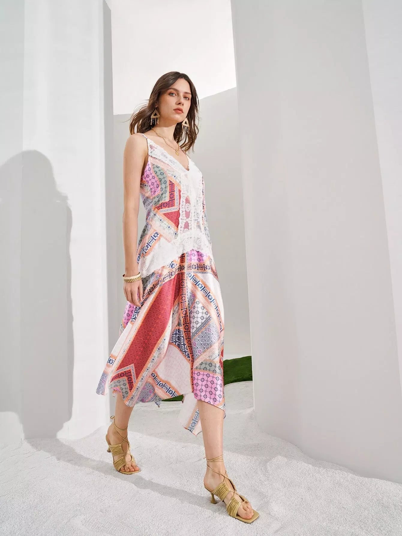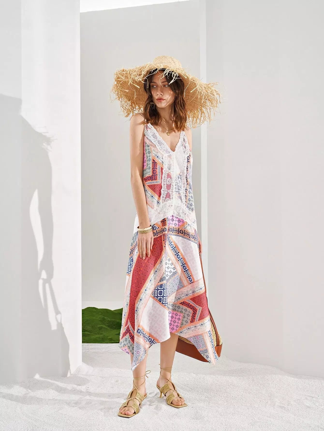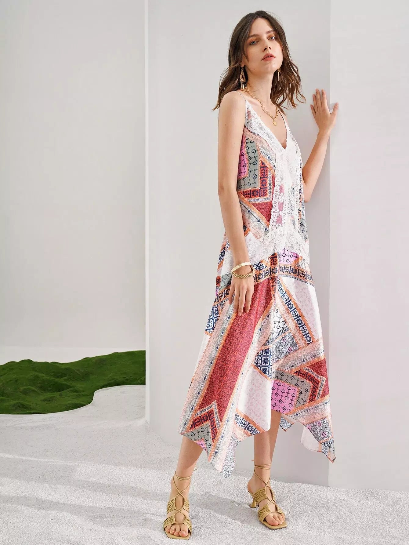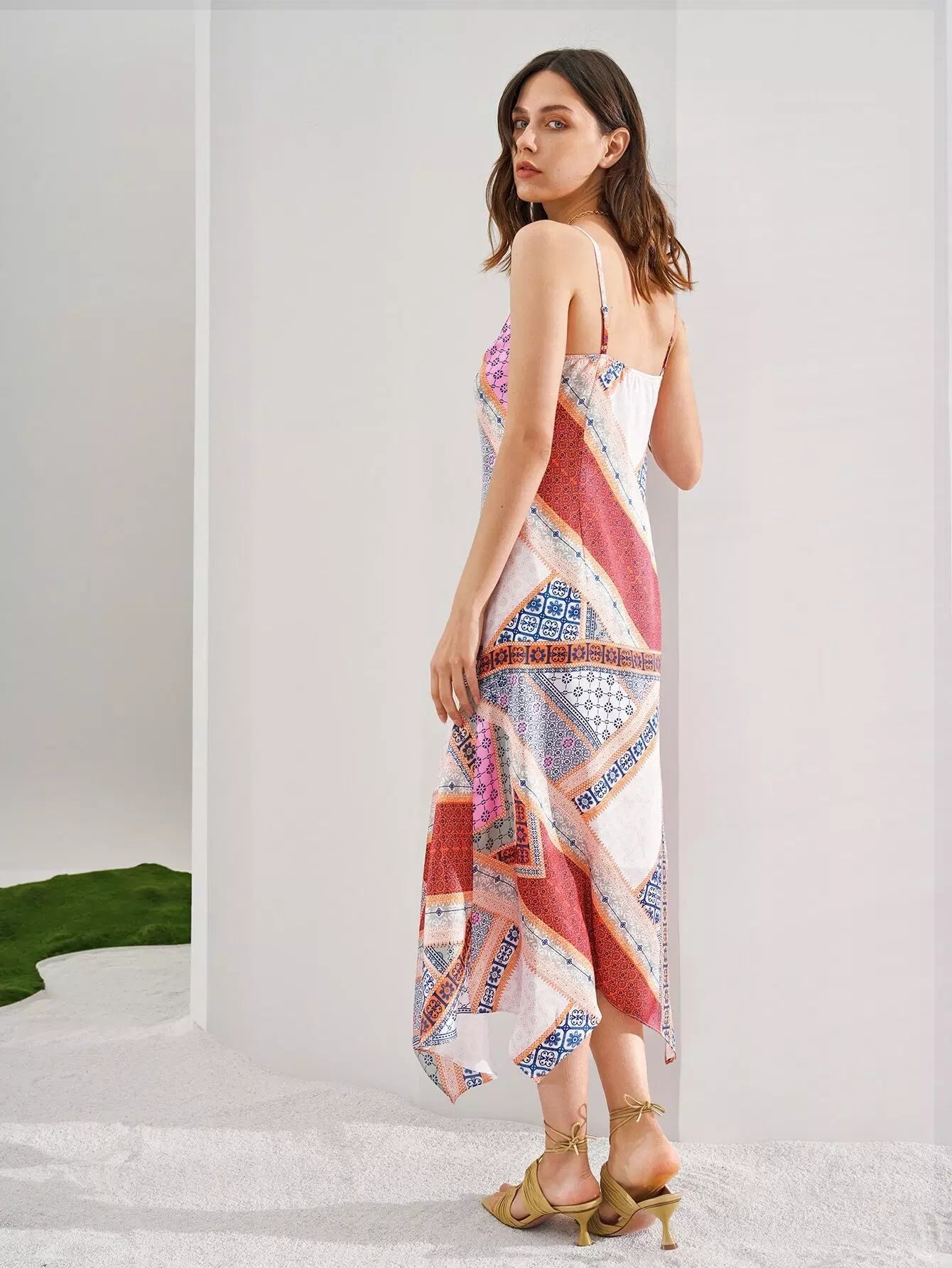 فستان بطبعة وشاح بحافة هانكي