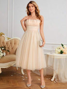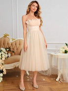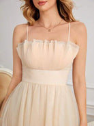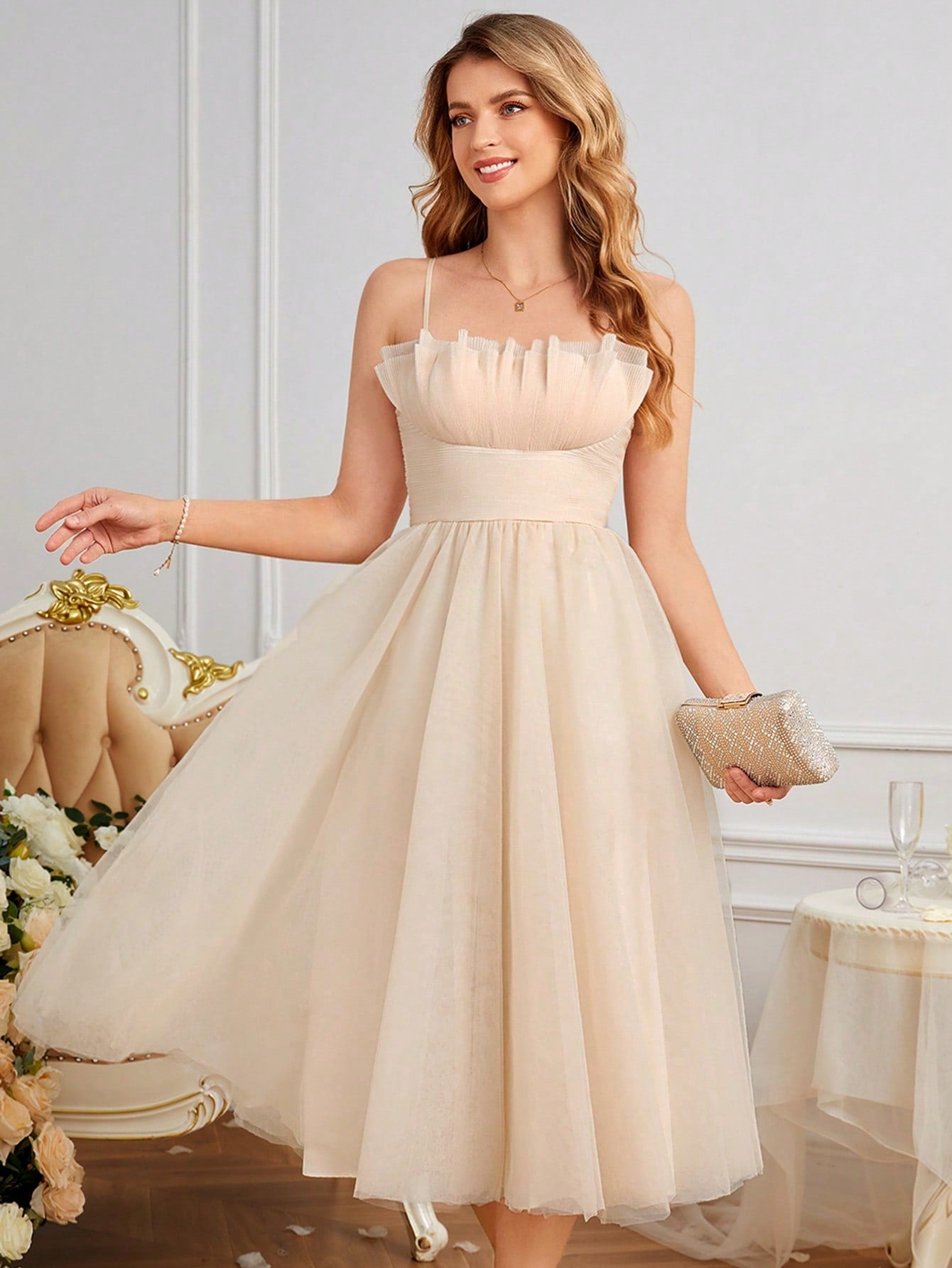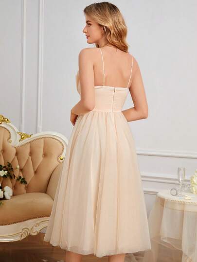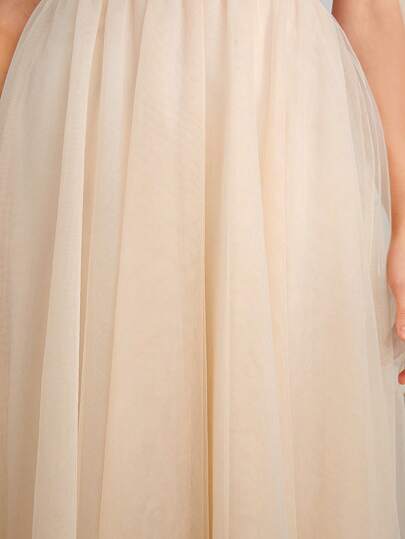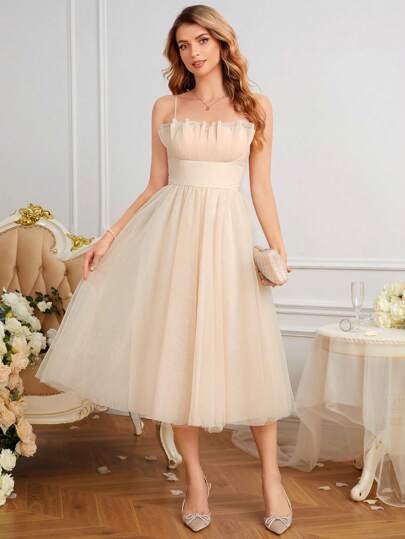 women SHEIN Belle Ruched Bust Mesh Overlay Cami Bridesmaid Dress