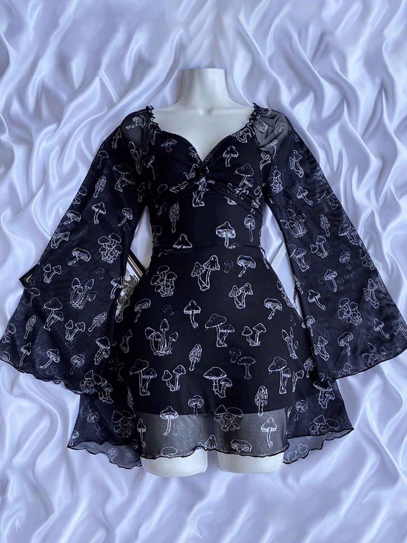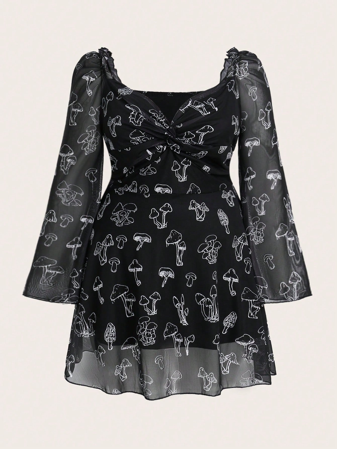 women SHEIN LUNE Plus Size Women's Mesh Mushroom Print Dress