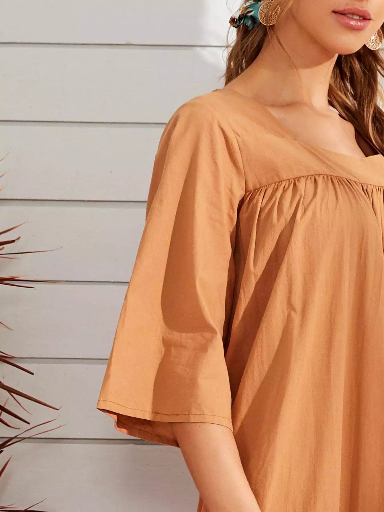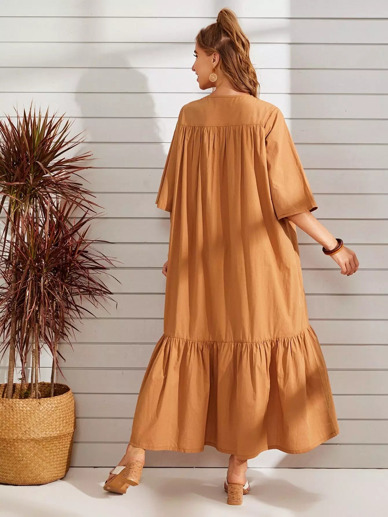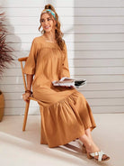 للنساء - فستان طويل بحاشية واسعة وياقة مربعة