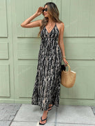 women Summer Fashionable Backless Tie Strap Wavy Print Dress