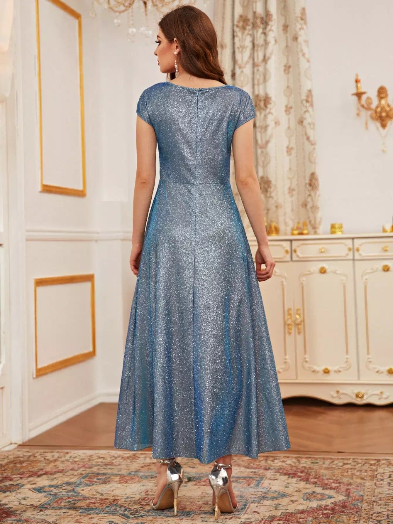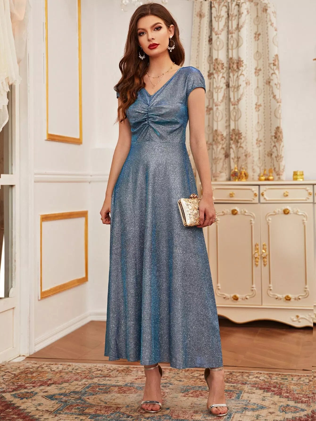 فستان براق براق برقبة على شكل V برقبة على شكل V