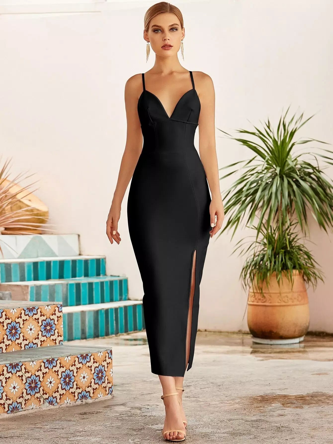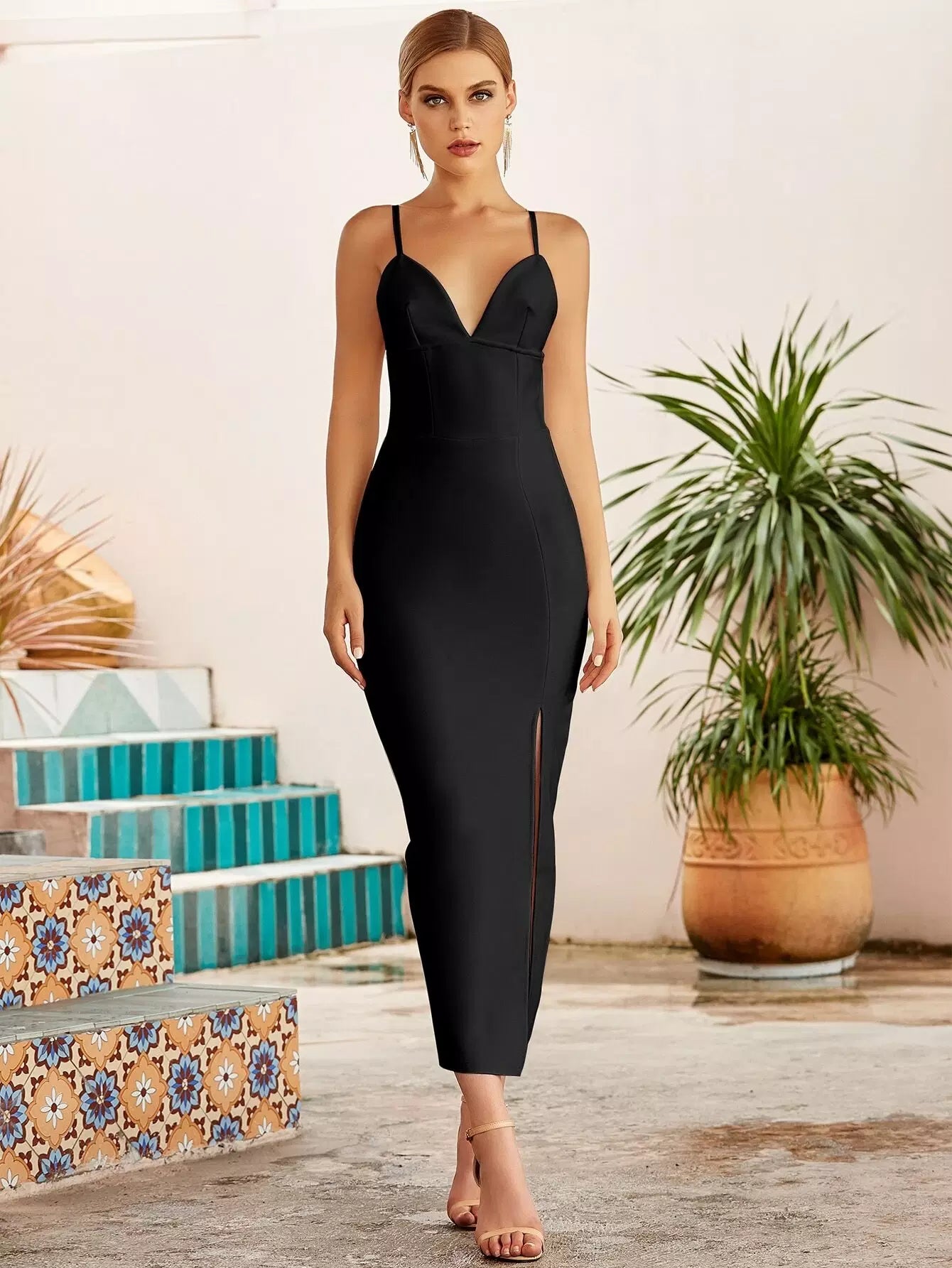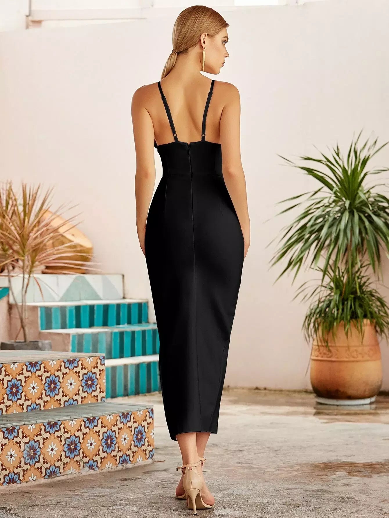 فستان ضمادة بحافة مشقوقة من الخلف بسحاب